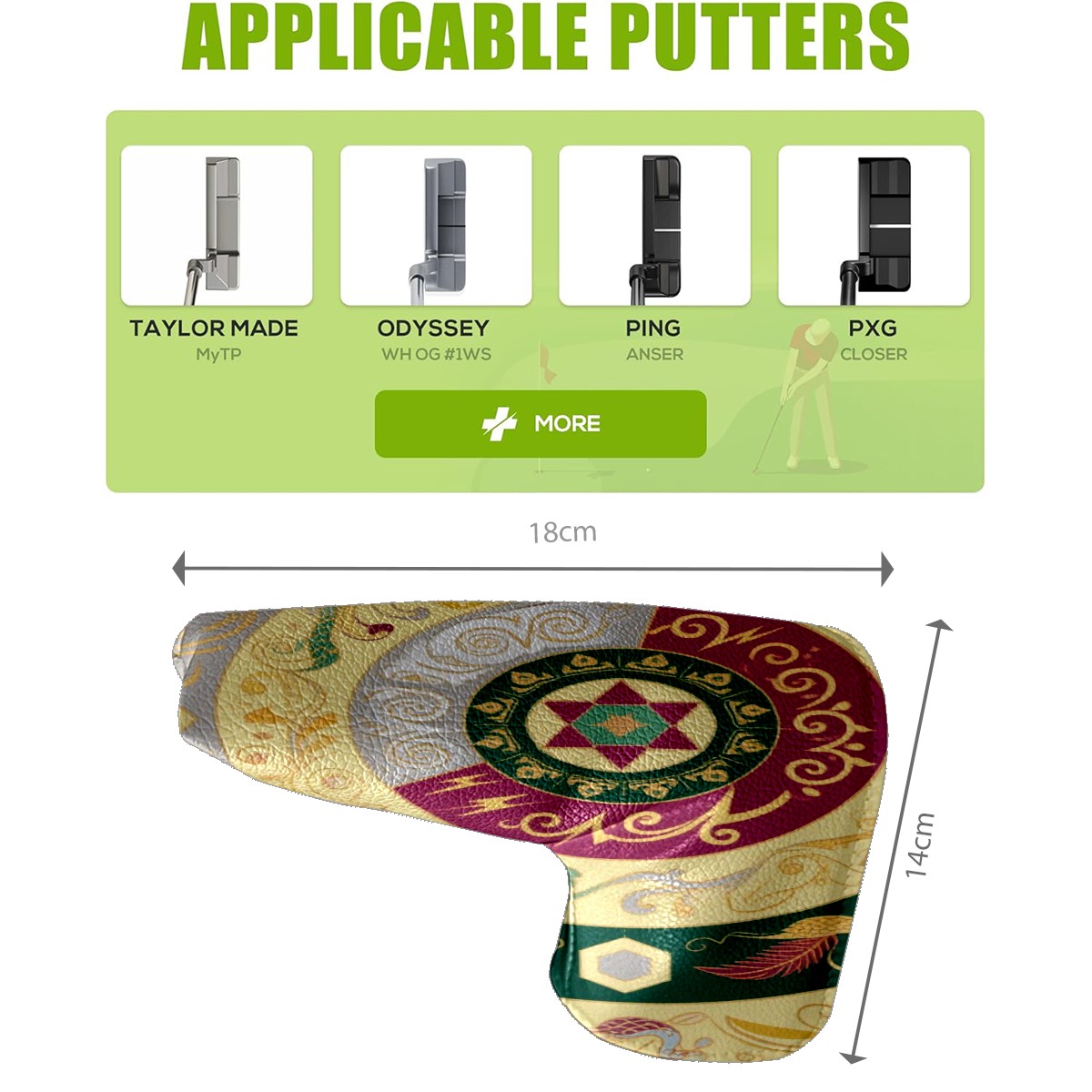 • <p>This golf club cover, made of high quality PU leather, combines durability with water and stain resistance to easily cope with complex outdoor environments. The soft velvet lining on the inside of the cover fits the clubs snugly, cushioning them from impact and preventing scratches and abrasions in every way. It's easy to clean, and can be gently scrubbed to keep your clubs in good condition. 14x18cm is the perfect size for all types of clubs, and it's stable and won't wobble. Whether for personal use or as a gift, the thoughtful and practical design makes it an ideal gift for golf enthusiasts on birthdays and festivals, adding a unique style to the bag.</p>