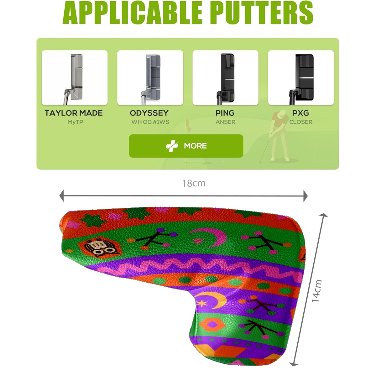 • <p>This golf club cover, made of high quality PU leather, combines durability with water and stain resistance to easily cope with complex outdoor environments. The soft velvet lining on the inside of the cover fits the clubs snugly, cushioning them from impact and preventing scratches and abrasions in every way. It's easy to clean, and can be gently scrubbed to keep your clubs in good condition. 14x18cm is the perfect size for all types of clubs, and it's stable and won't wobble. Whether for personal use or as a gift, the thoughtful and practical design makes it an ideal gift for golf enthusiasts on birthdays and festivals, adding a unique style to the bag.</p>