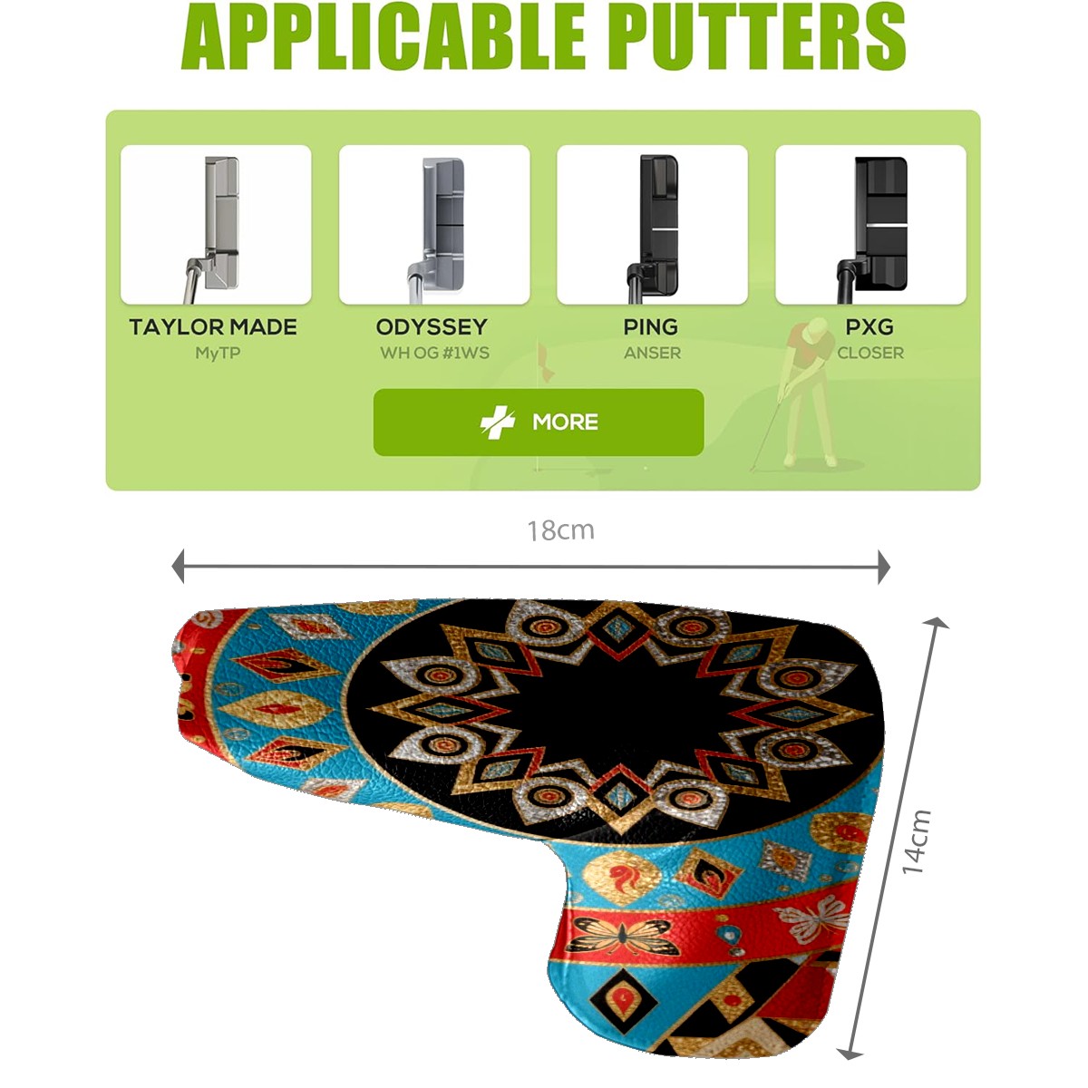 • <p>This golf club cover, made of high quality PU leather, combines durability with water and stain resistance to easily cope with complex outdoor environments. The soft velvet lining on the inside of the cover fits the clubs snugly, cushioning them from impact and preventing scratches and abrasions in every way. It's easy to clean, and can be gently scrubbed to keep your clubs in good condition. 14x18cm is the perfect size for all types of clubs, and it's stable and won't wobble. Whether for personal use or as a gift, the thoughtful and practical design makes it an ideal gift for golf enthusiasts on birthdays and festivals, adding a unique style to the bag.</p>