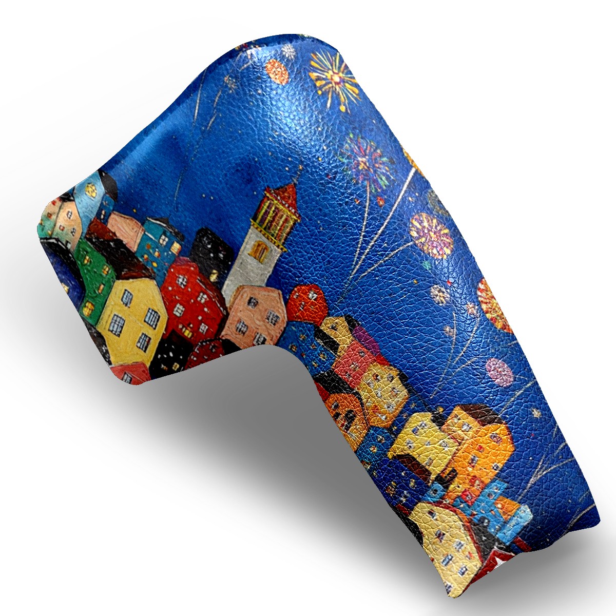 Premium Golf Head Cover | Rugged PU Leather Golf Club Head Cover , Waterproof & Scratch Resistant Velvet Lining Golf Driver Cover Head Cover for Men and WomenCityscape_with_fireworksreplace#