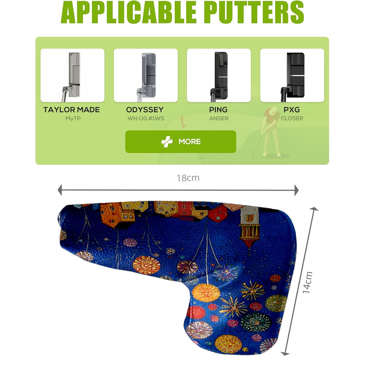 • <p>This golf club cover, made of high quality PU leather, combines durability with water and stain resistance to easily cope with complex outdoor environments. The soft velvet lining on the inside of the cover fits the clubs snugly, cushioning them from impact and preventing scratches and abrasions in every way. It's easy to clean, and can be gently scrubbed to keep your clubs in good condition. 14x18cm is the perfect size for all types of clubs, and it's stable and won't wobble. Whether for personal use or as a gift, the thoughtful and practical design makes it an ideal gift for golf enthusiasts on birthdays and festivals, adding a unique style to the bag.</p>