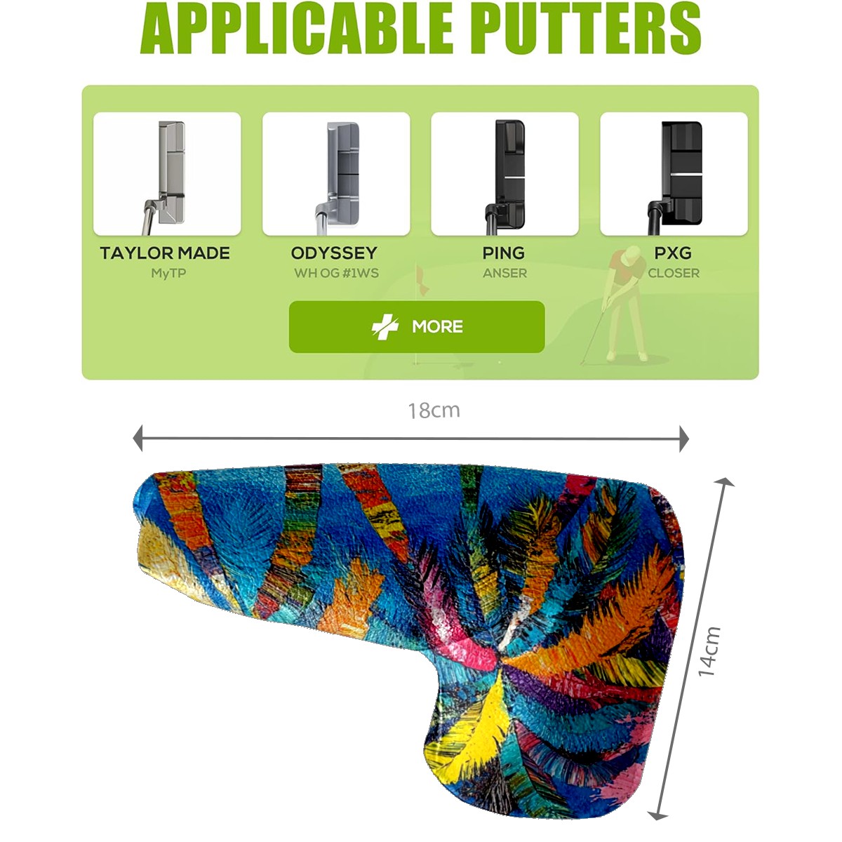 • <p>This golf club cover, made of high quality PU leather, combines durability with water and stain resistance to easily cope with complex outdoor environments. The soft velvet lining on the inside of the cover fits the clubs snugly, cushioning them from impact and preventing scratches and abrasions in every way. It's easy to clean, and can be gently scrubbed to keep your clubs in good condition. 14x18cm is the perfect size for all types of clubs, and it's stable and won't wobble. Whether for personal use or as a gift, the thoughtful and practical design makes it an ideal gift for golf enthusiasts on birthdays and festivals, adding a unique style to the bag.</p>