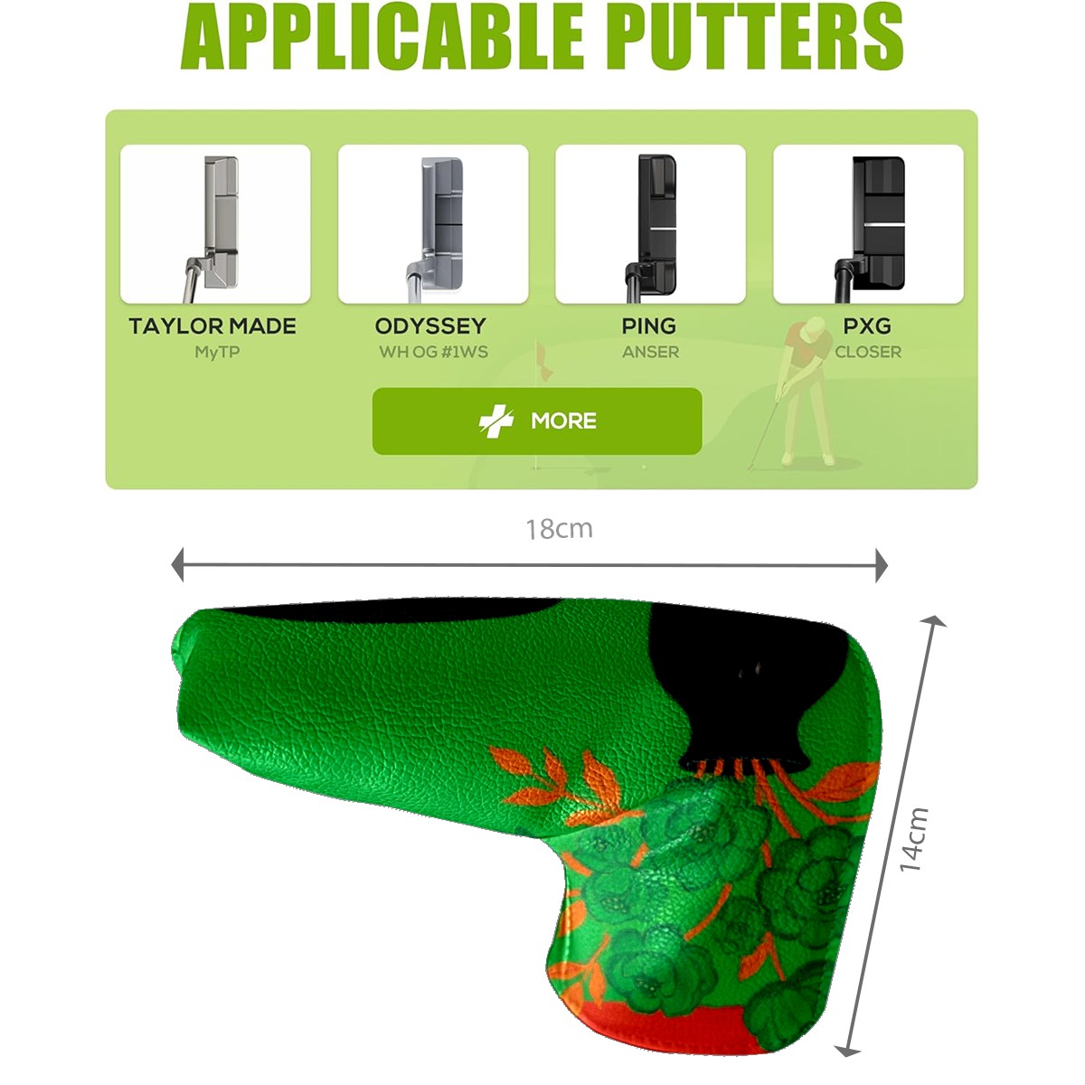 Premium Golf Head Cover | Rugged PU Leather Golf Club Head Cover , Waterproof & Scratch Resistant Velvet Lining Golf Driver Cover Head Cover for Men and WomenGreen Flowersreplace#