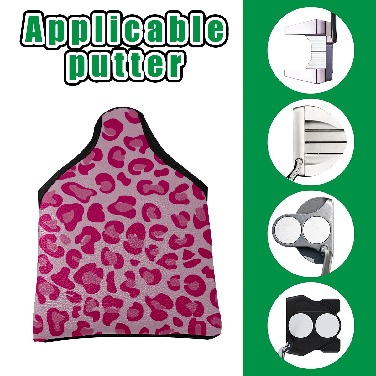 Mallet Putter Cover Magnetic Golf Club Covers Putter Head Cover for Mallet, Waterproof Leather Mallet Putter Headcover for Men Women (Pink Leopard Print)