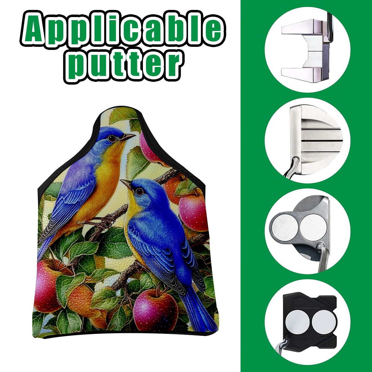 Mallet Putter Cover Magnetic Golf Club Covers Putter Head Cover for Mallet, Waterproof Leather Mallet Putter Headcover for Men Women (Bluebirds Perched)