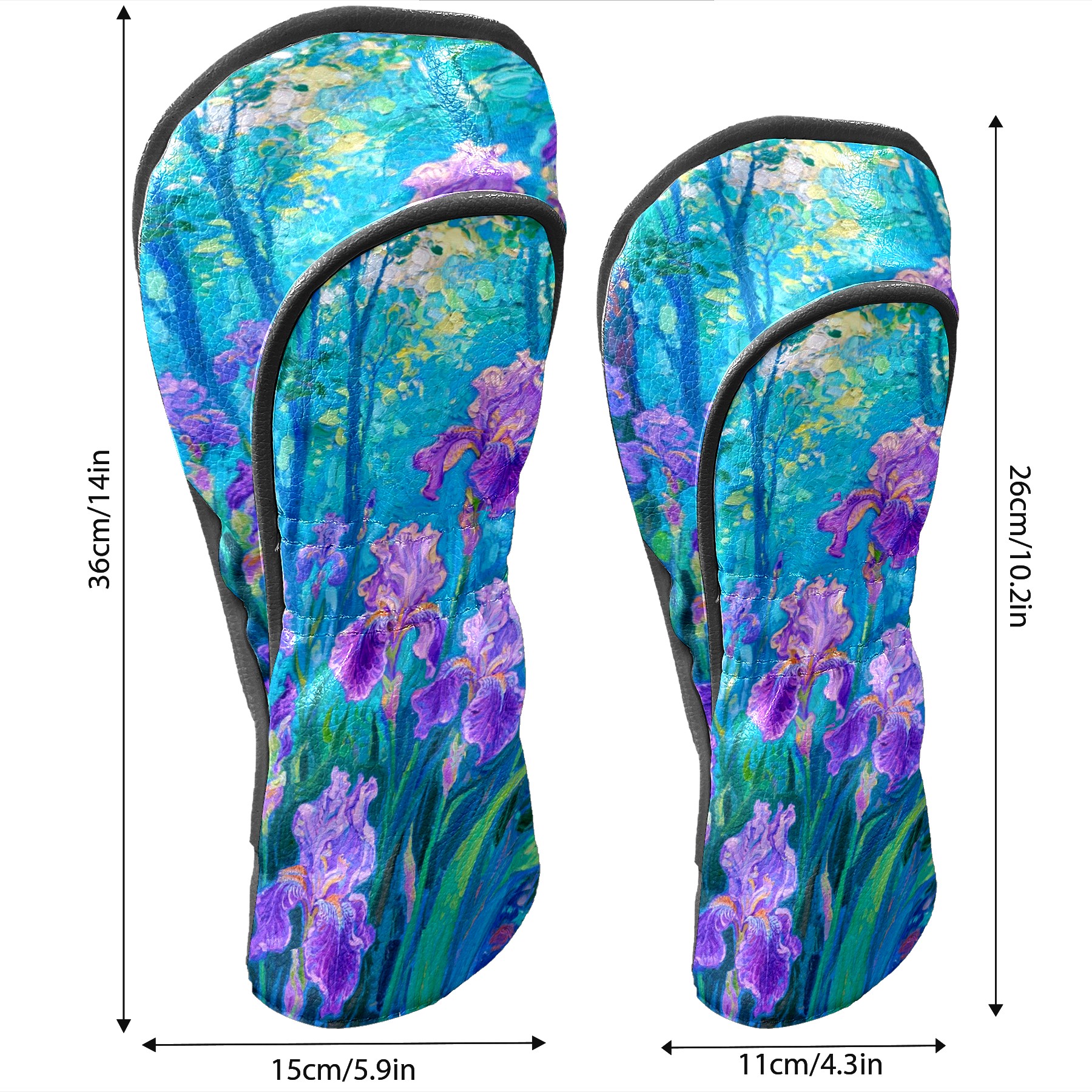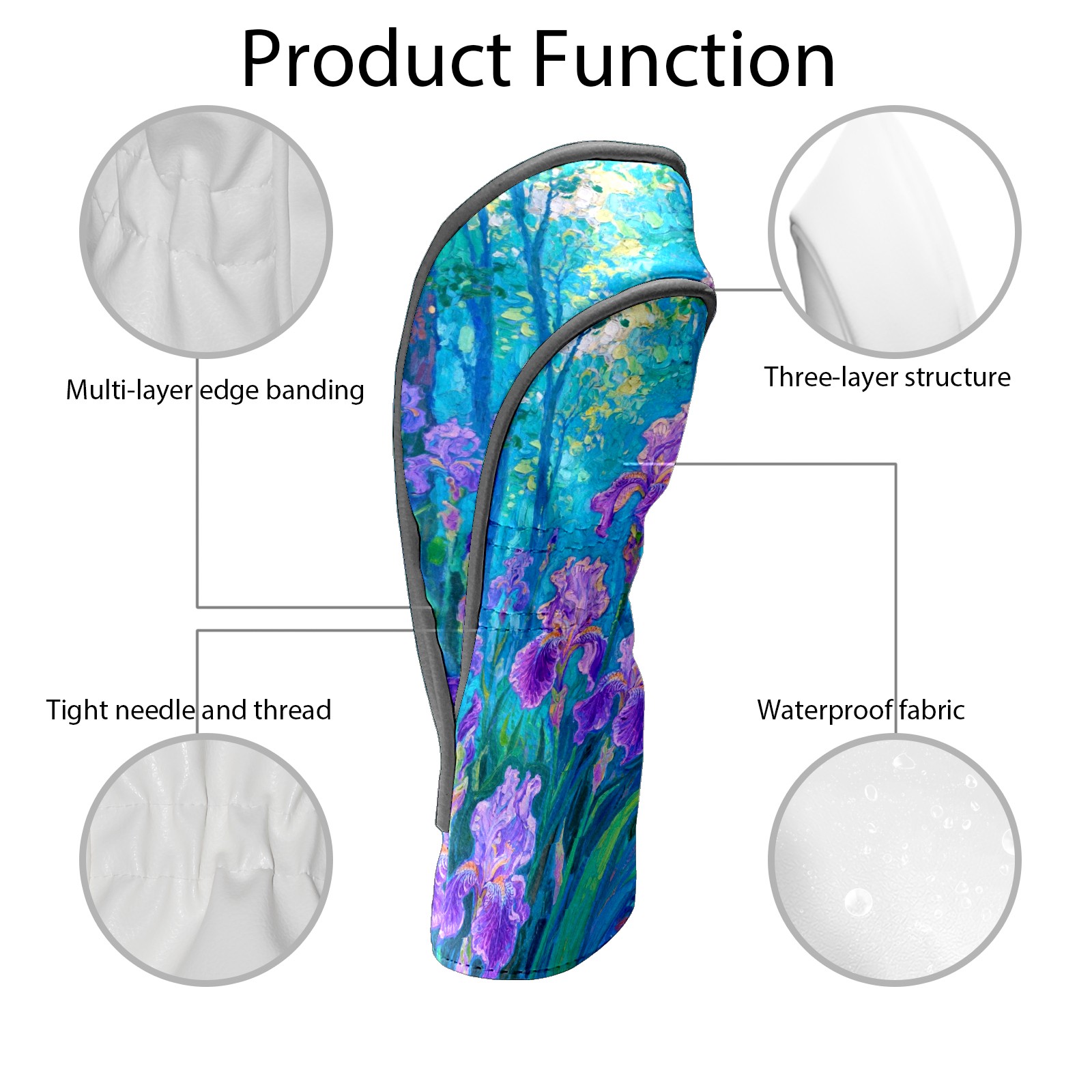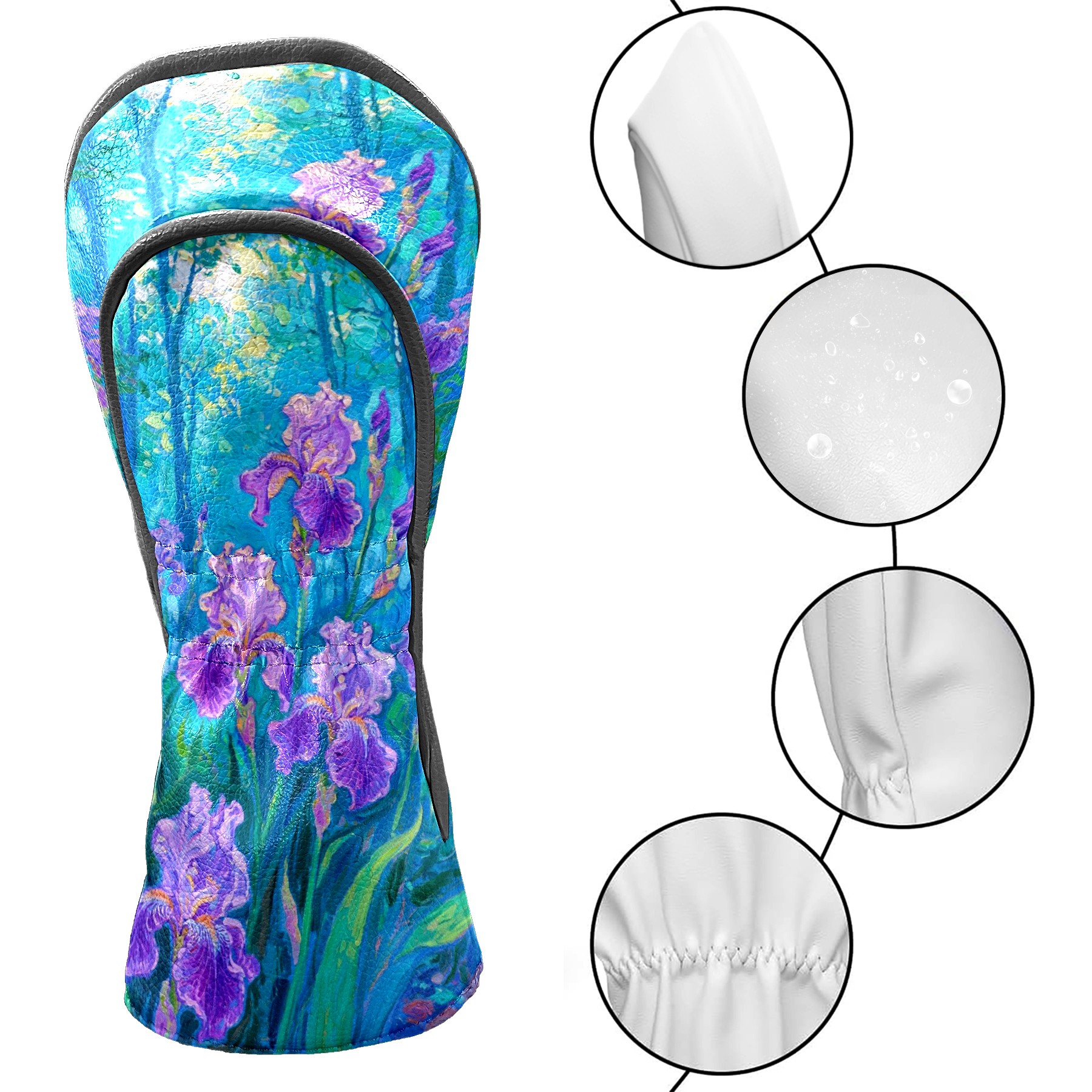 Luxury Golf Club Head Cover Waterproof Soft Velvet Lining Golf Club Head Cover , Scratch Golf Cover Golf Head Cover for Women&MenPurple Flower