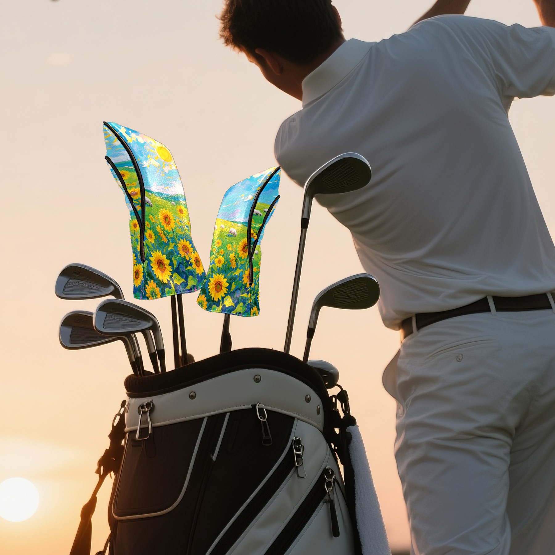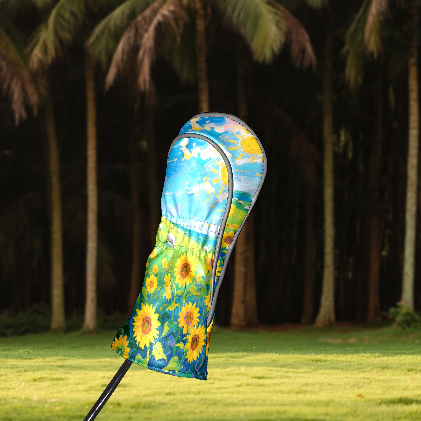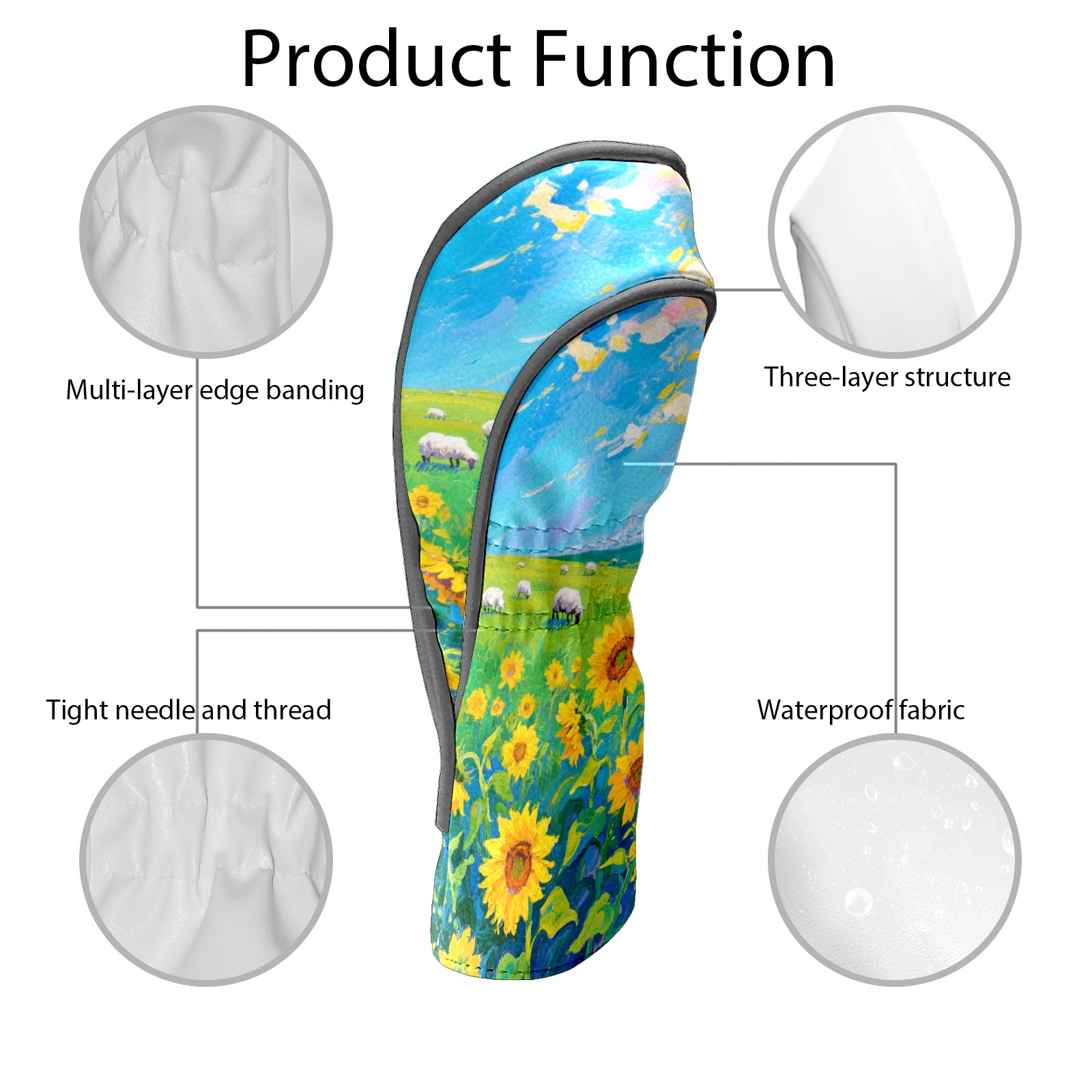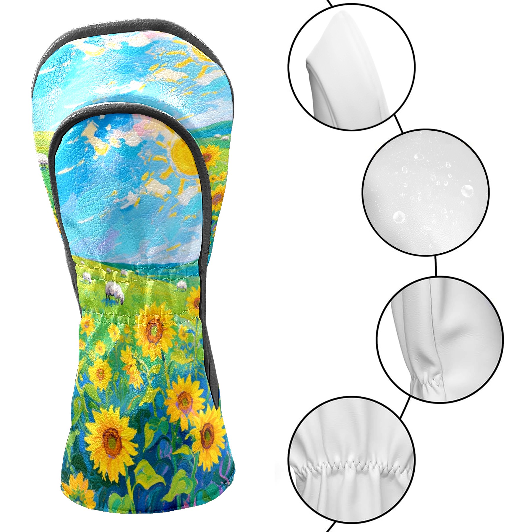 Luxury Golf Club Head Cover Waterproof Soft Velvet Lining Golf Club Head Cover , Scratch Golf Cover Golf Head Cover for Women&MenSun Flower