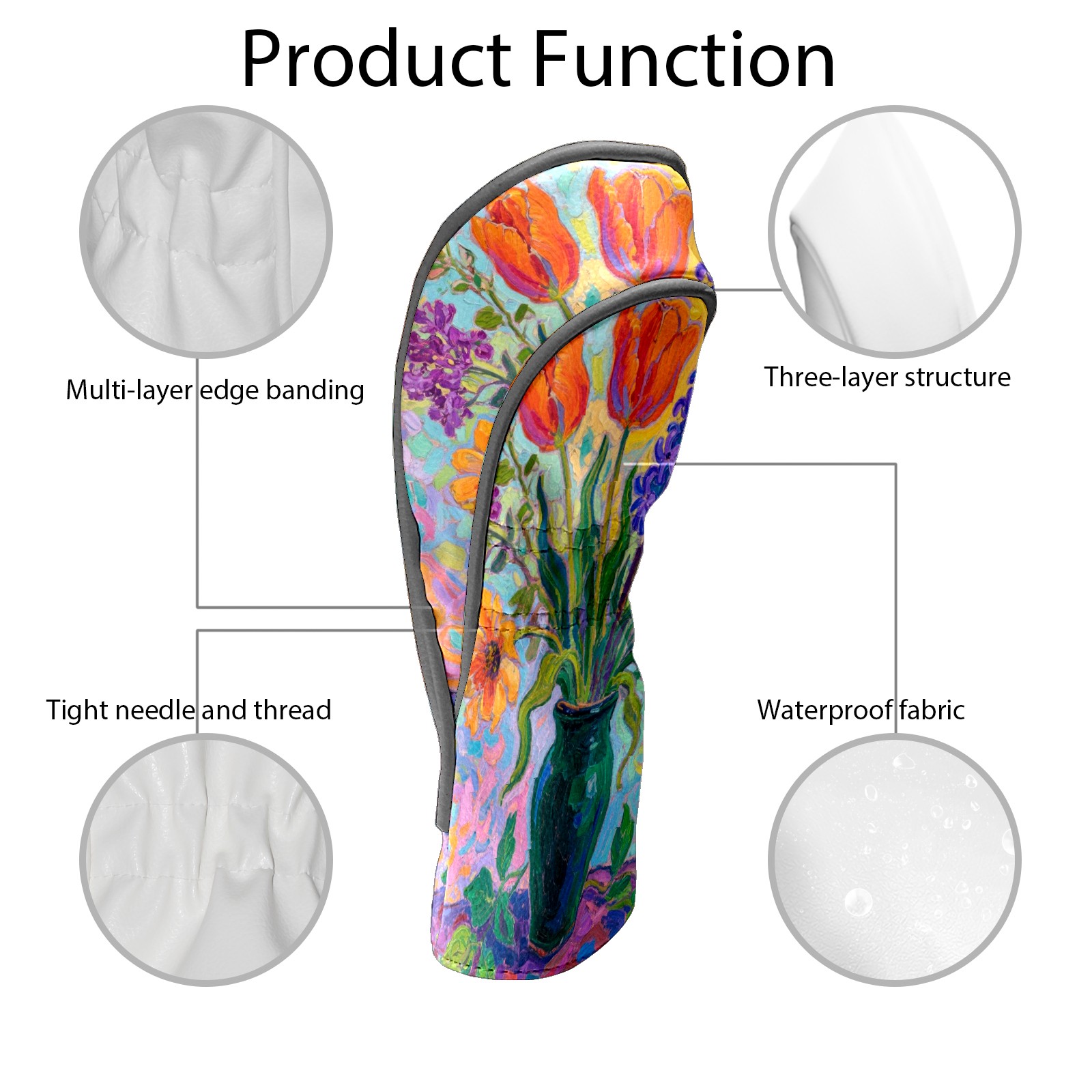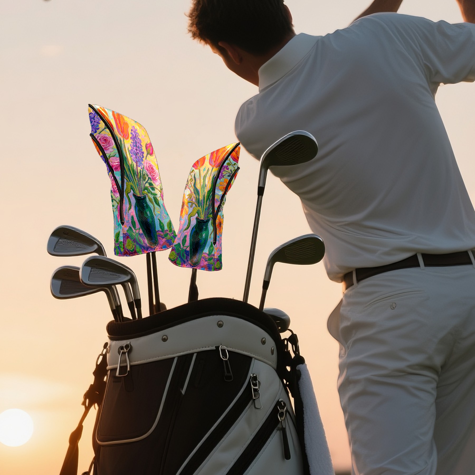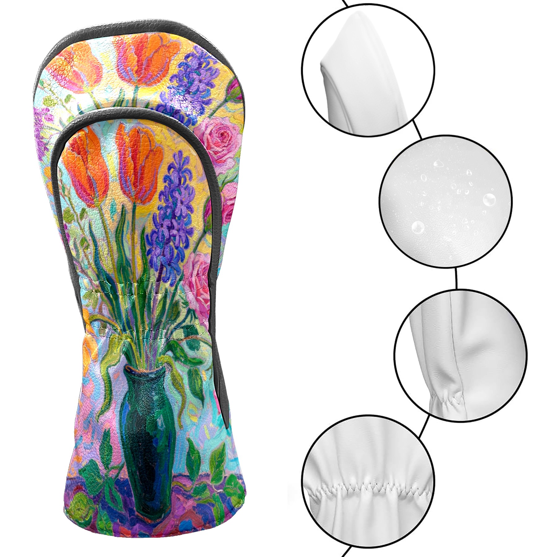 Luxury Golf Club Head Cover Waterproof Soft Velvet Lining Golf Club Head Cover , Scratch Golf Cover Golf Head Cover for Women&MenColorful Flowers
