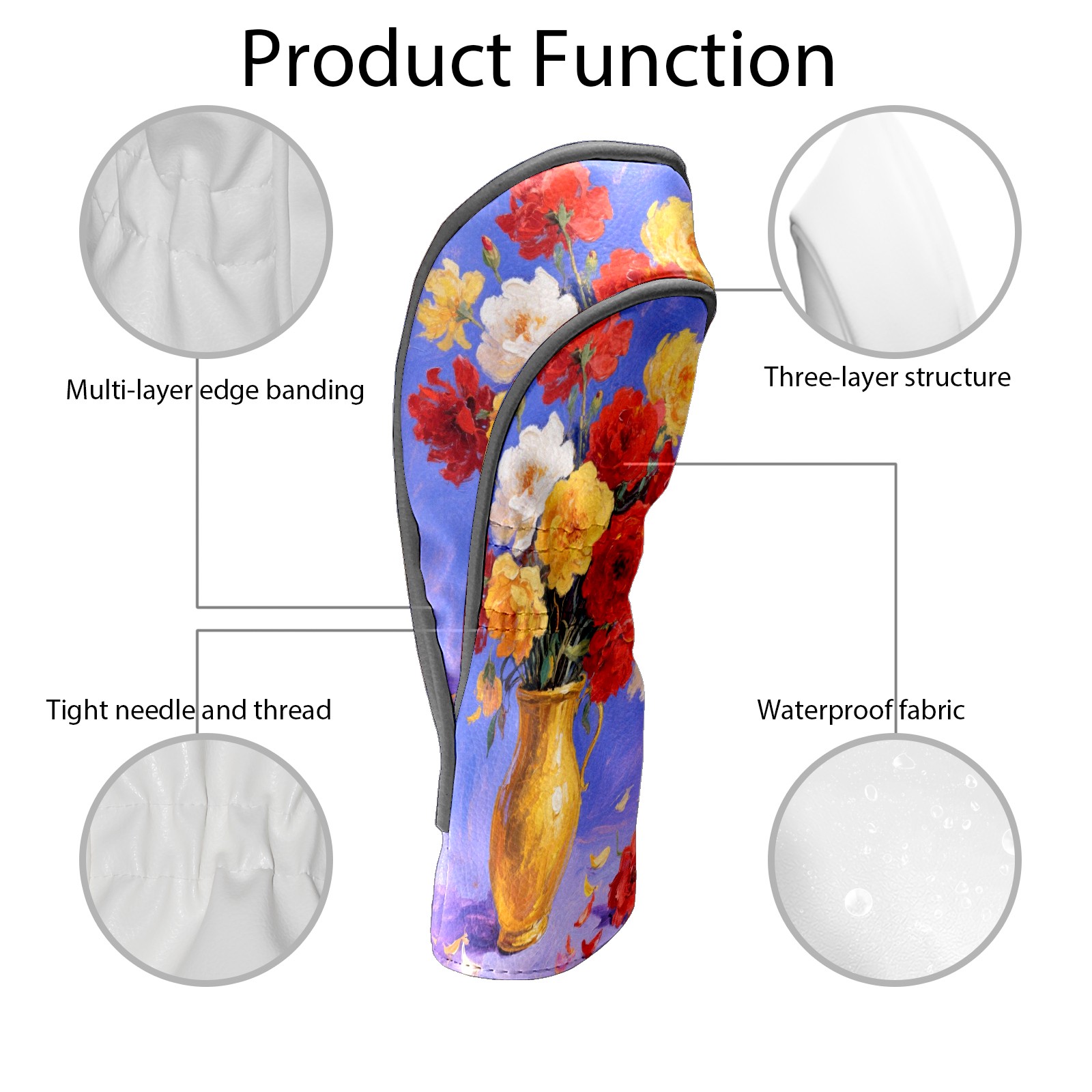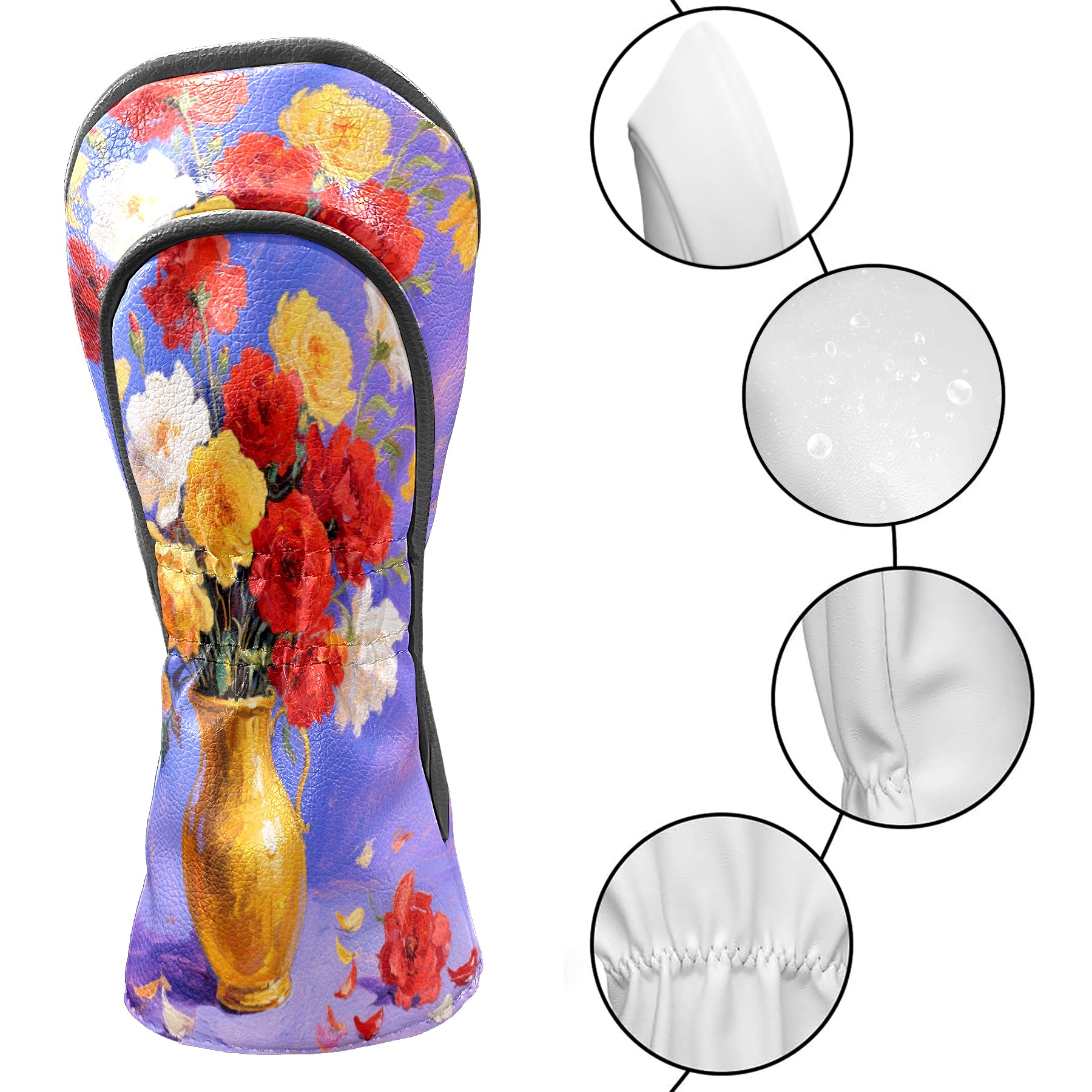 Luxury Golf Club Head Cover Waterproof Soft Velvet Lining Golf Club Head Cover , Scratch Golf Cover Golf Head Cover for Women&MenColorful Flower