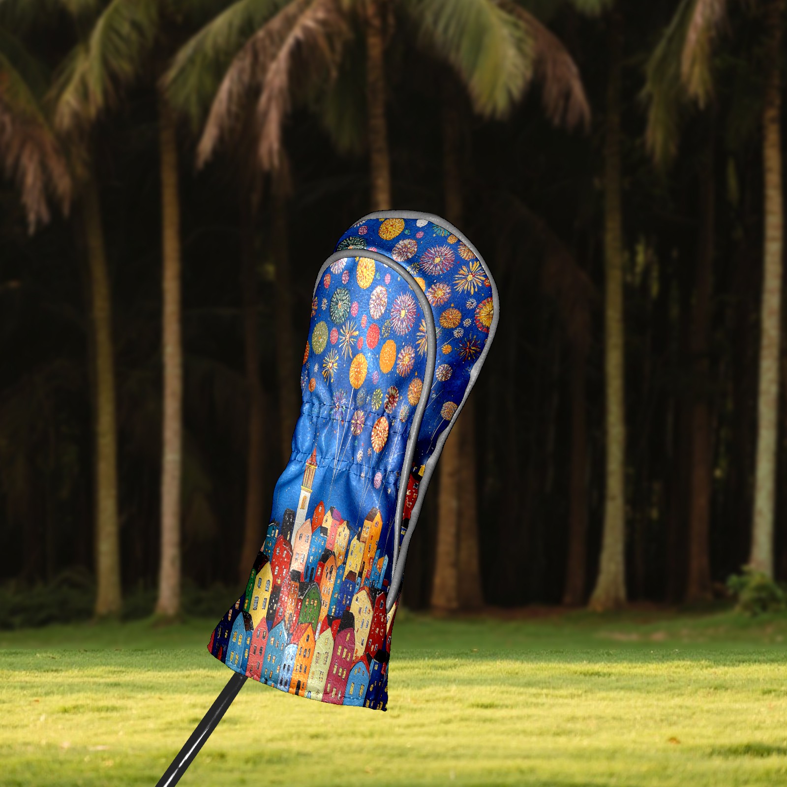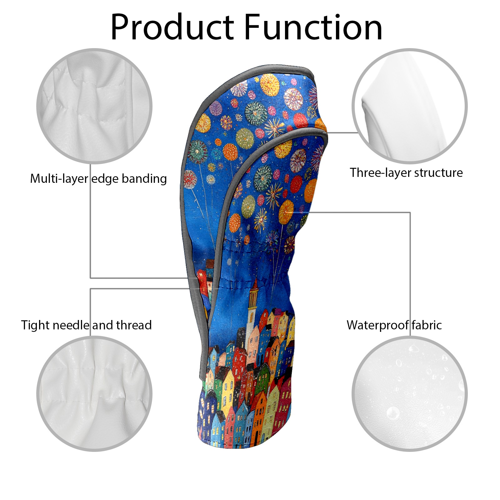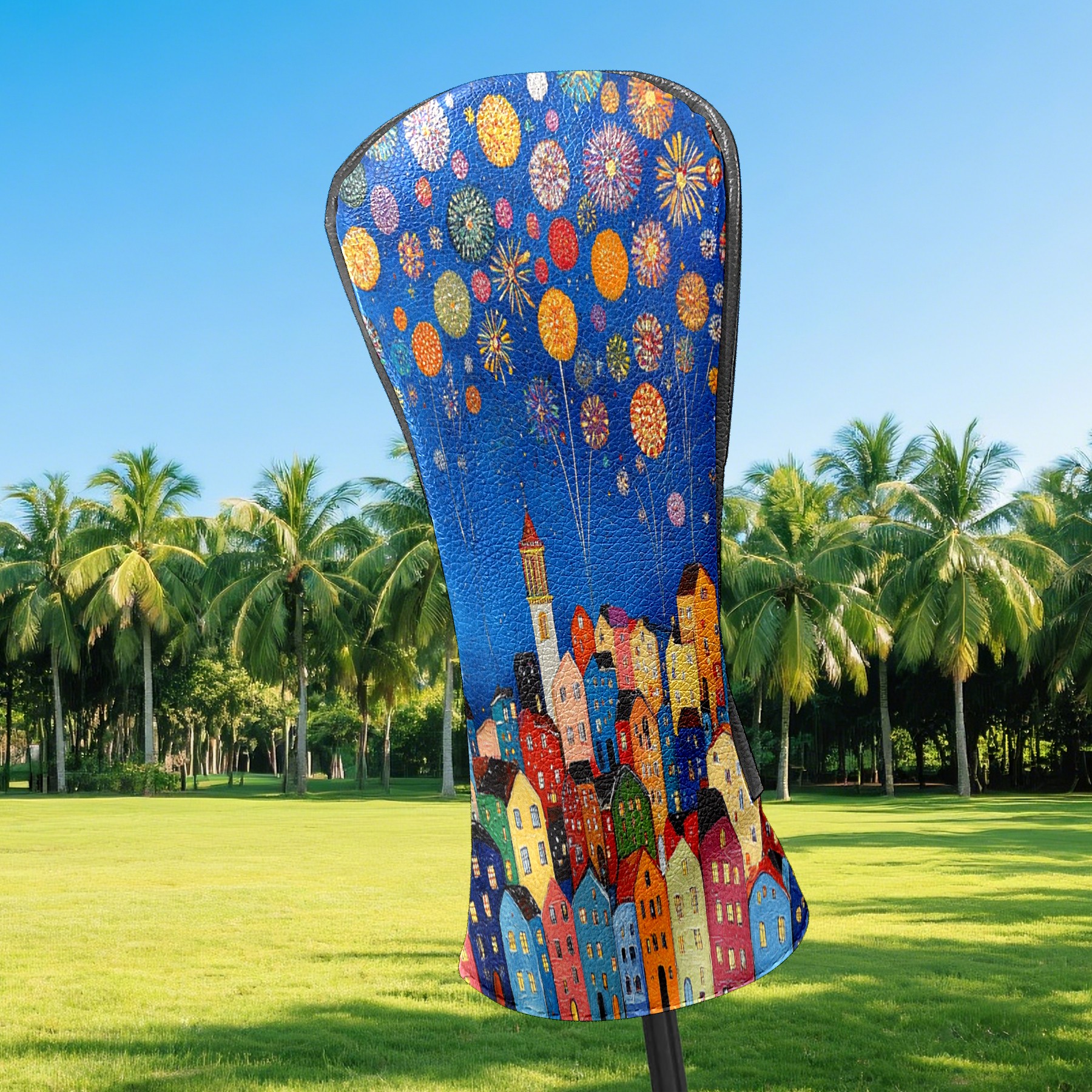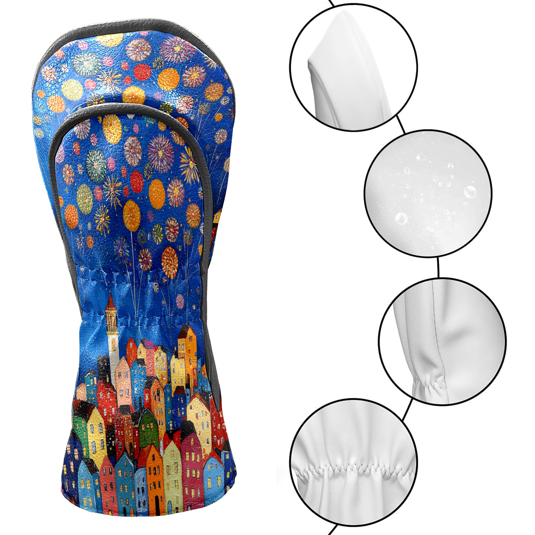 Luxury Golf Club Head Cover Waterproof Soft Velvet Lining Golf Club Head Cover , Scratch Golf Cover Golf Head Cover for Women&MenCityscape_with_fireworks