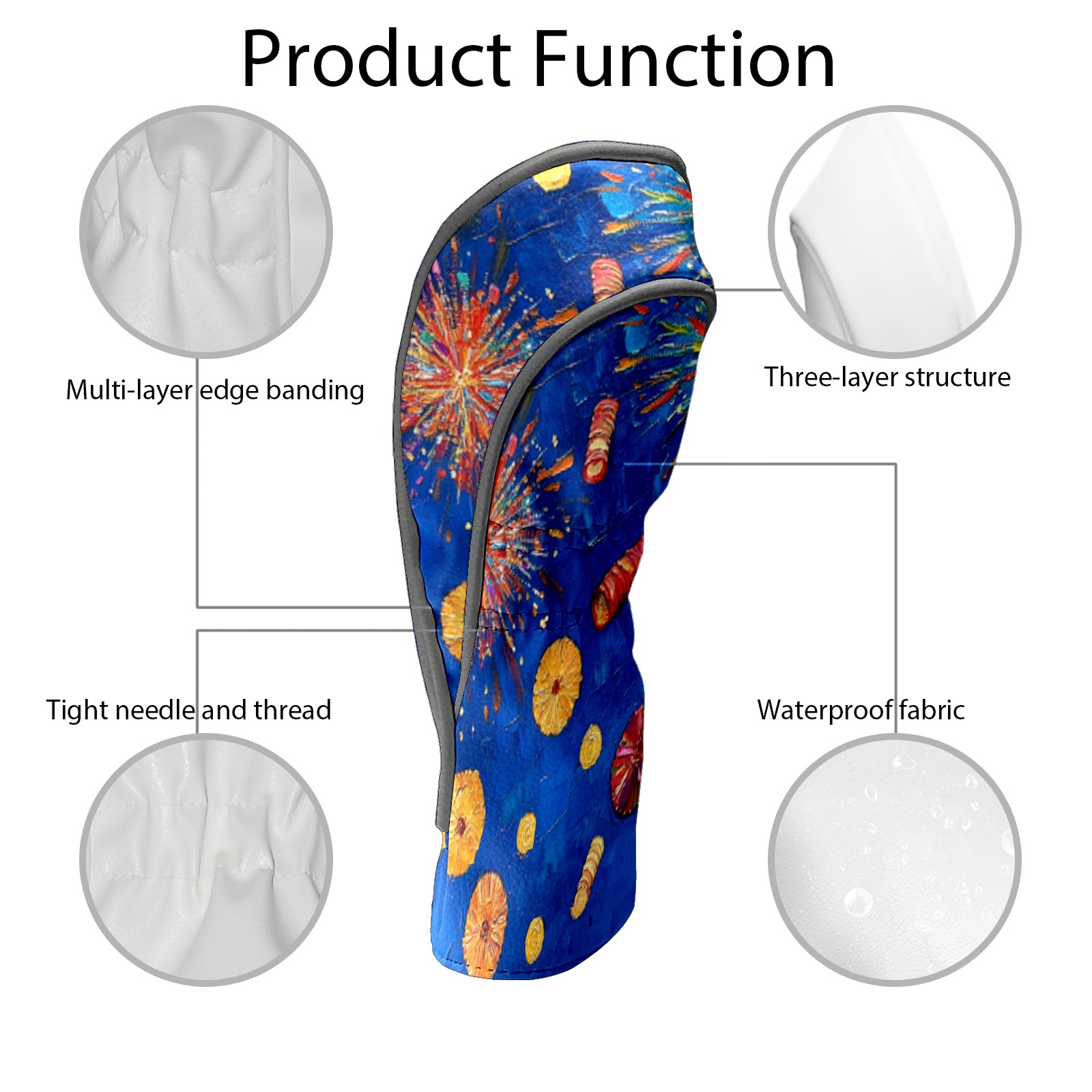 Luxury Golf Club Head Cover Waterproof Soft Velvet Lining Golf Club Head Cover , Scratch Golf Cover Golf Head Cover for Women&MenFirecrackers_