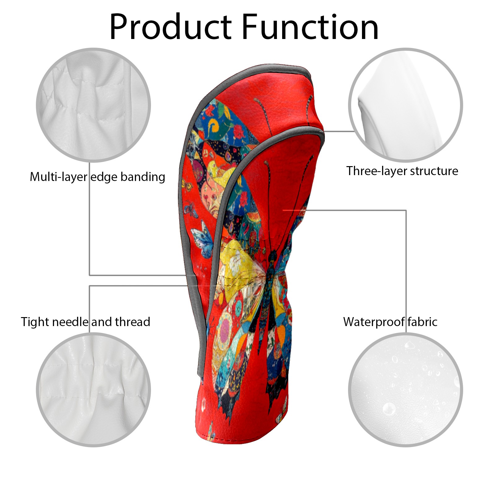 Luxury Golf Club Head Cover Waterproof Soft Velvet Lining Golf Club Head Cover , Scratch Golf Cover Golf Head Cover for Women&MenButterfly