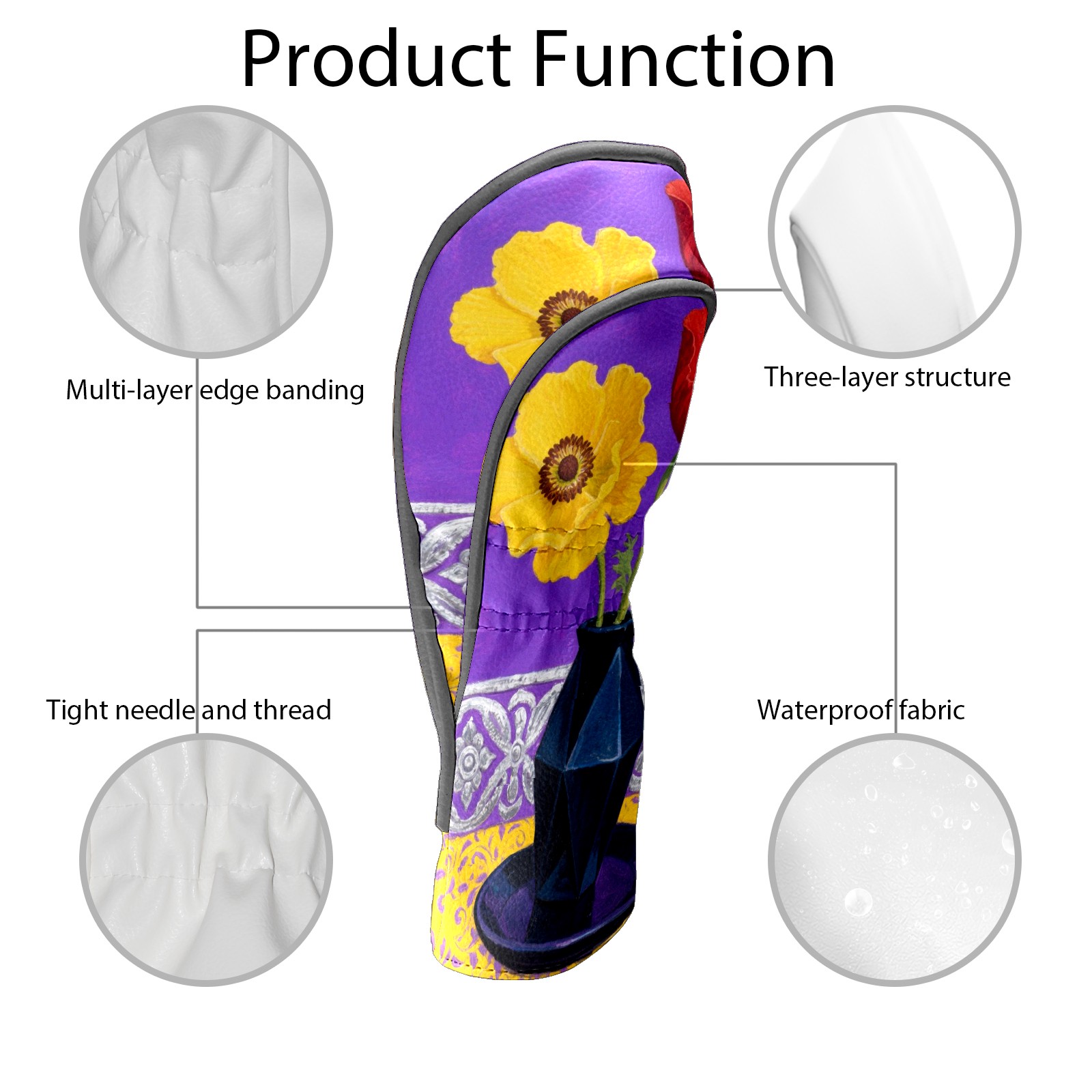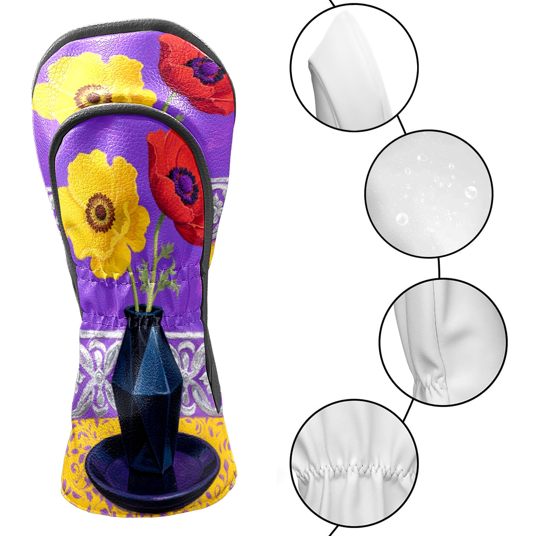 Luxury Golf Club Head Cover Waterproof Soft Velvet Lining Golf Club Head Cover , Scratch Golf Cover Golf Head Cover for Women&MenRed Flower