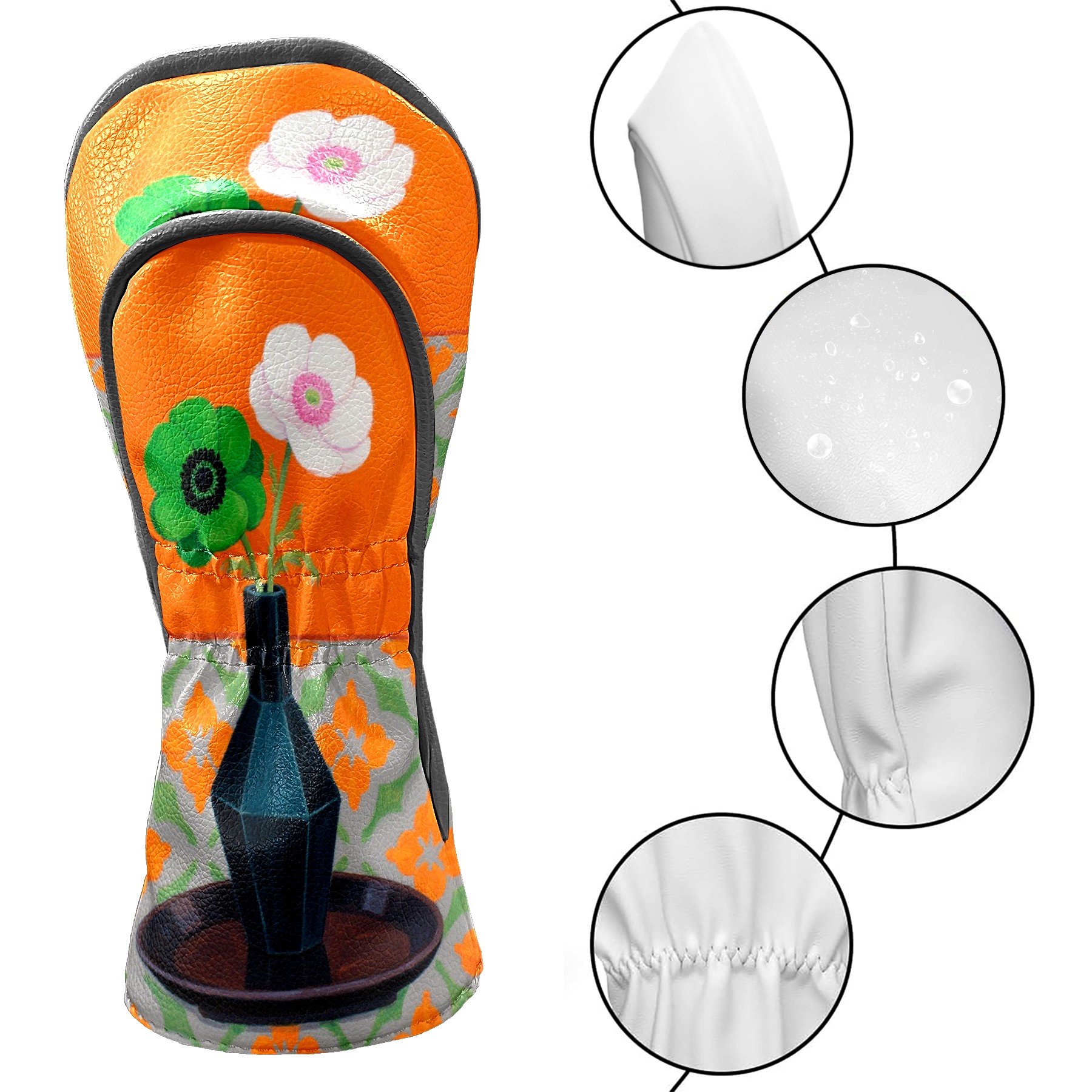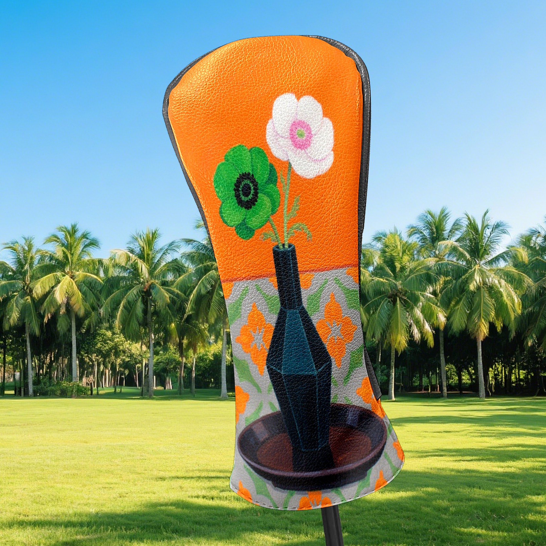 Luxury Golf Club Head Cover Waterproof Soft Velvet Lining Golf Club Head Cover , Scratch Golf Cover Golf Head Cover for Women&MenGreen Flower