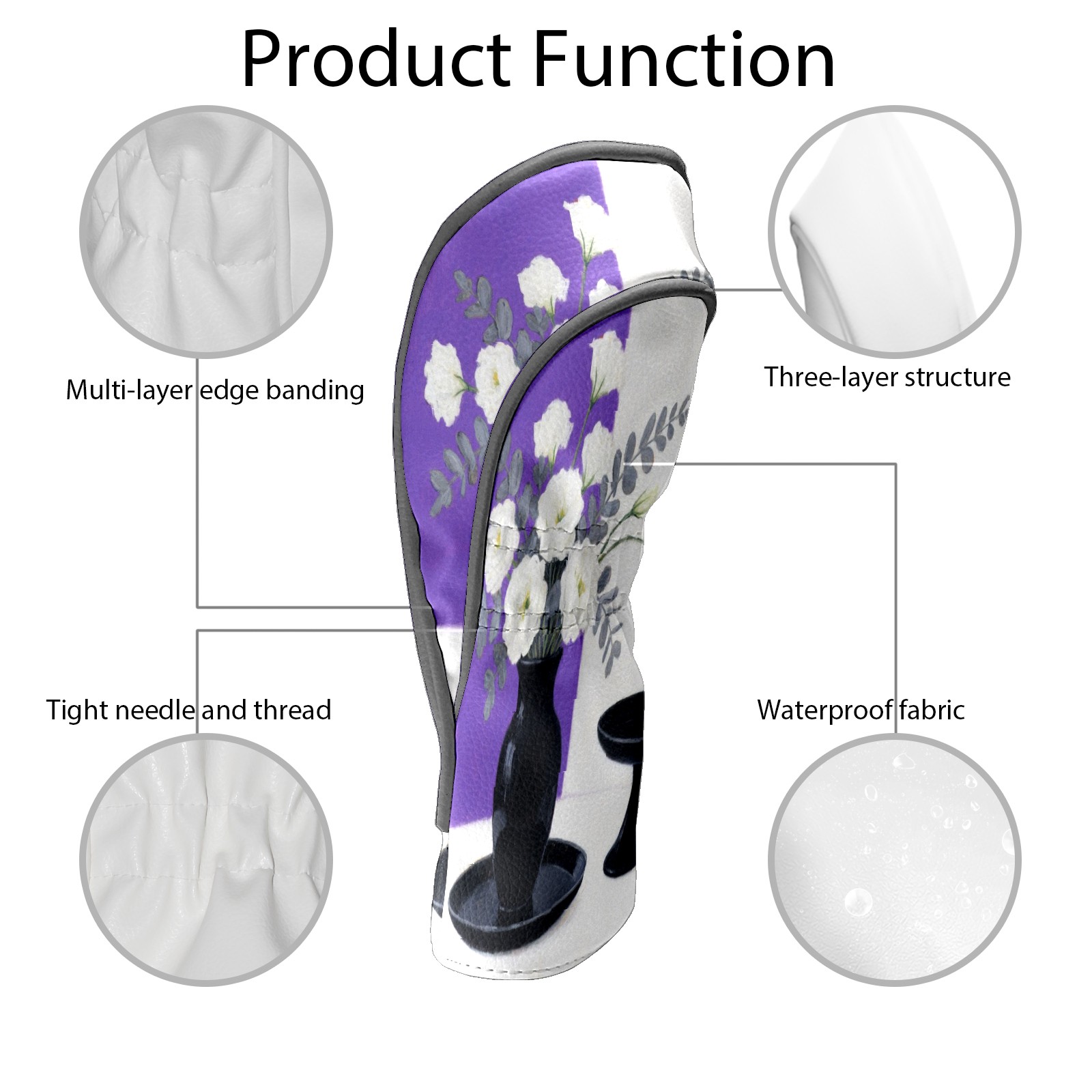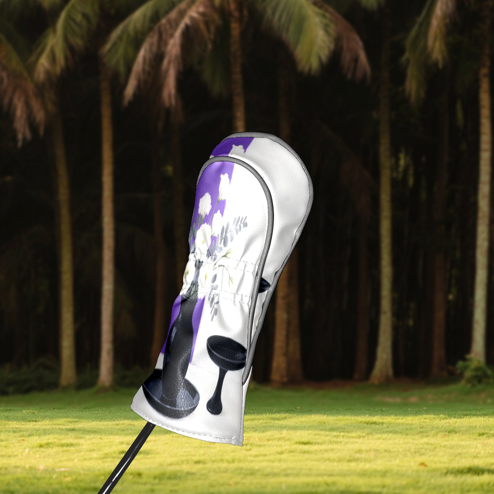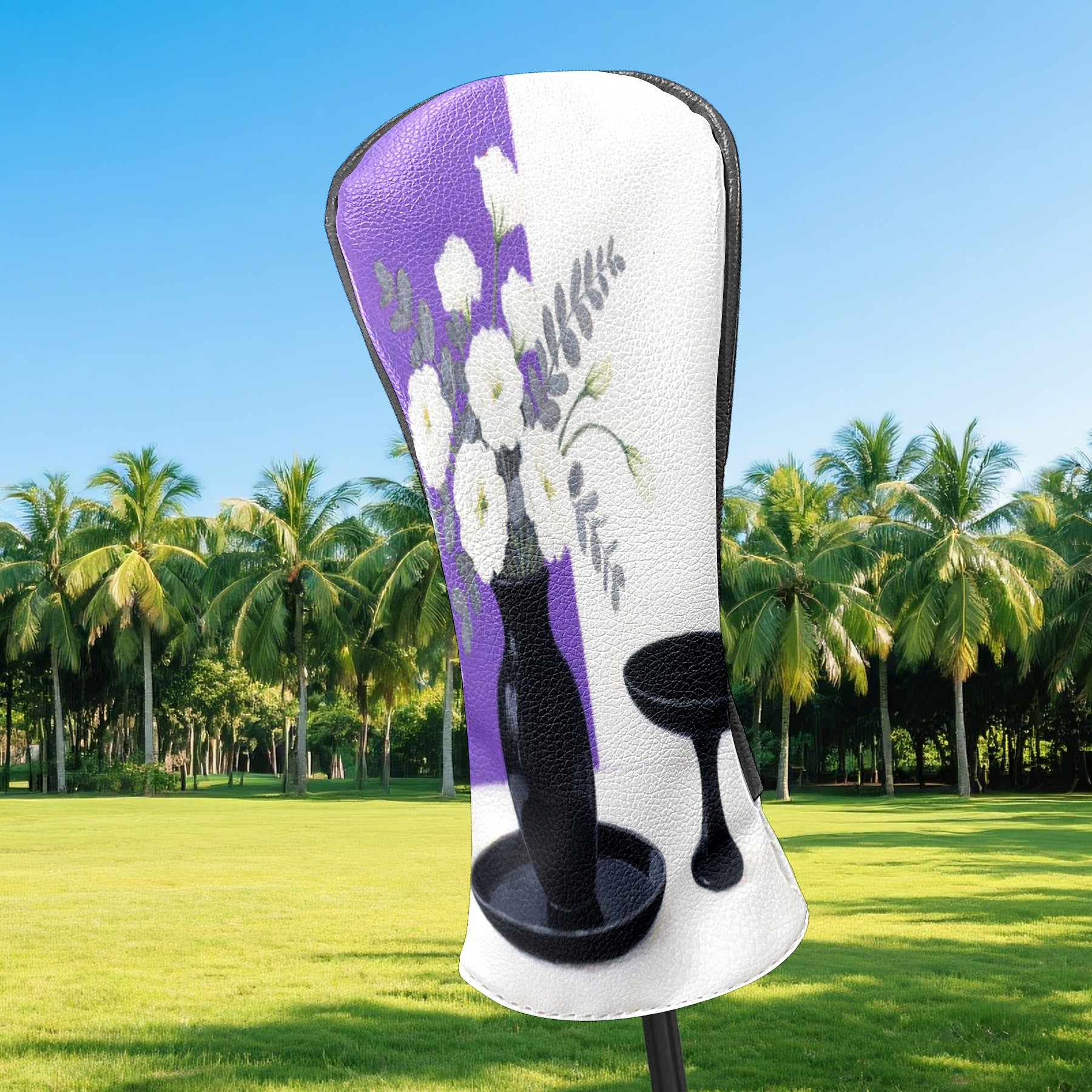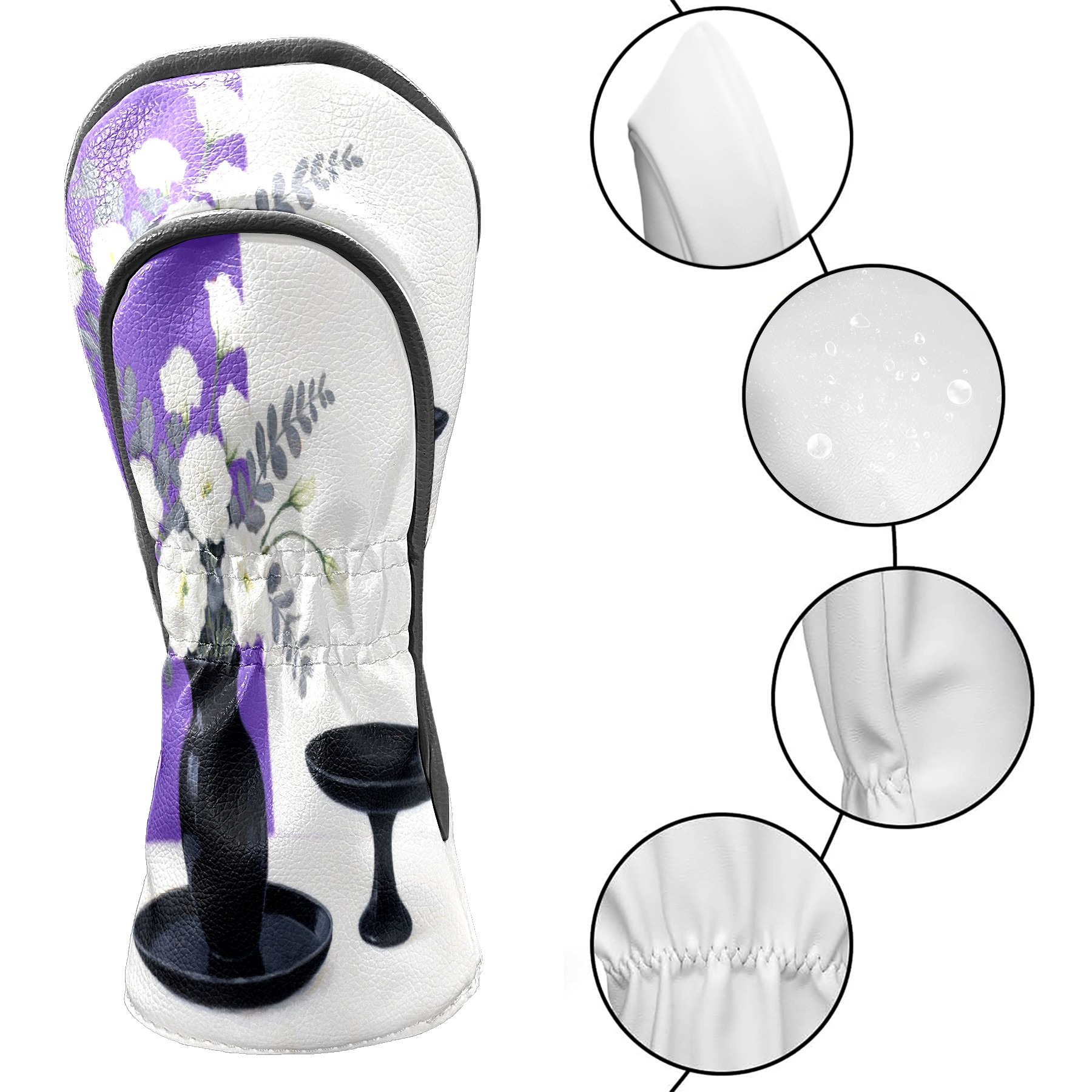 Luxury Golf Club Head Cover Waterproof Soft Velvet Lining Golf Club Head Cover , Scratch Golf Cover Golf Head Cover for Women&MenWhite Flower