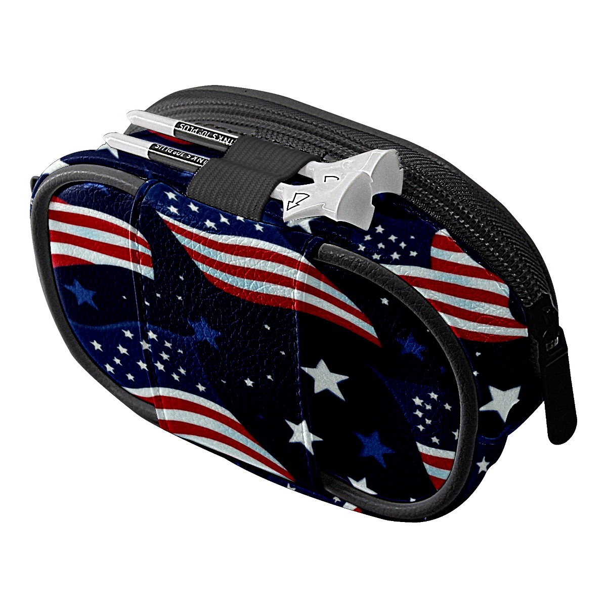 Golf Ball Waist Bag PU Leather Golf Ball Pouch with Belt Clip, Portable Golf Tee Holder & Golf Accessories Organizer for Men Women, Golfing Fanny Pack for Balls Tees Valuables (Realistic Waving American Flags)