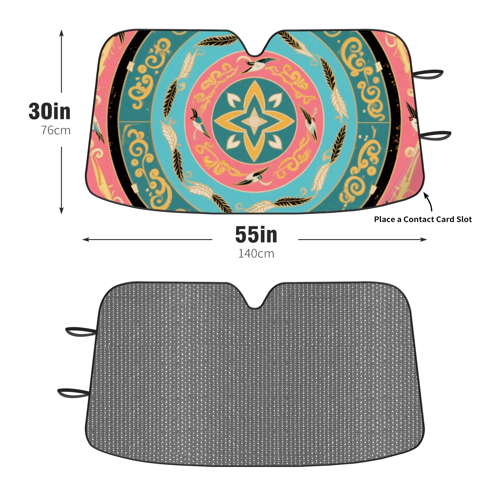 • <p>This car sunshade pad is made of a high-quality combination of aluminum foil and polyester, reinforced with transparent adhesive. It measures 140x76cm (55inx30in) and is a practical choice for protecting your car. Its powerful UV protection function can effectively block harmful light, prevent the car interior from aging due to exposure to sunlight, and maintain the dashboard, steering wheel, and seats in a brand new state.<br></p>