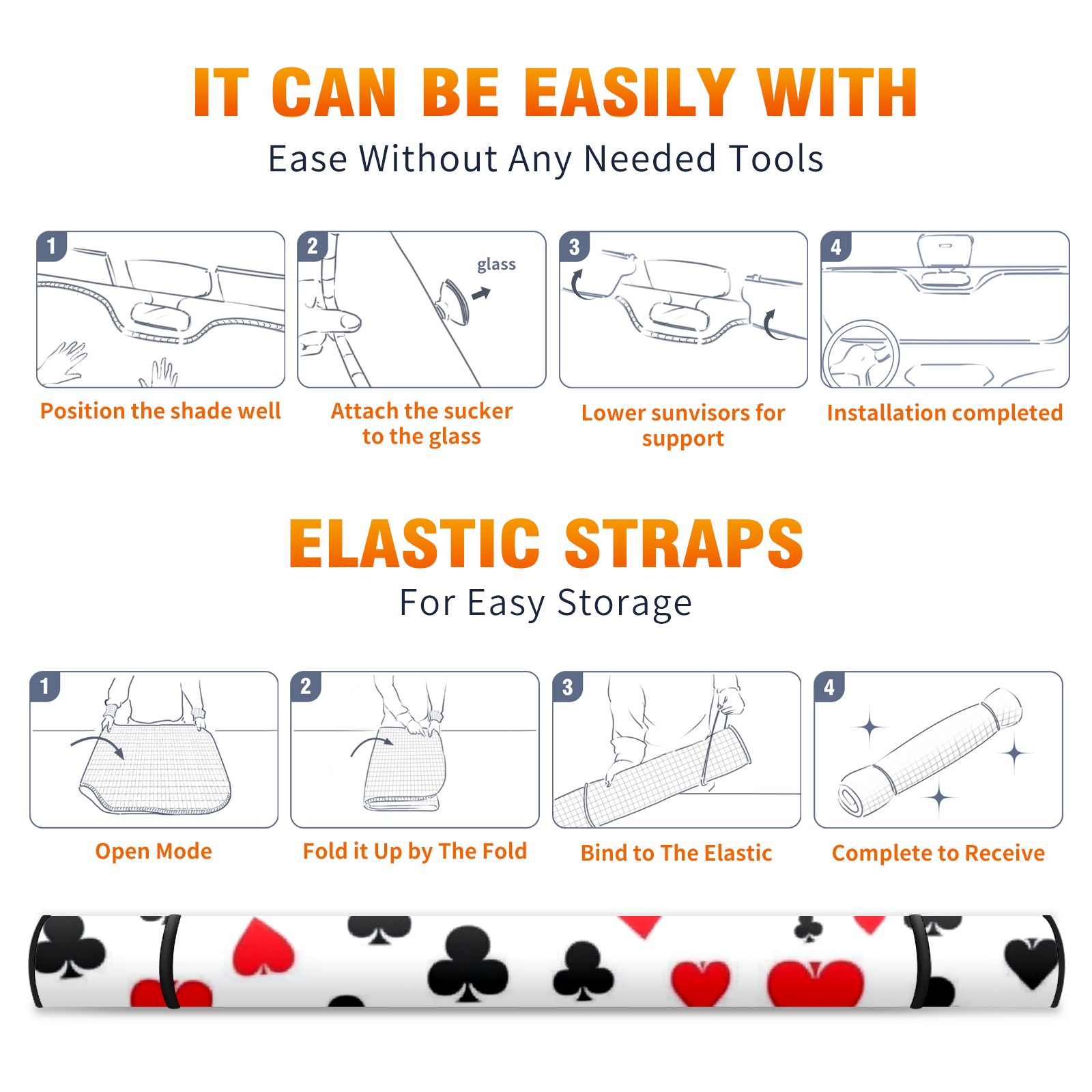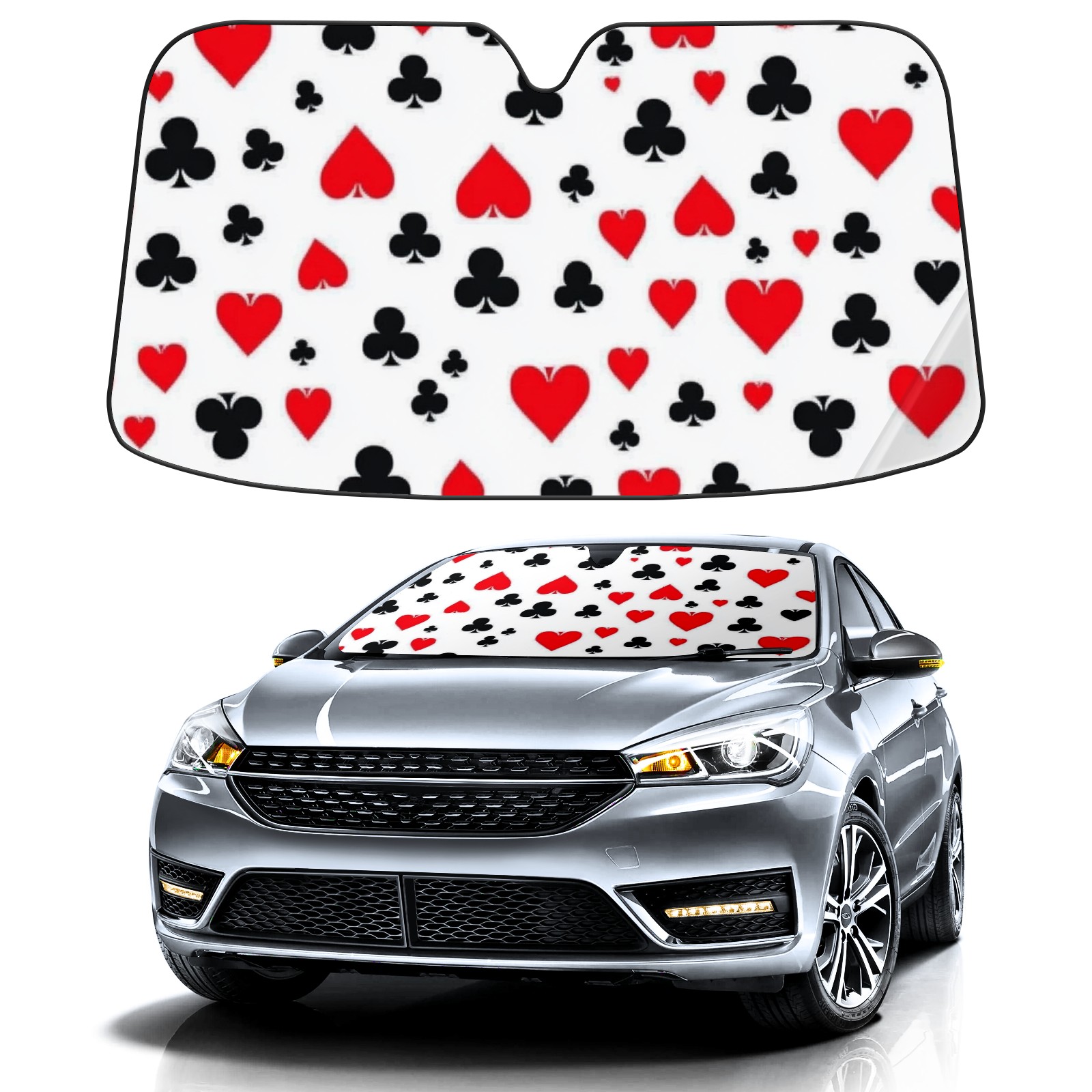 Car Windshield Sun Shade Polyester Car Sunshade Pad, Heat Insulation And Sun Protection Scattered Playing Cards