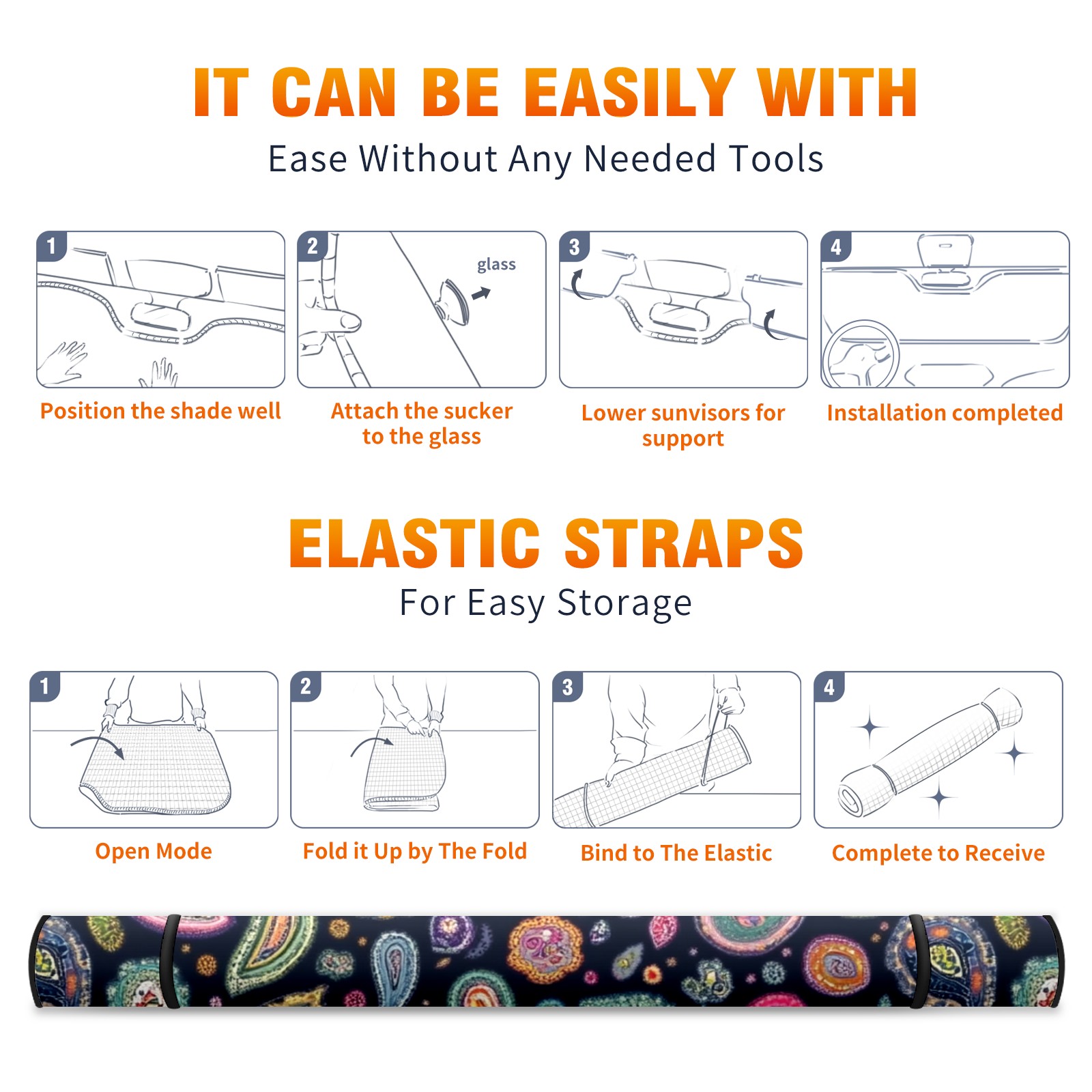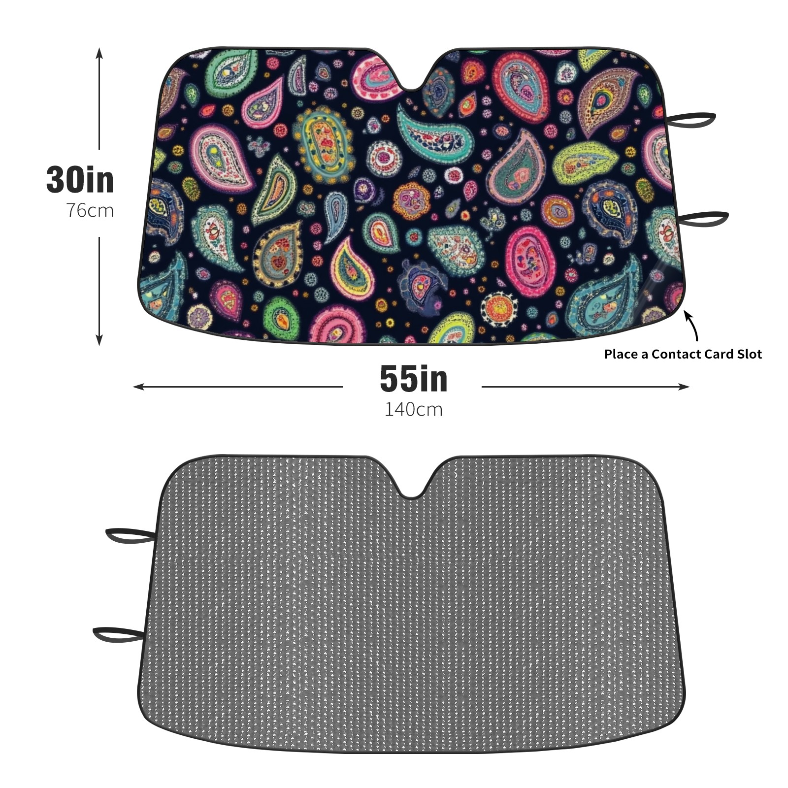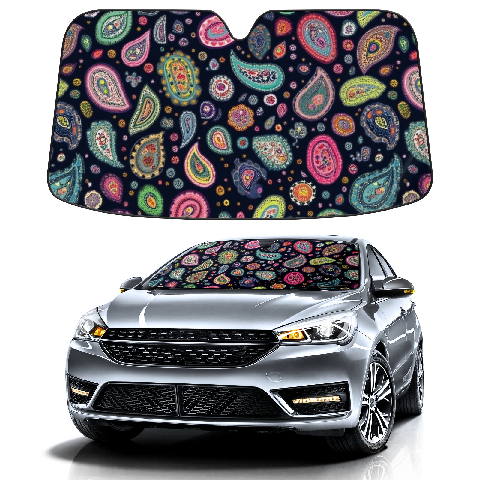 Car Windshield Sun Shade Polyester Car Sunshade Pad, Heat Insulation And Sun Protection Colorful Paisley Designs