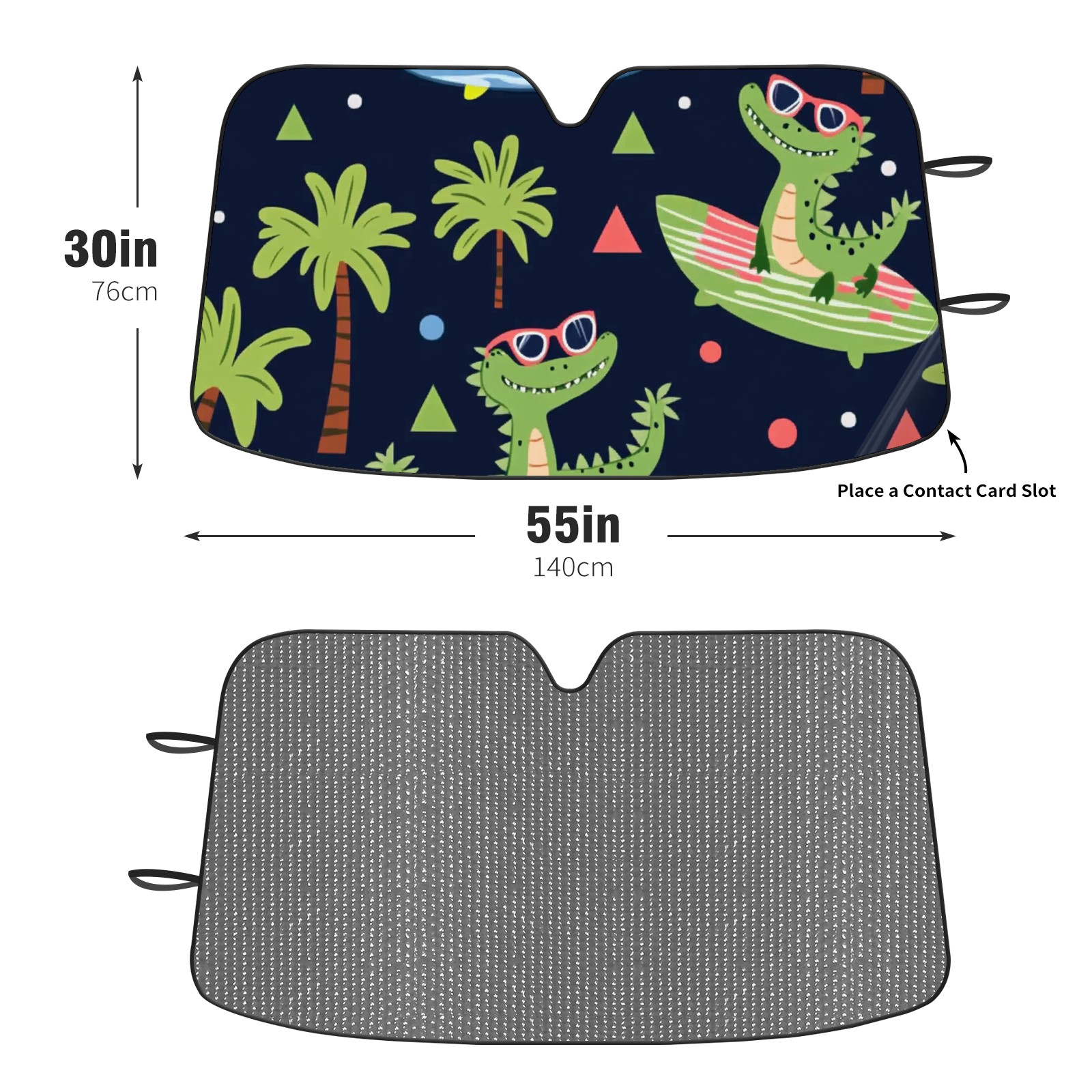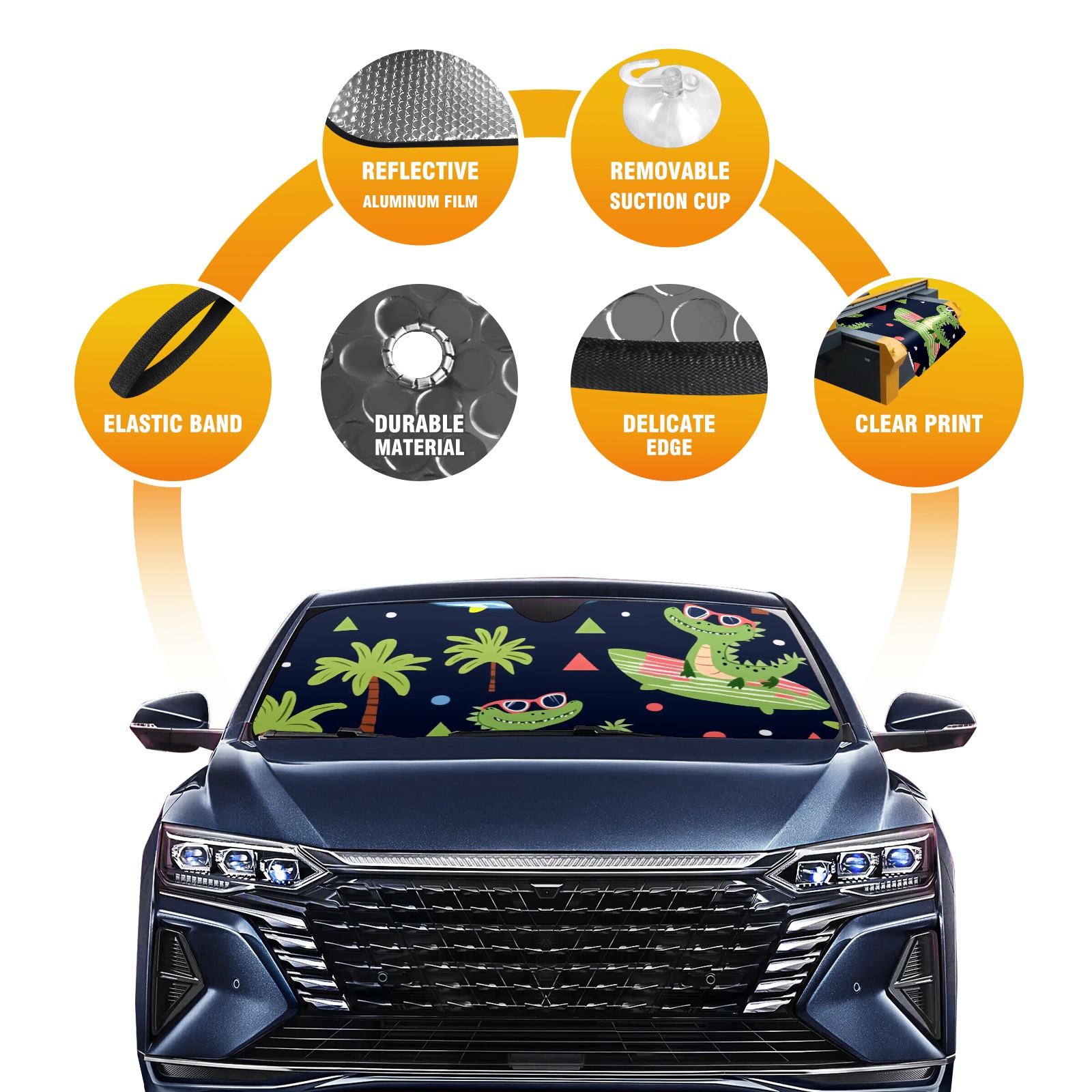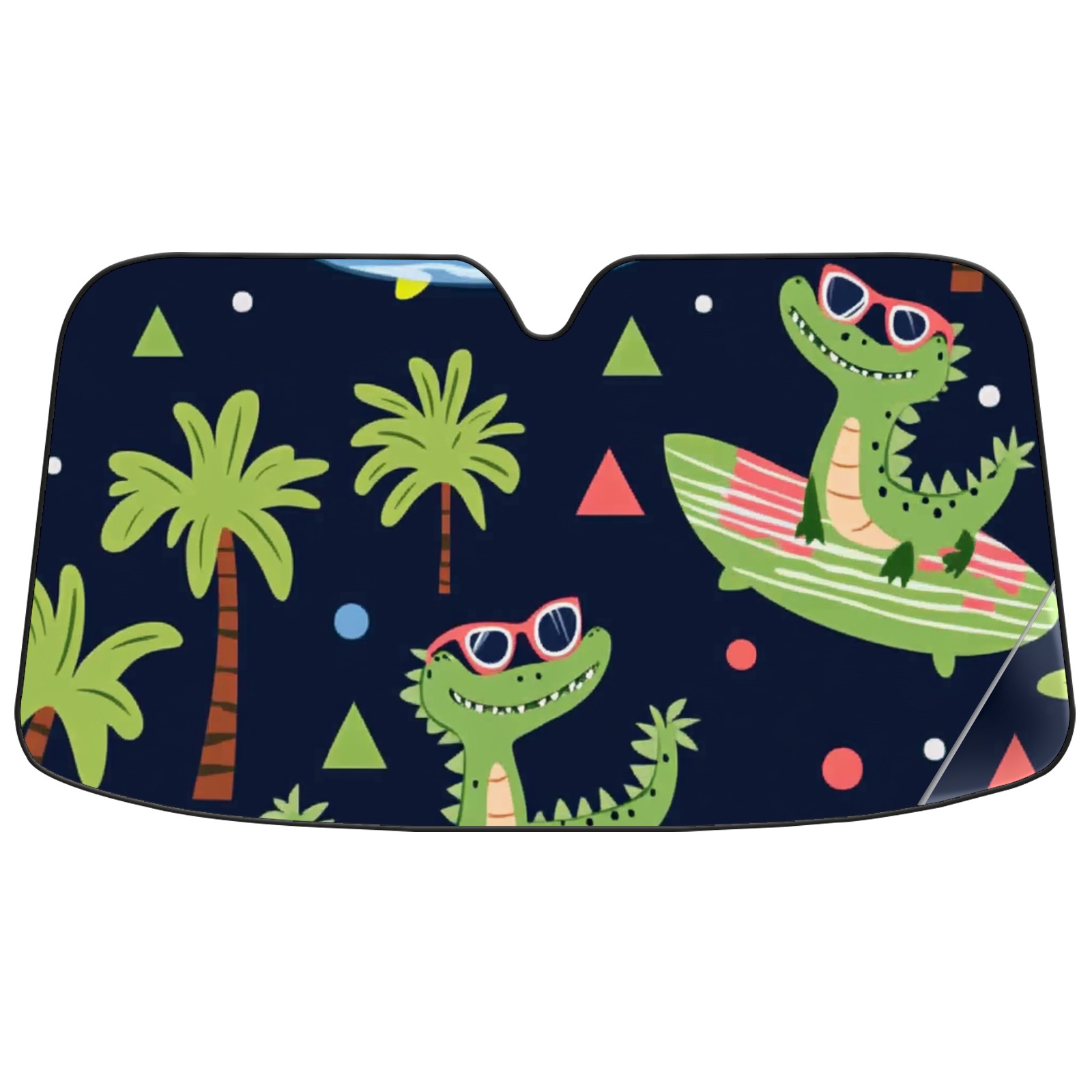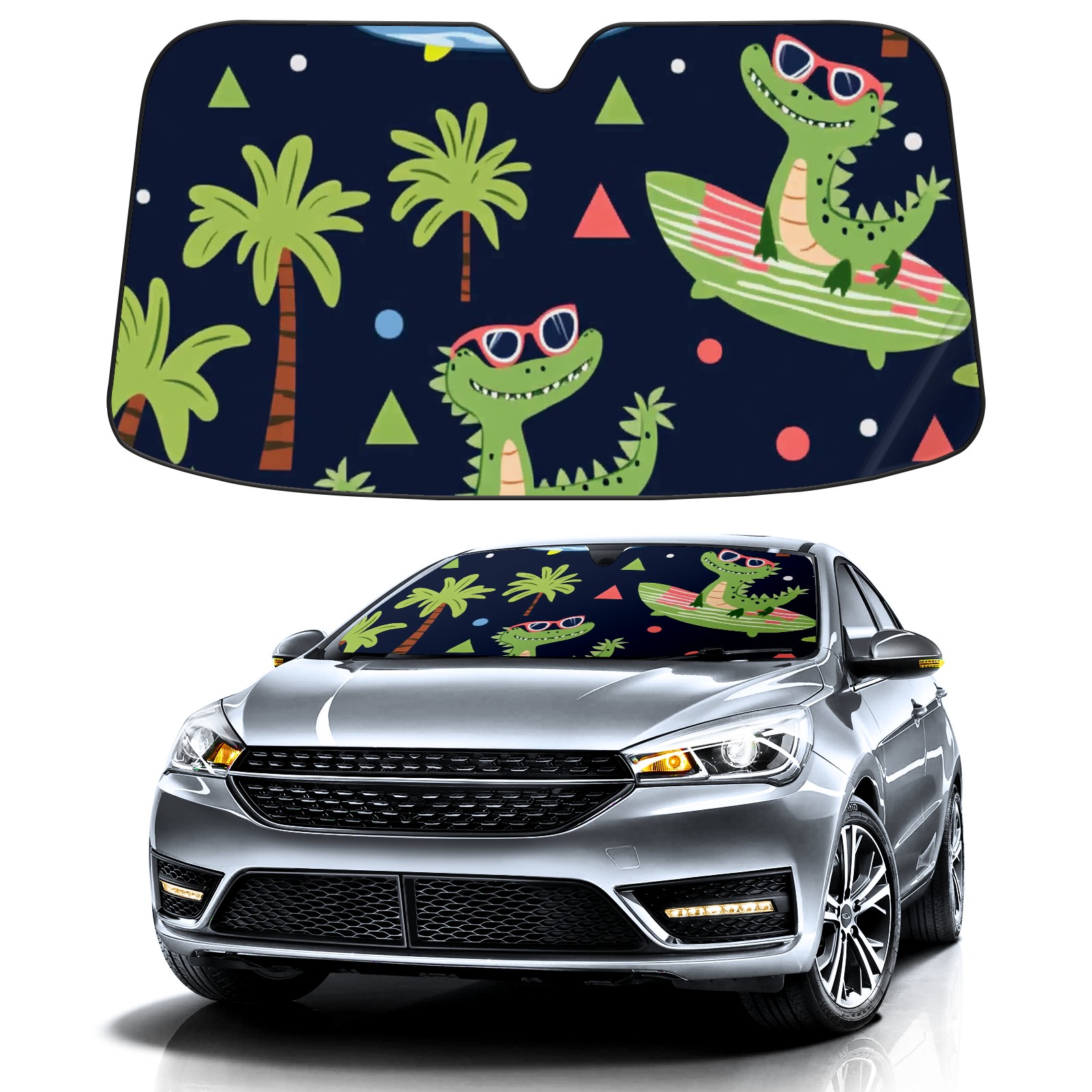 Car Windshield Sun Shade Polyester Car Sunshade Pad, Heat Insulation And Sun Protection Crocodiles Surfing On Surfboards