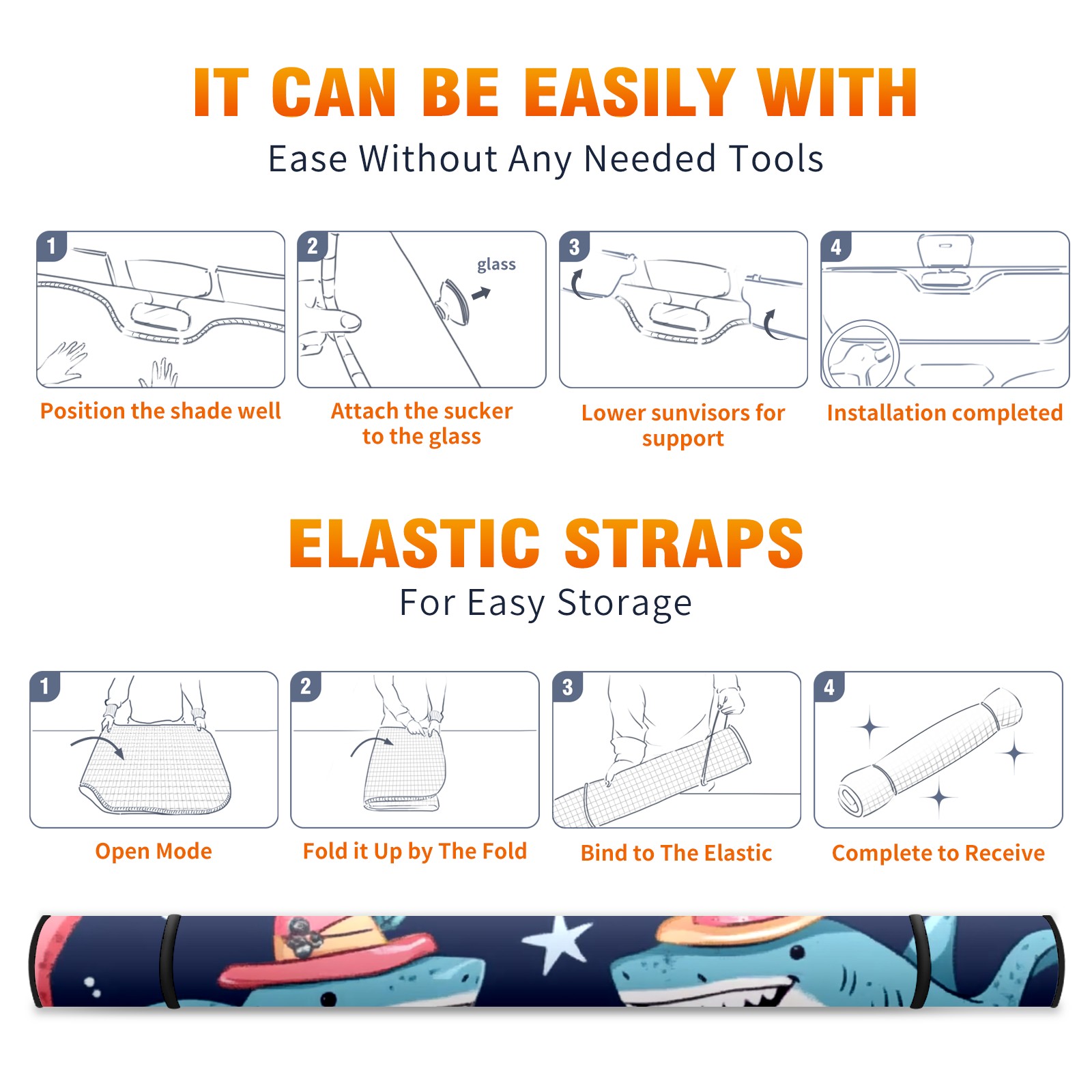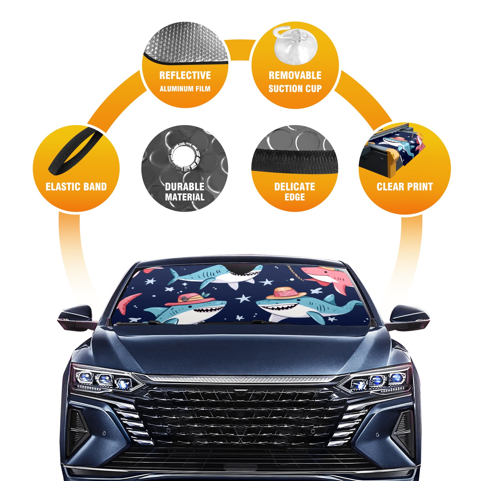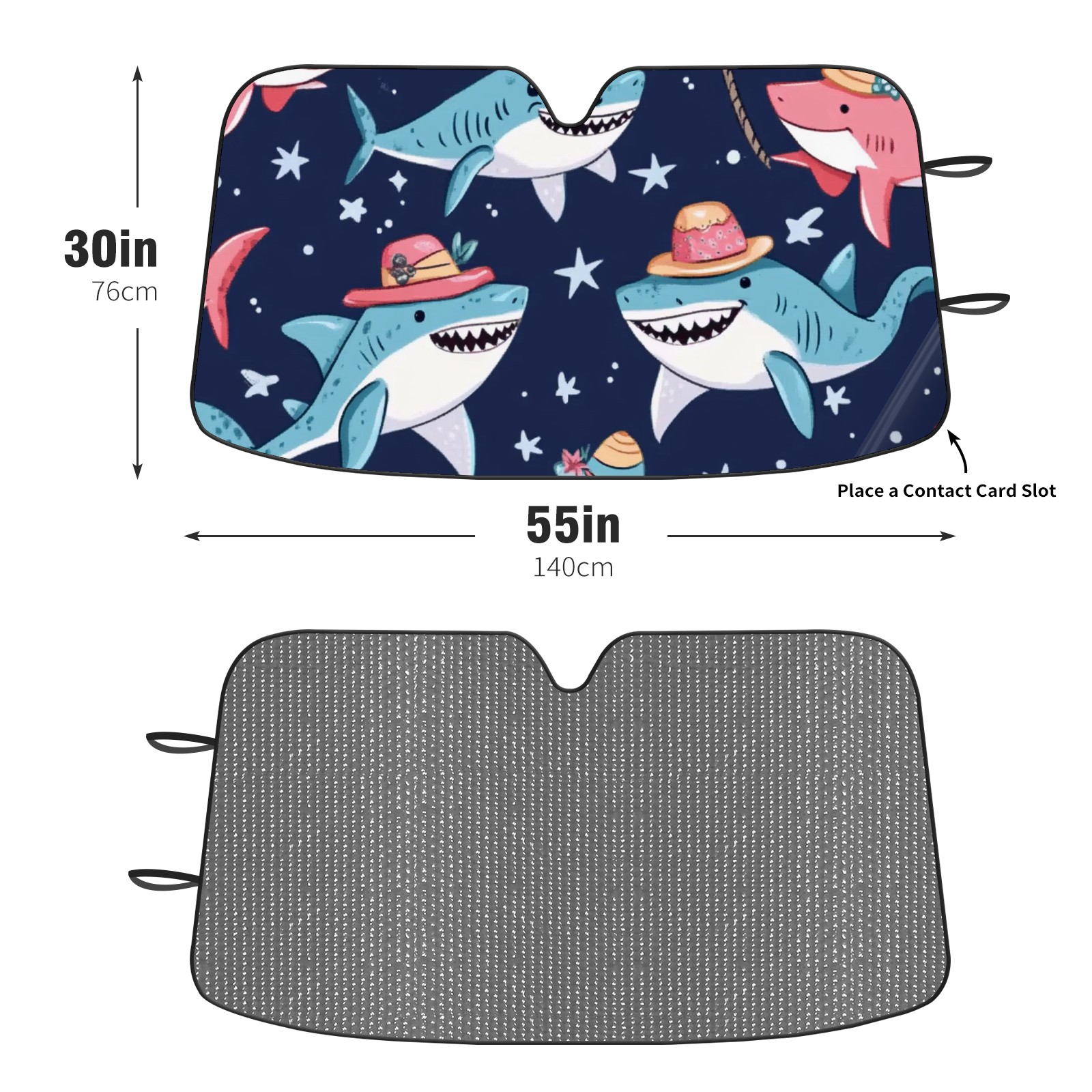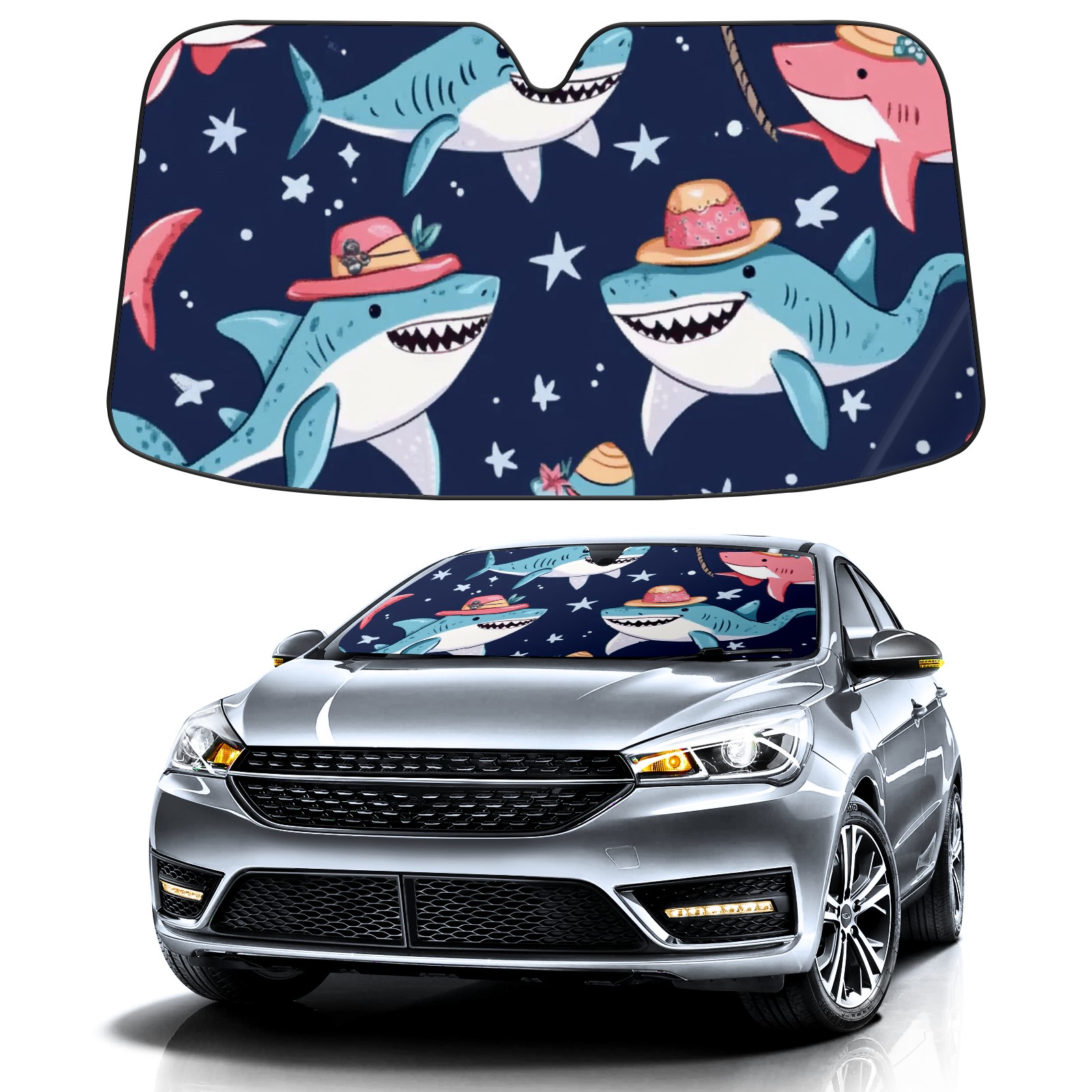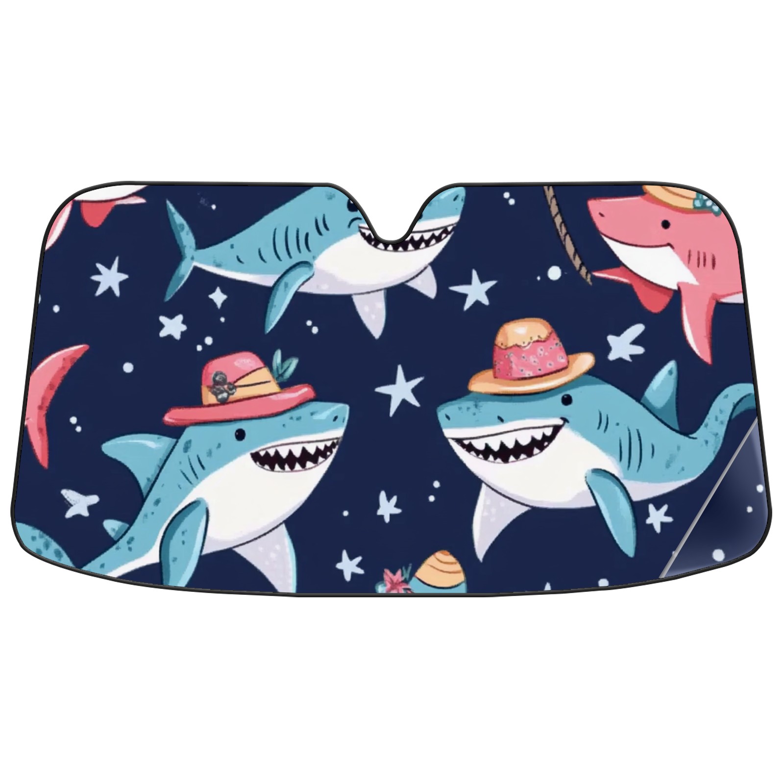 Car Windshield Sun Shade Polyester Car Sunshade Pad, Heat Insulation And Sun Protection Sharks Wearing Hats