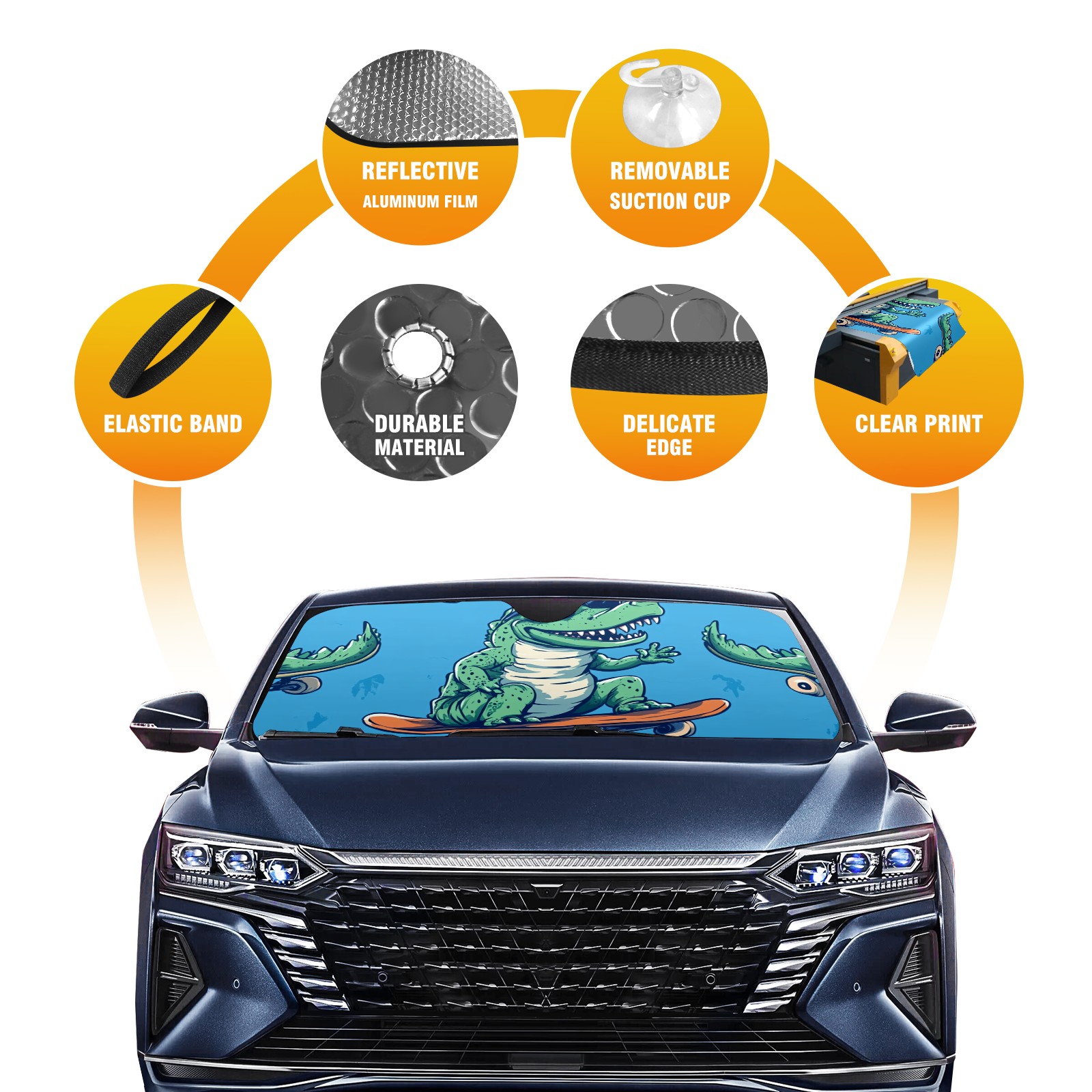 Car Windshield Sun Shade Polyester Car Sunshade Pad, Heat Insulation And Sun Protection Alligator Riding