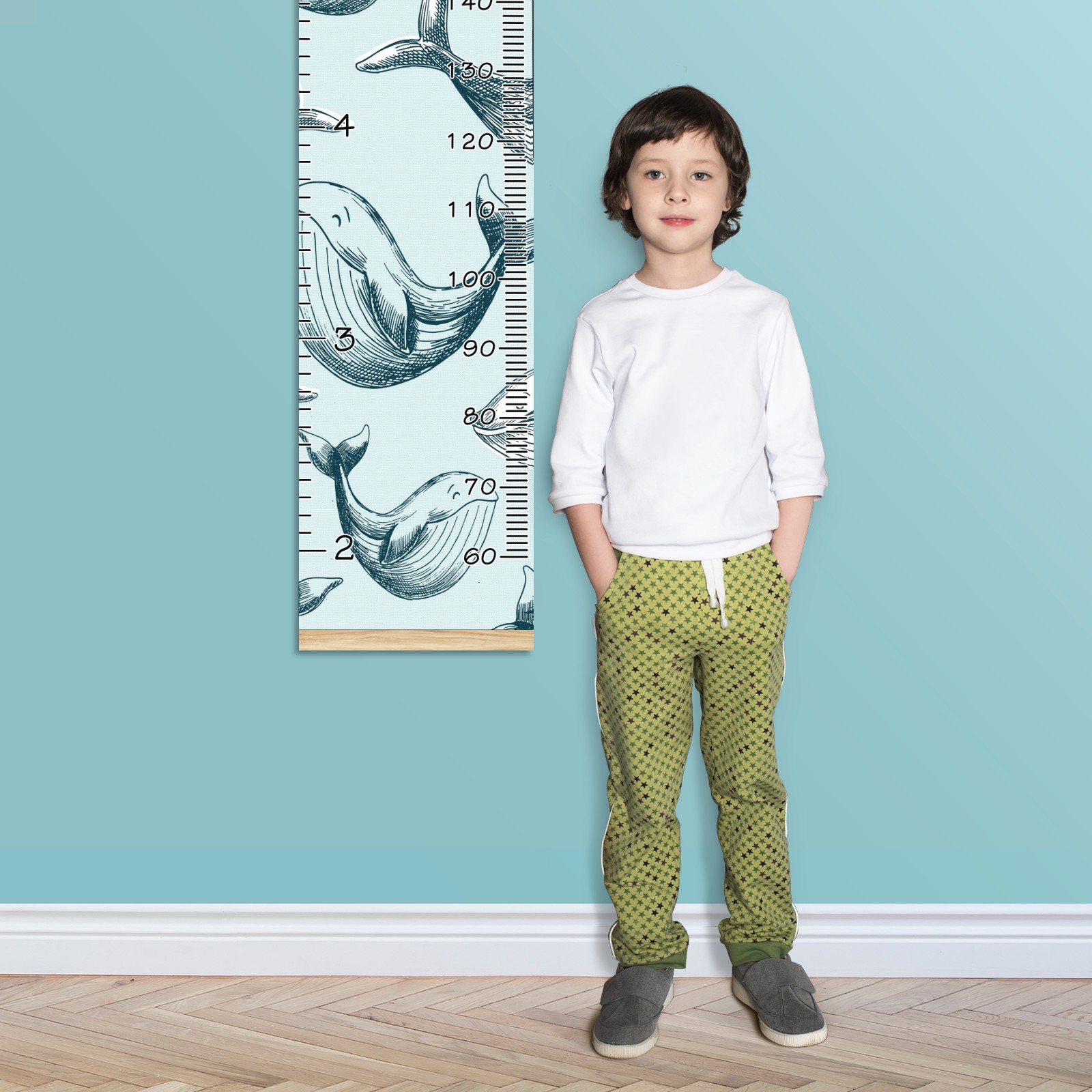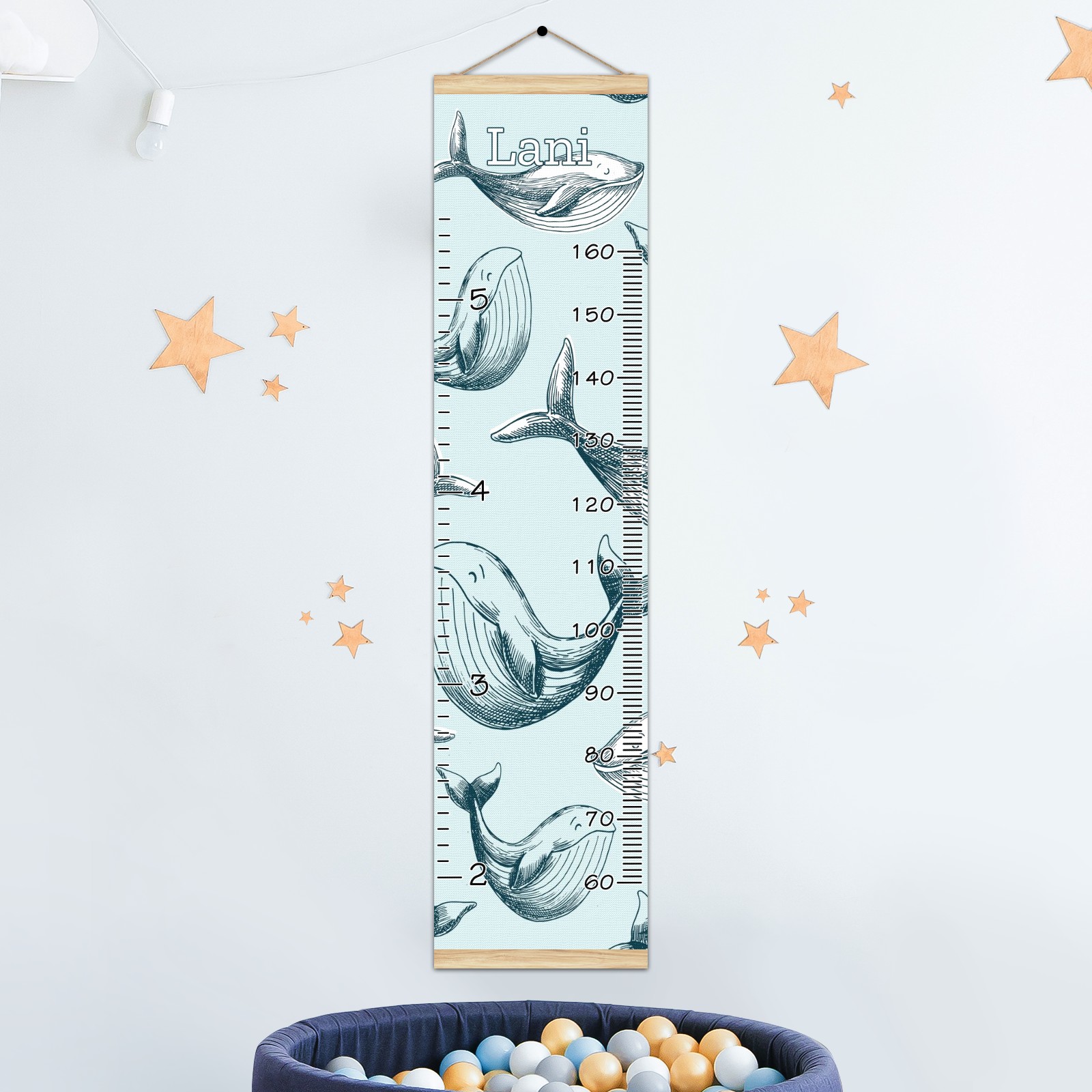 Personalized Kids Name Growth Chart Ruler for Wall Wood Frame Canvas Height Measure Chart 13.4x56 in Hanging Growth Chart Ocean Dolphin Fish6.5 Boys Girls Room Decor