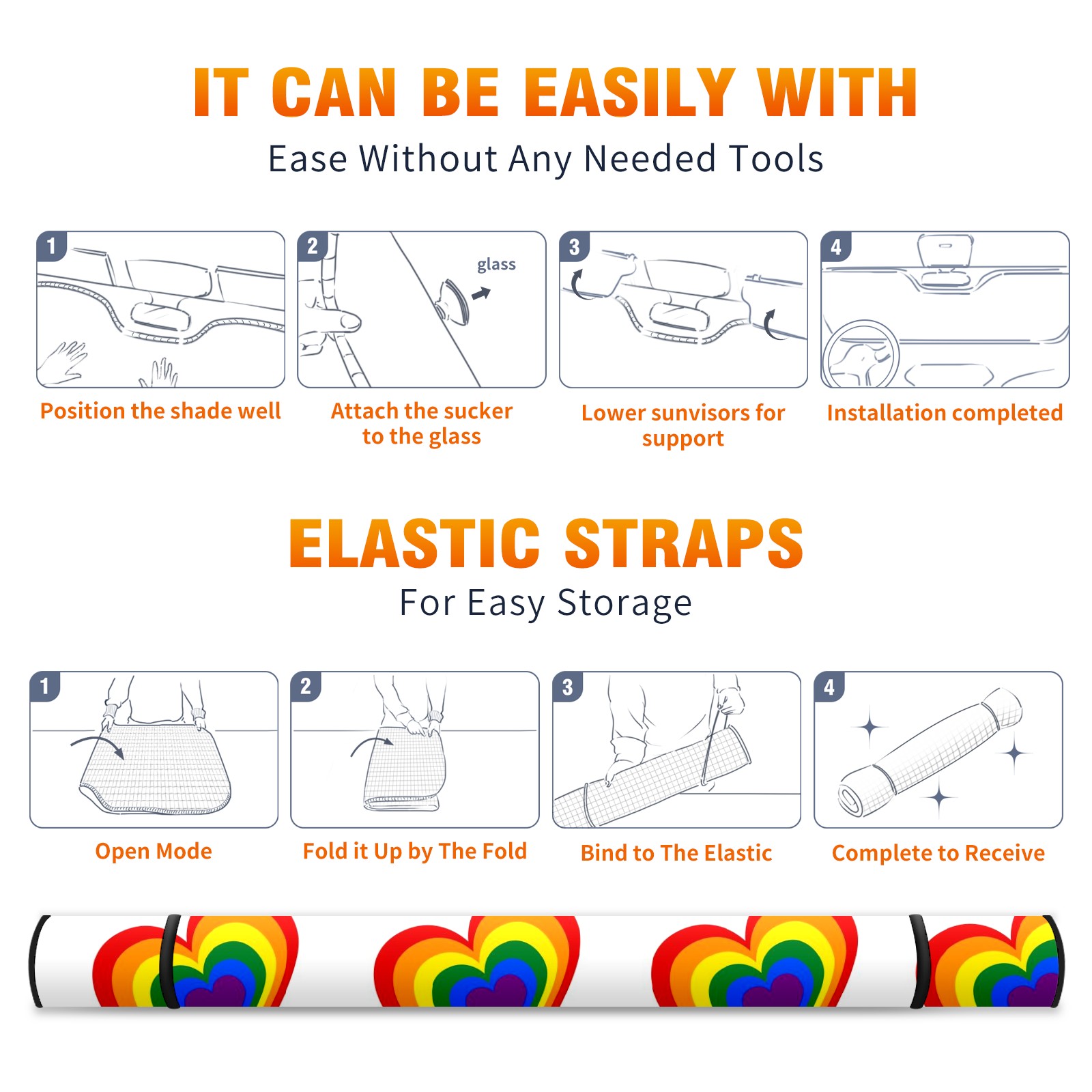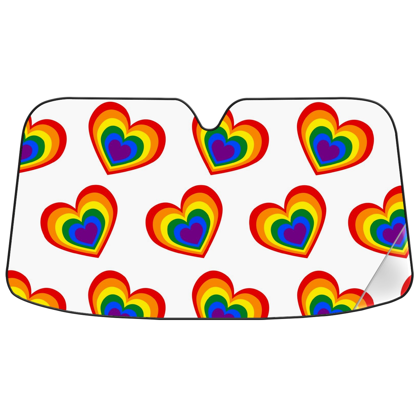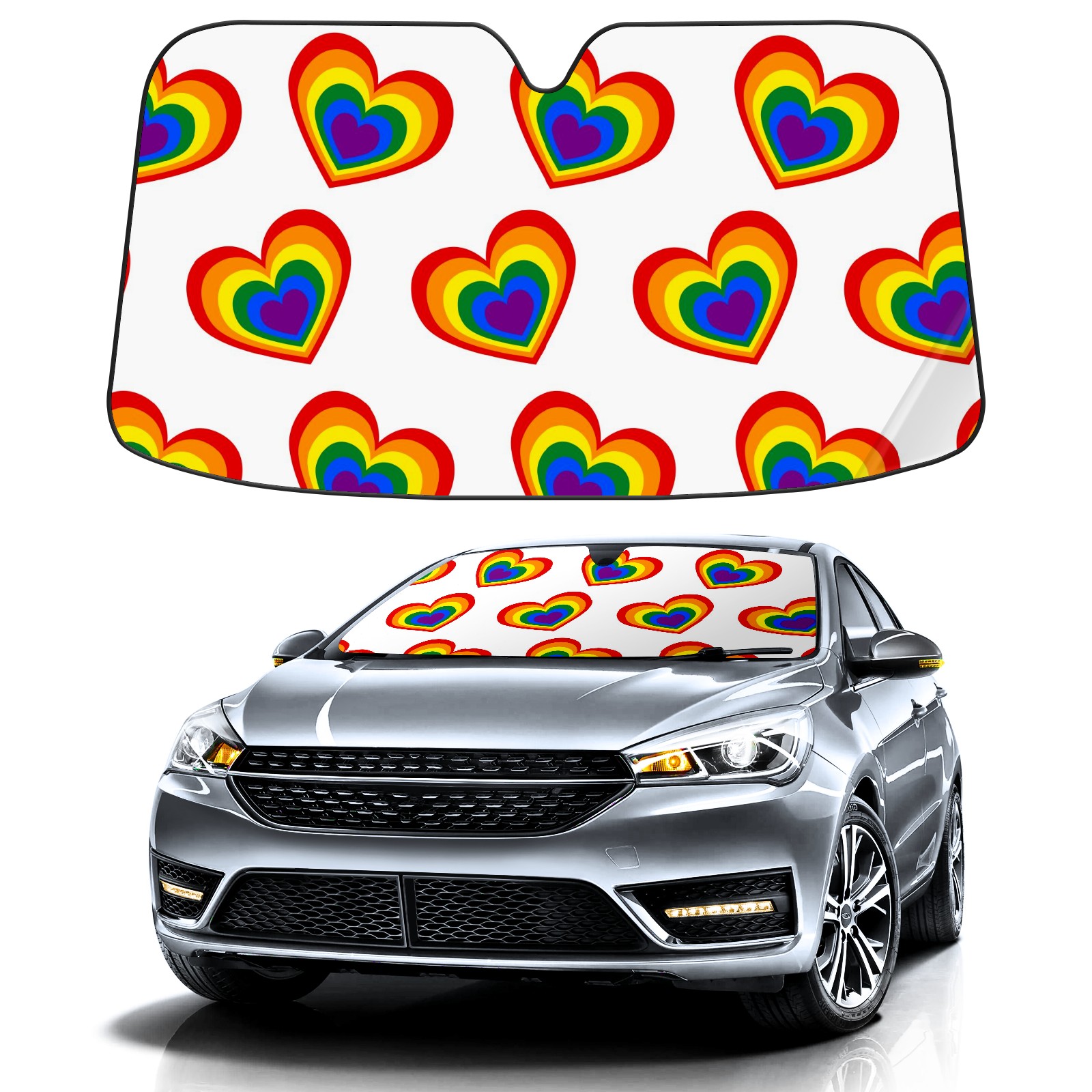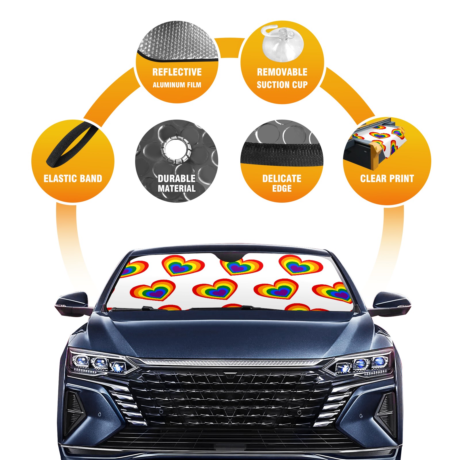 Car Windshield Sun Shade Polyester Car Sunshade Pad, Heat Insulation And Sun Protection Valentine's Day Rainbow Heart