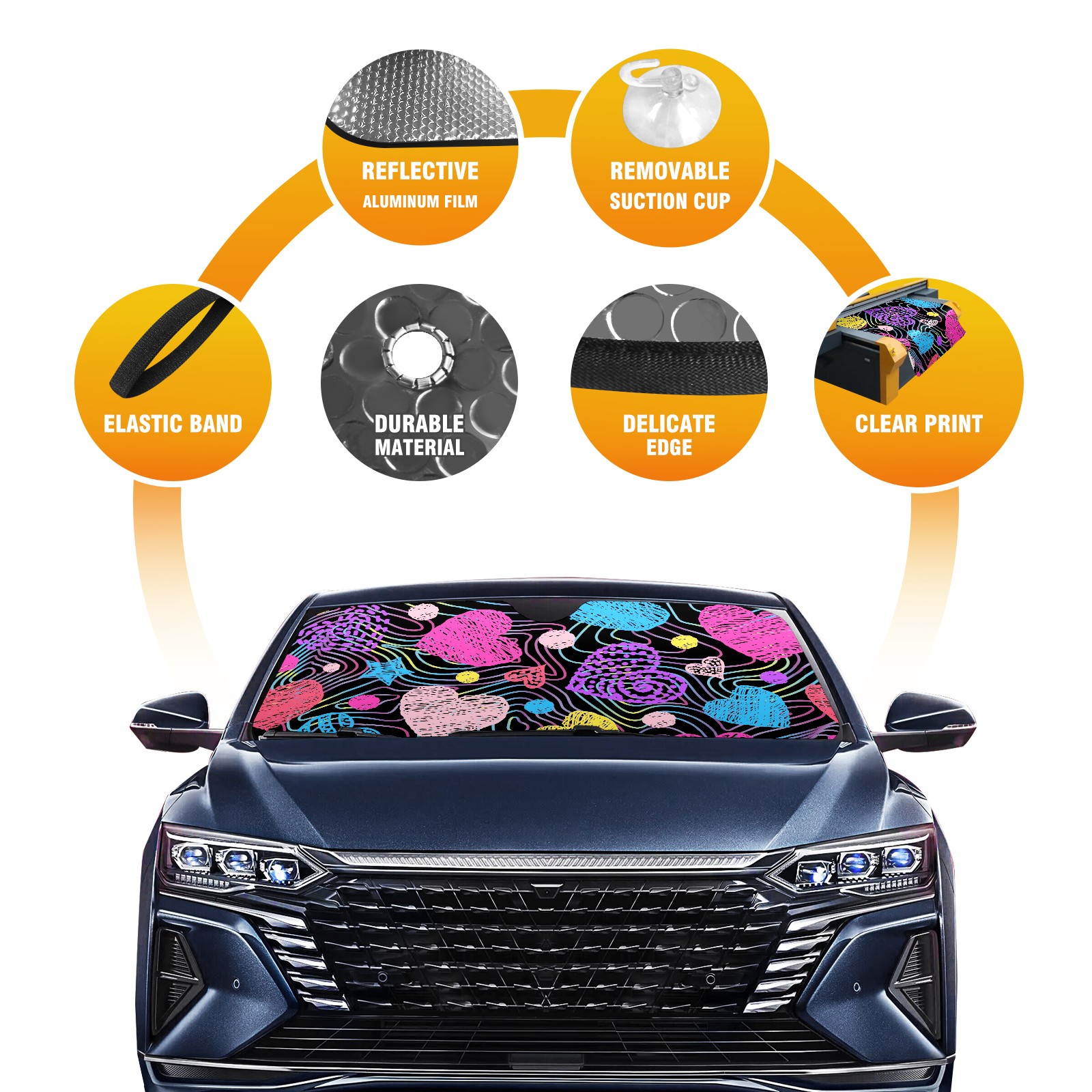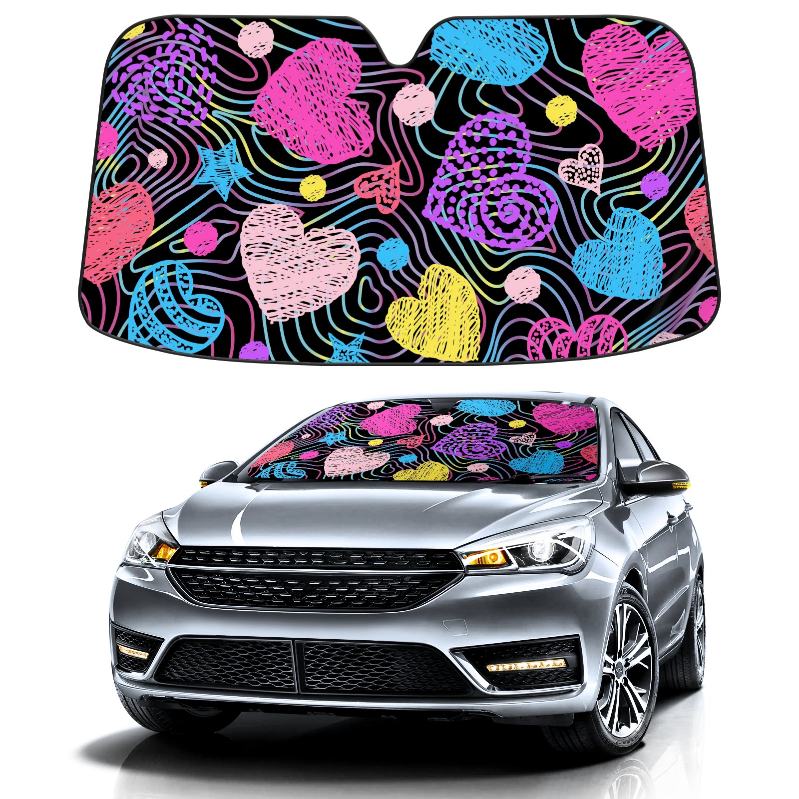Car Windshield Sun Shade Polyester Car Sunshade Pad, Heat Insulation And Sun Protection Valentine's Day Heart (1)