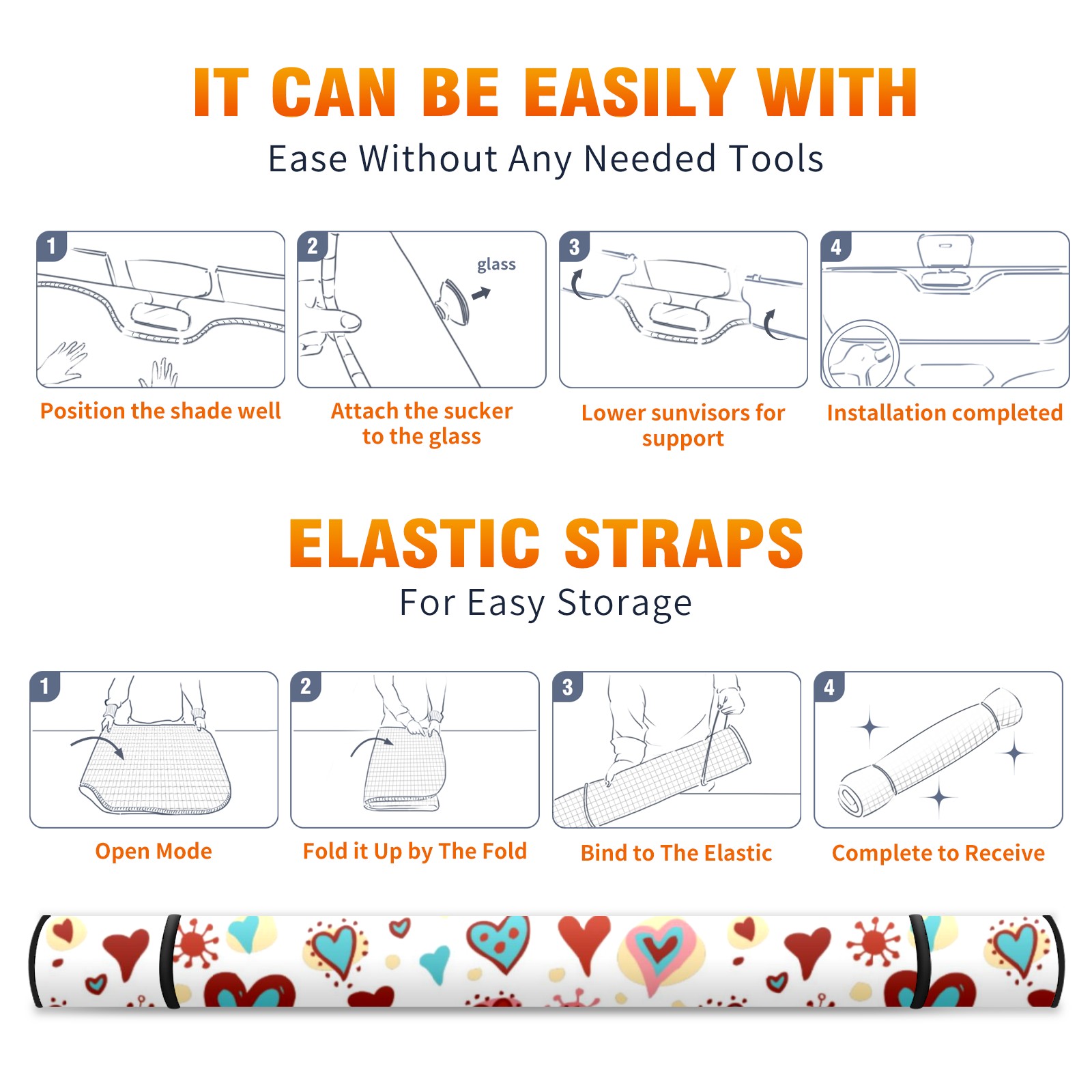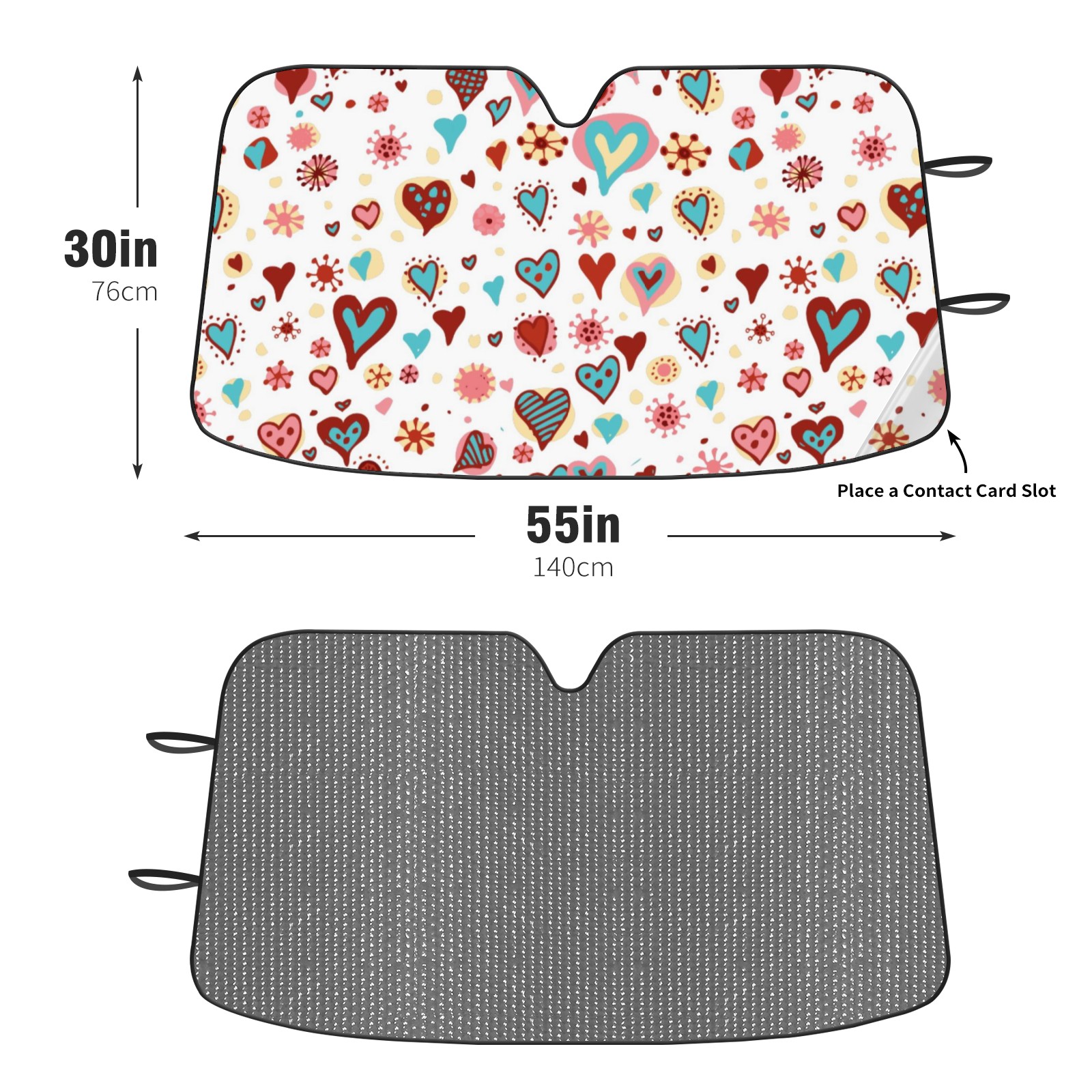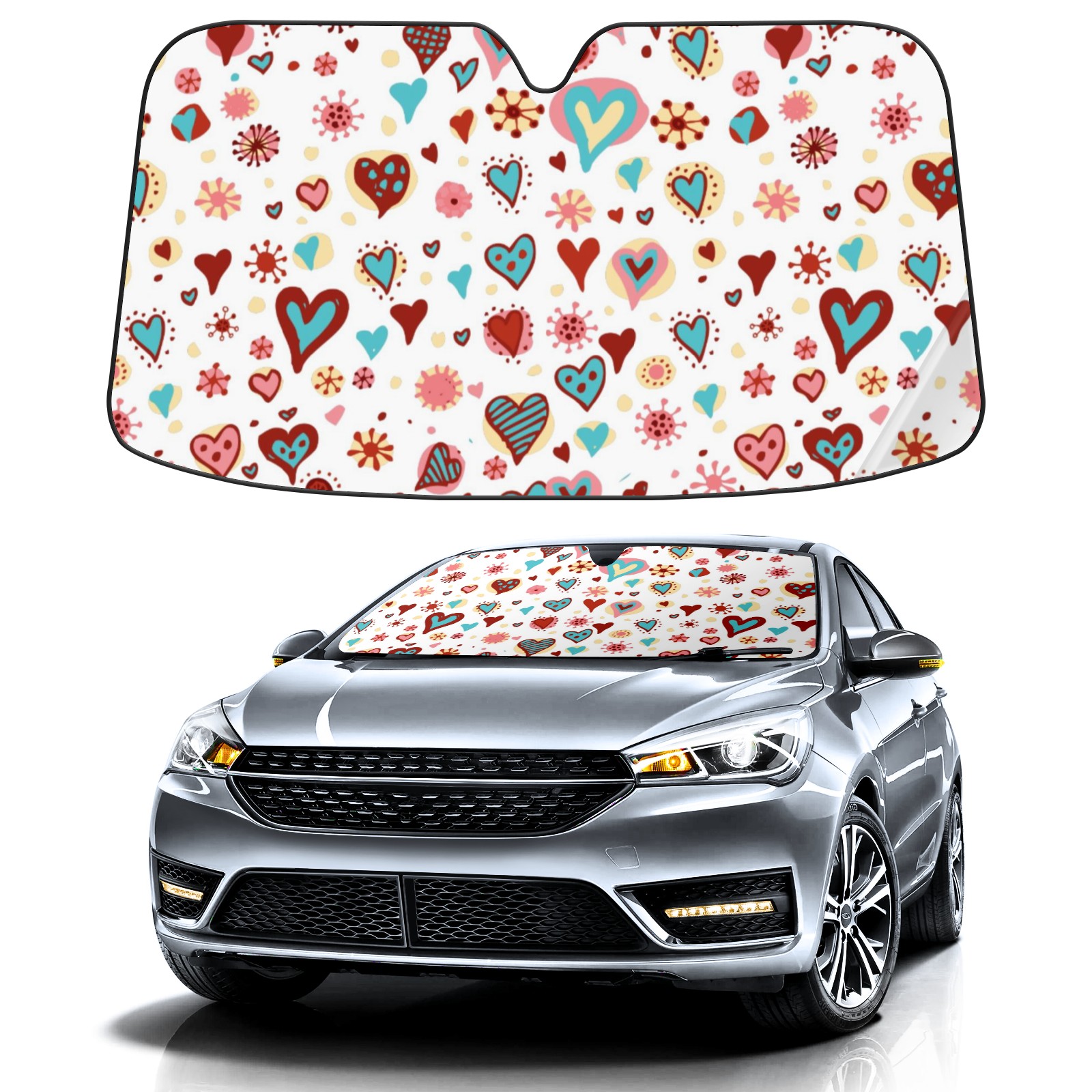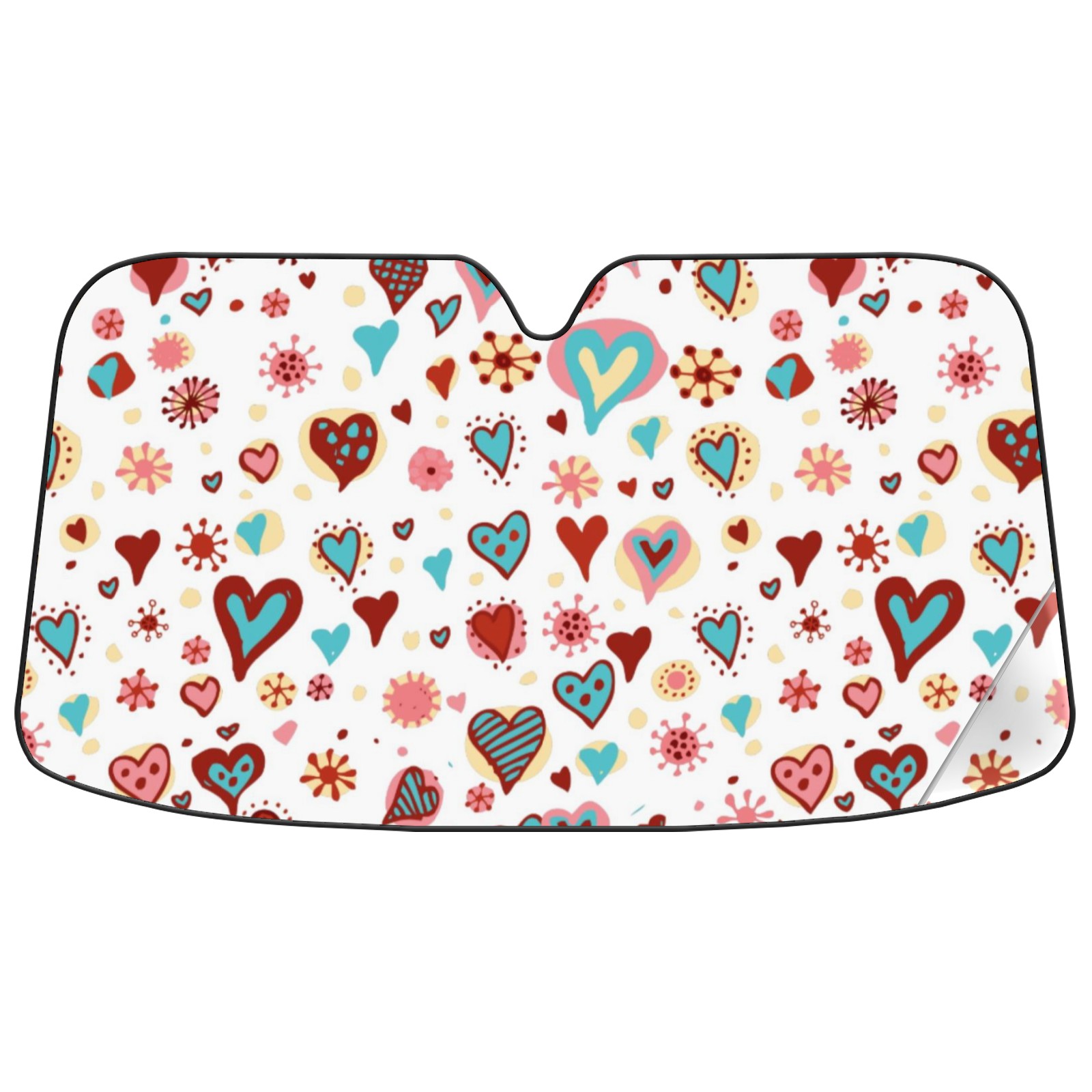 Car Windshield Sun Shade Polyester Car Sunshade Pad, Heat Insulation And Sun Protection Cute Cartoon Colorful Valentines Hearts Pattern