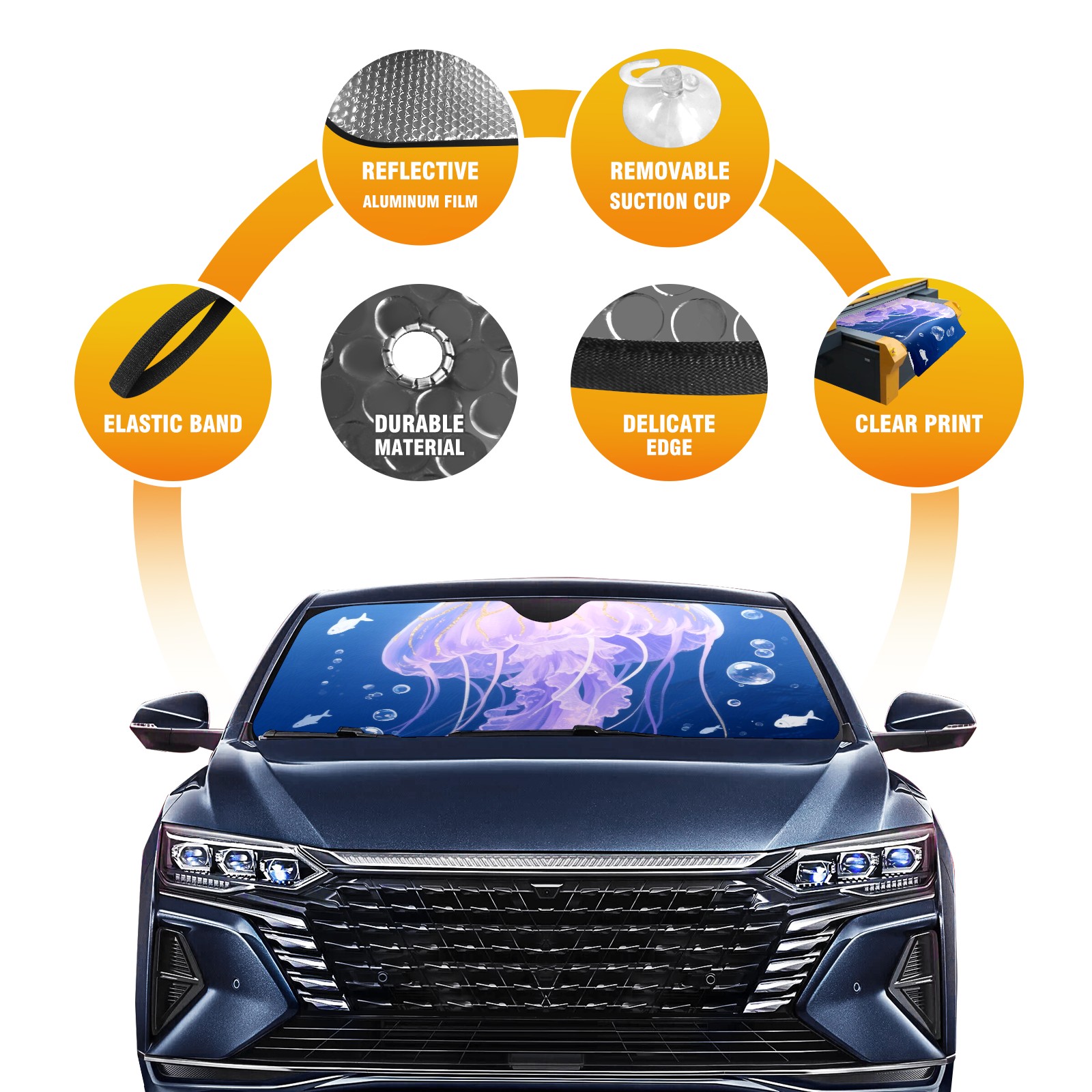 <p>This car sunshade pad is made of a high-quality combination of aluminum foil and polyester, reinforced with transparent adhesive. It measures 140x76cm (55inx30in) and is a practical choice for protecting your car. Its powerful UV protection function can effectively block harmful light, prevent the car interior from aging due to exposure to sunlight, and maintain the dashboard, steering wheel, and seats in a brand new state.<br></p>