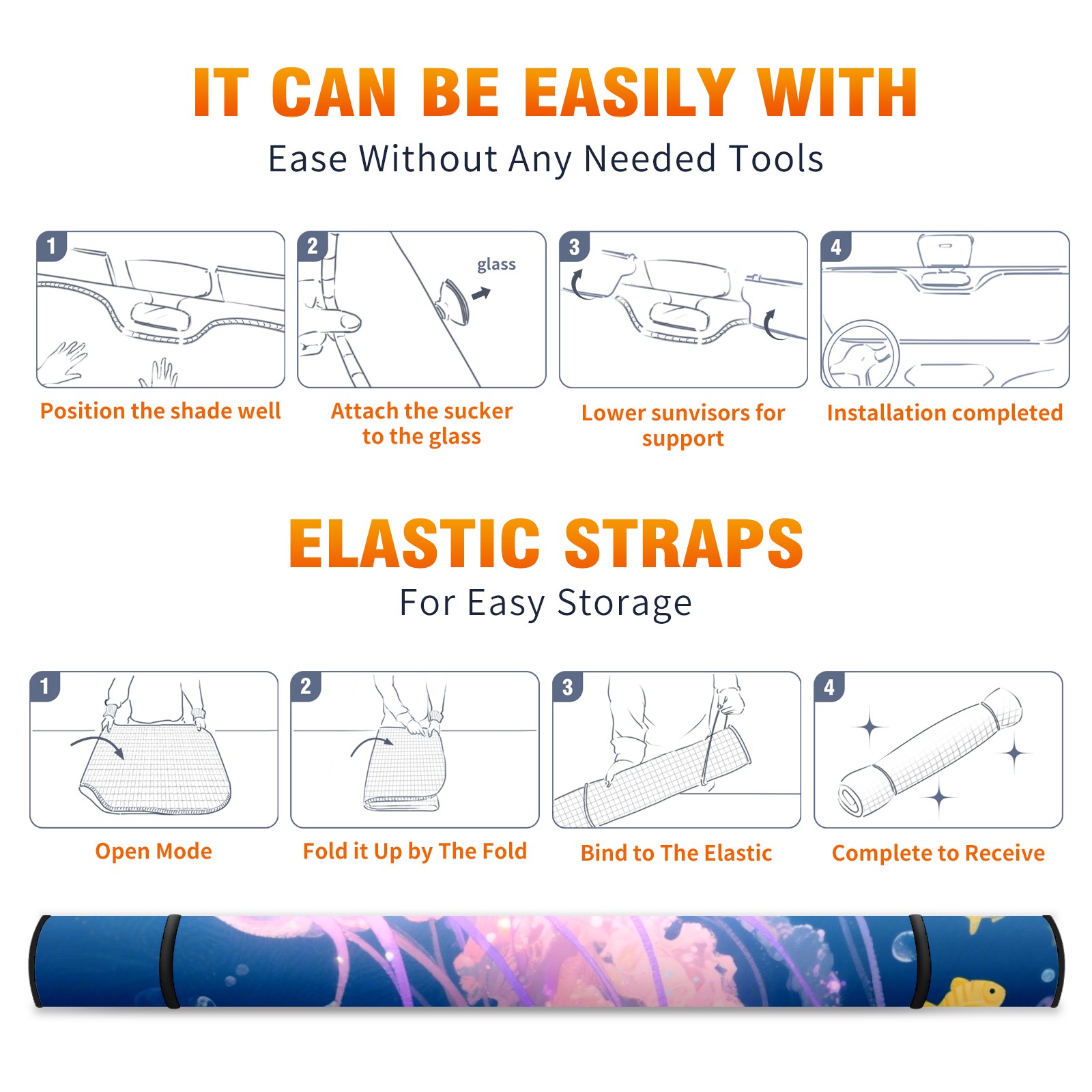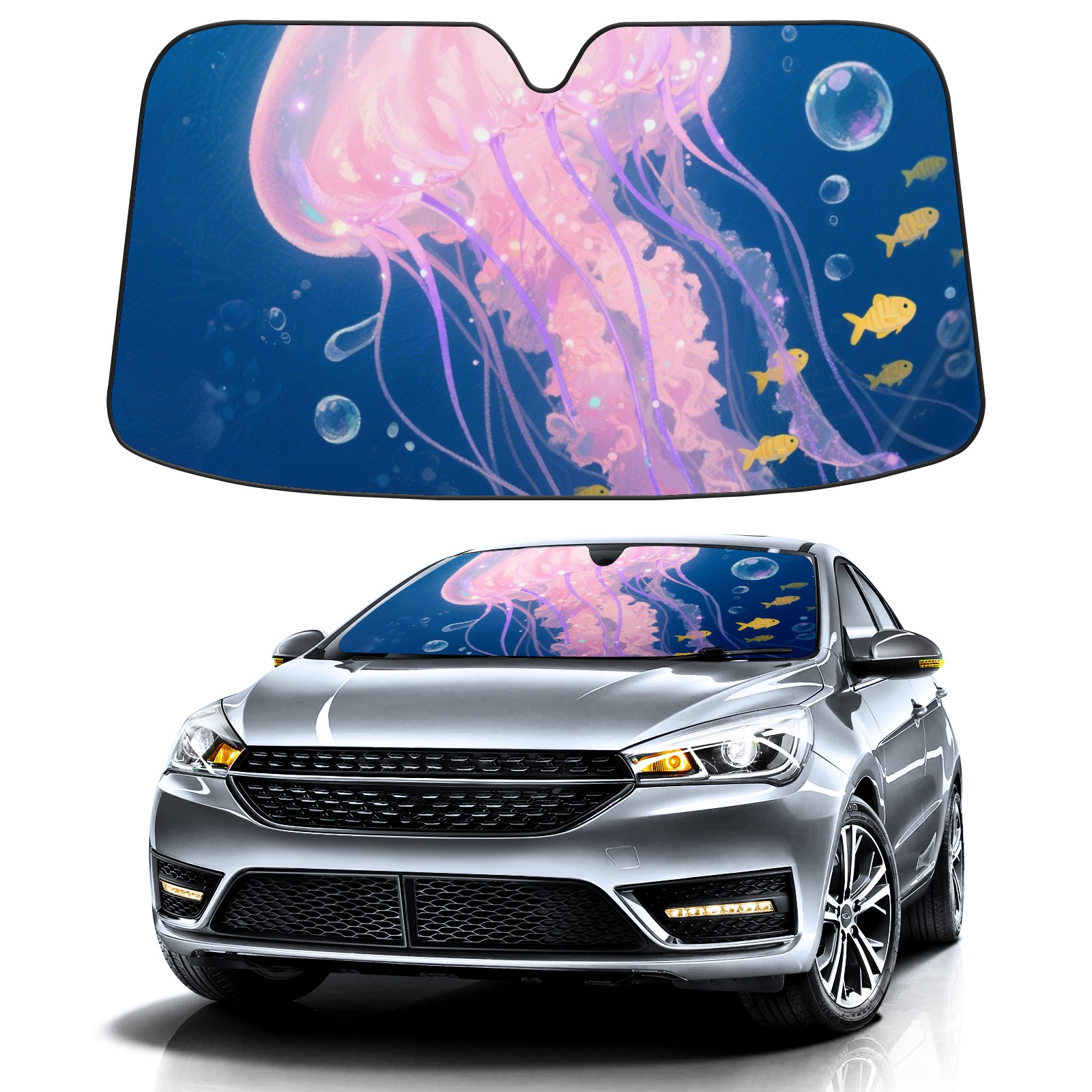 Car Windshield Sun Shade Polyester Car Sunshade Pad, Heat Insulation And Sun Protection Pink Jellyfish