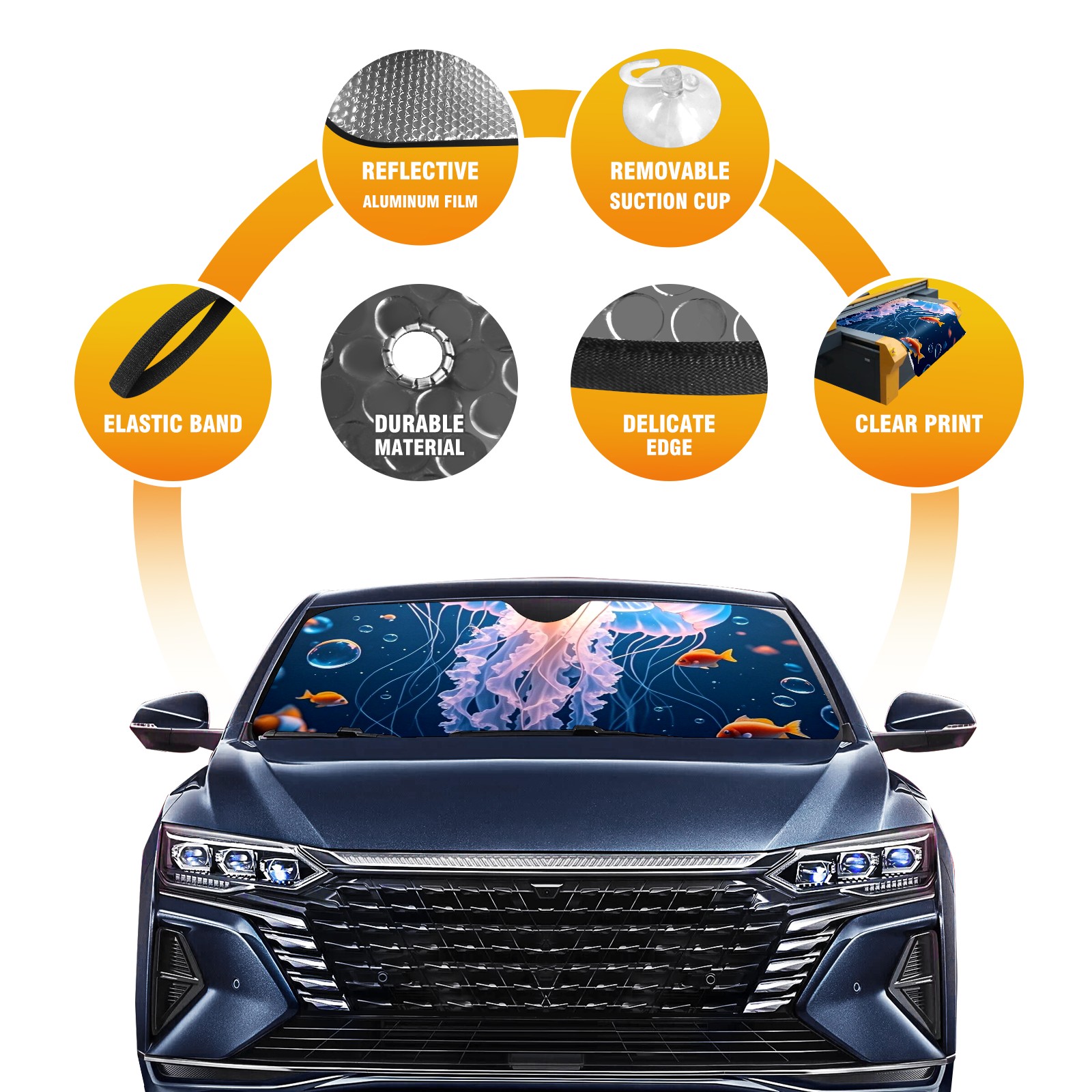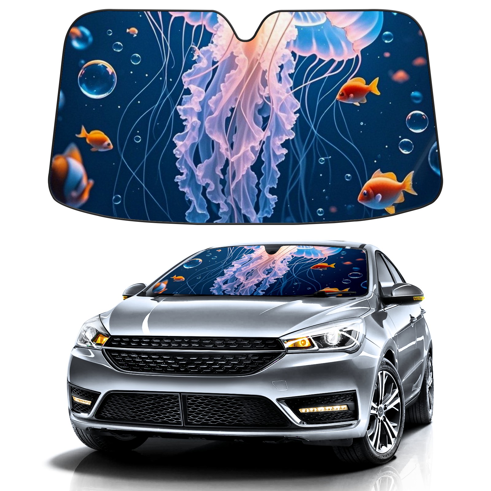 Car Windshield Sun Shade Polyester Car Sunshade Pad, Heat Insulation And Sun Protection Jellyfish5