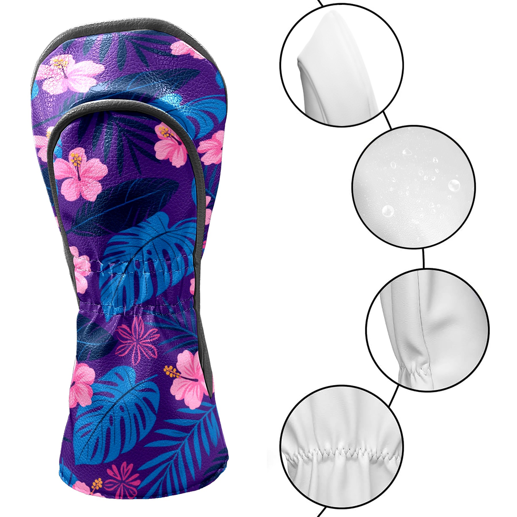 Golf Head Covers Driver Club Head Cover for Drivers Fairway Woods and Hybrid Clubs, PU Leather Golf Club Head Covers for Men and Women Leaf