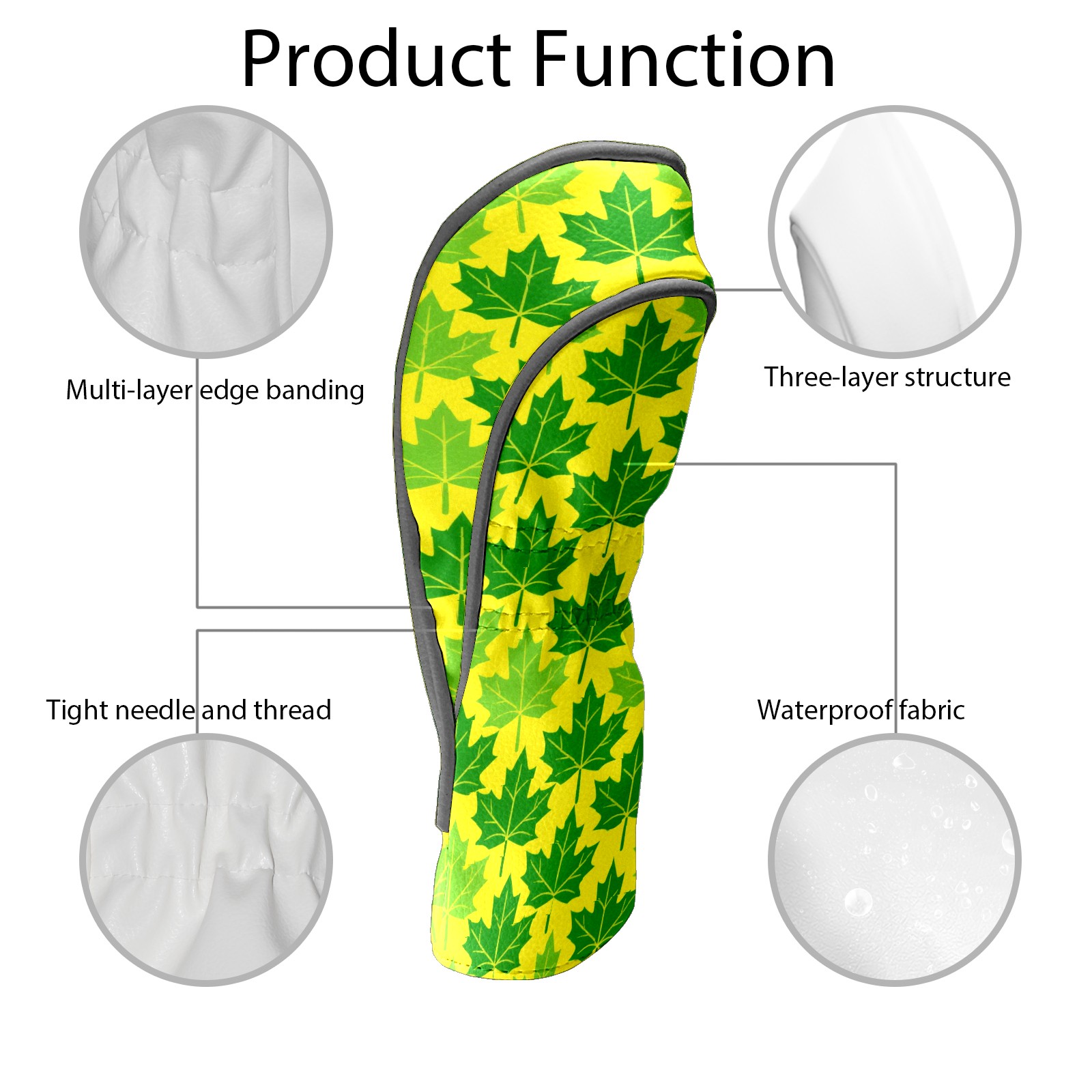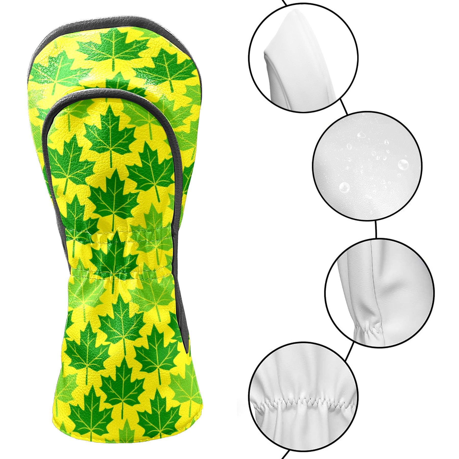 Golf Head Covers Driver Club Head Cover for Drivers Fairway Woods and Hybrid Clubs, PU Leather Golf Club Head Covers for Men and Women Maple Leaf