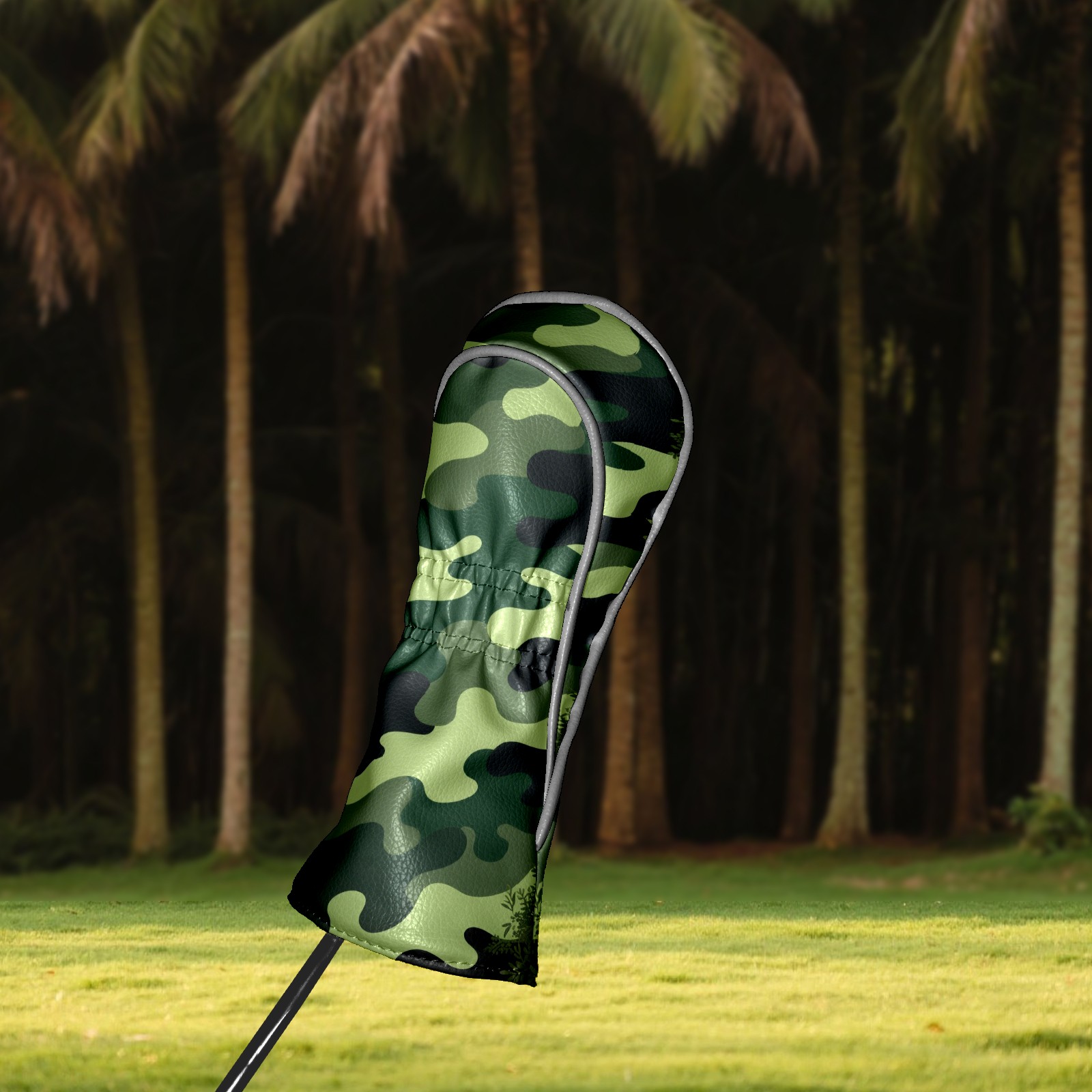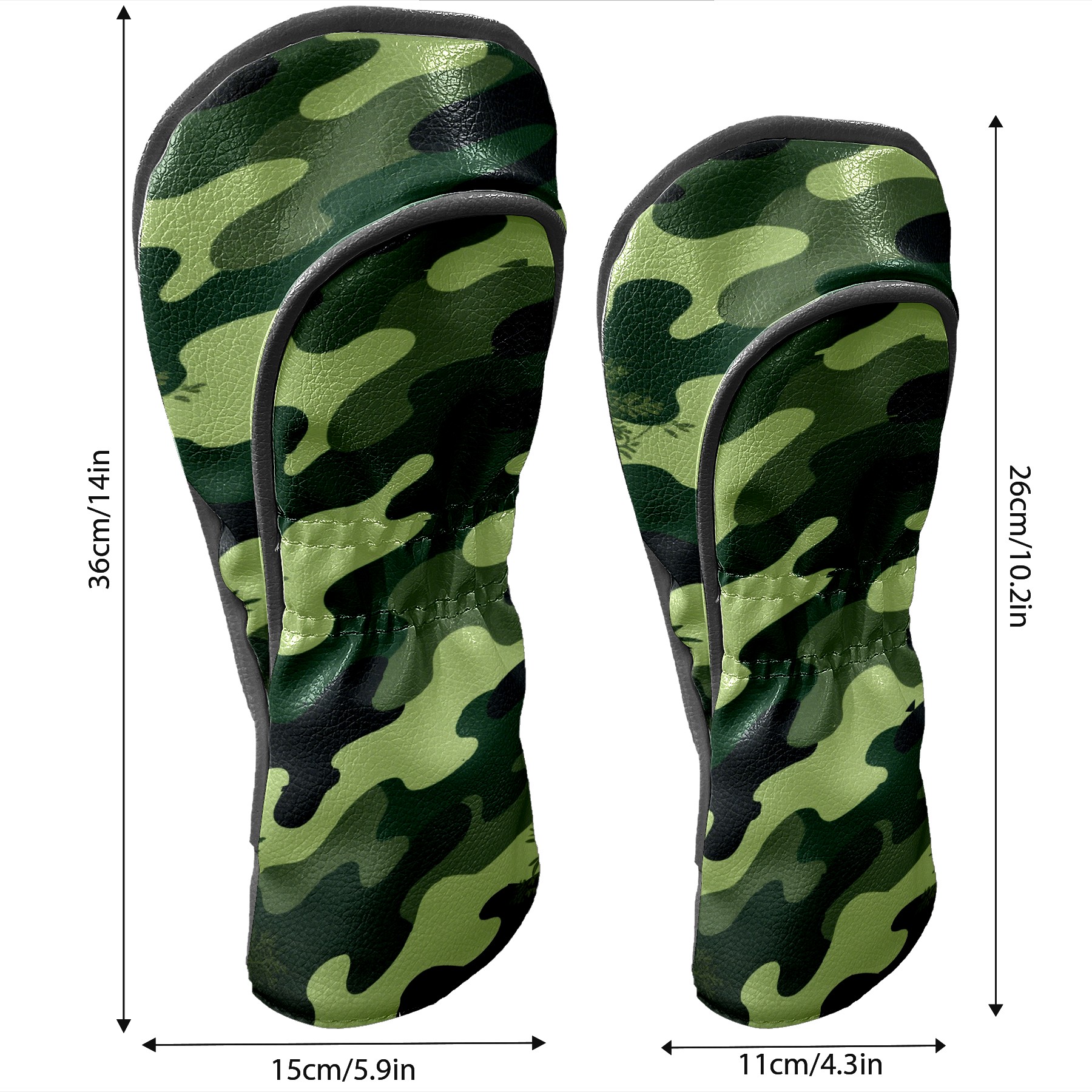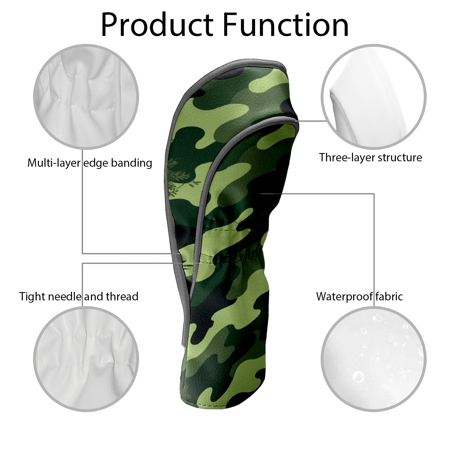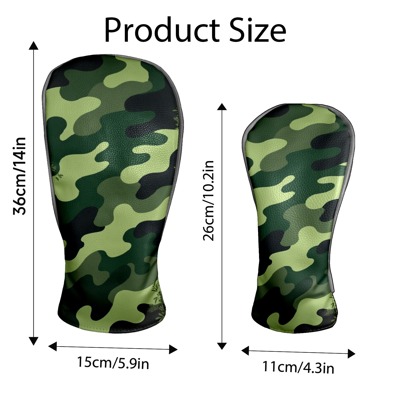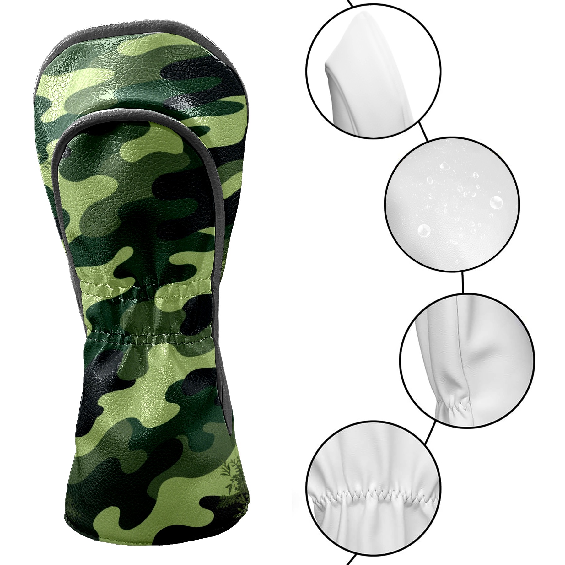 Golf Head Covers Driver Club Head Cover for Drivers Fairway Woods and Hybrid Clubs, PU Leather Golf Club Head Covers for Men and Women Green Camouflage