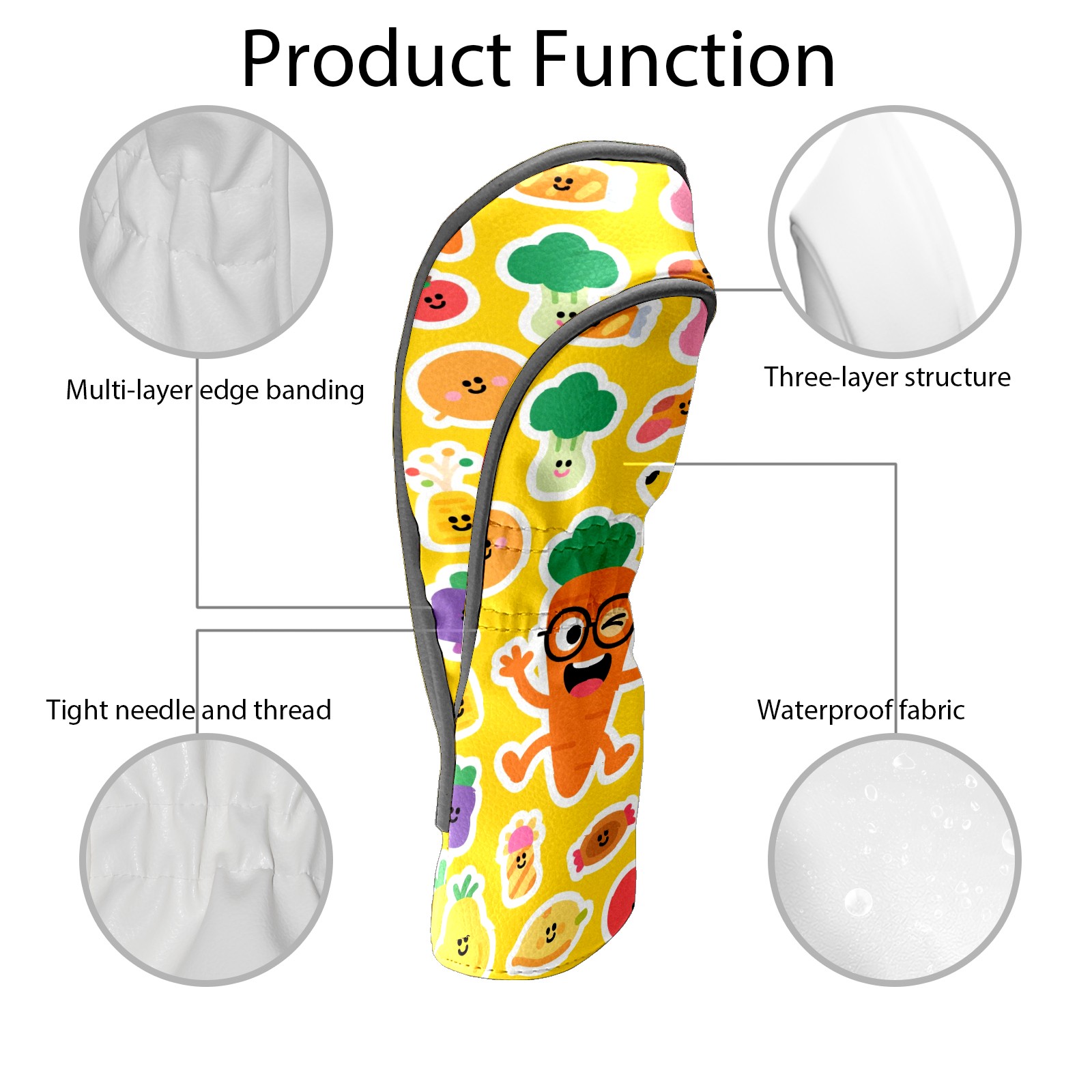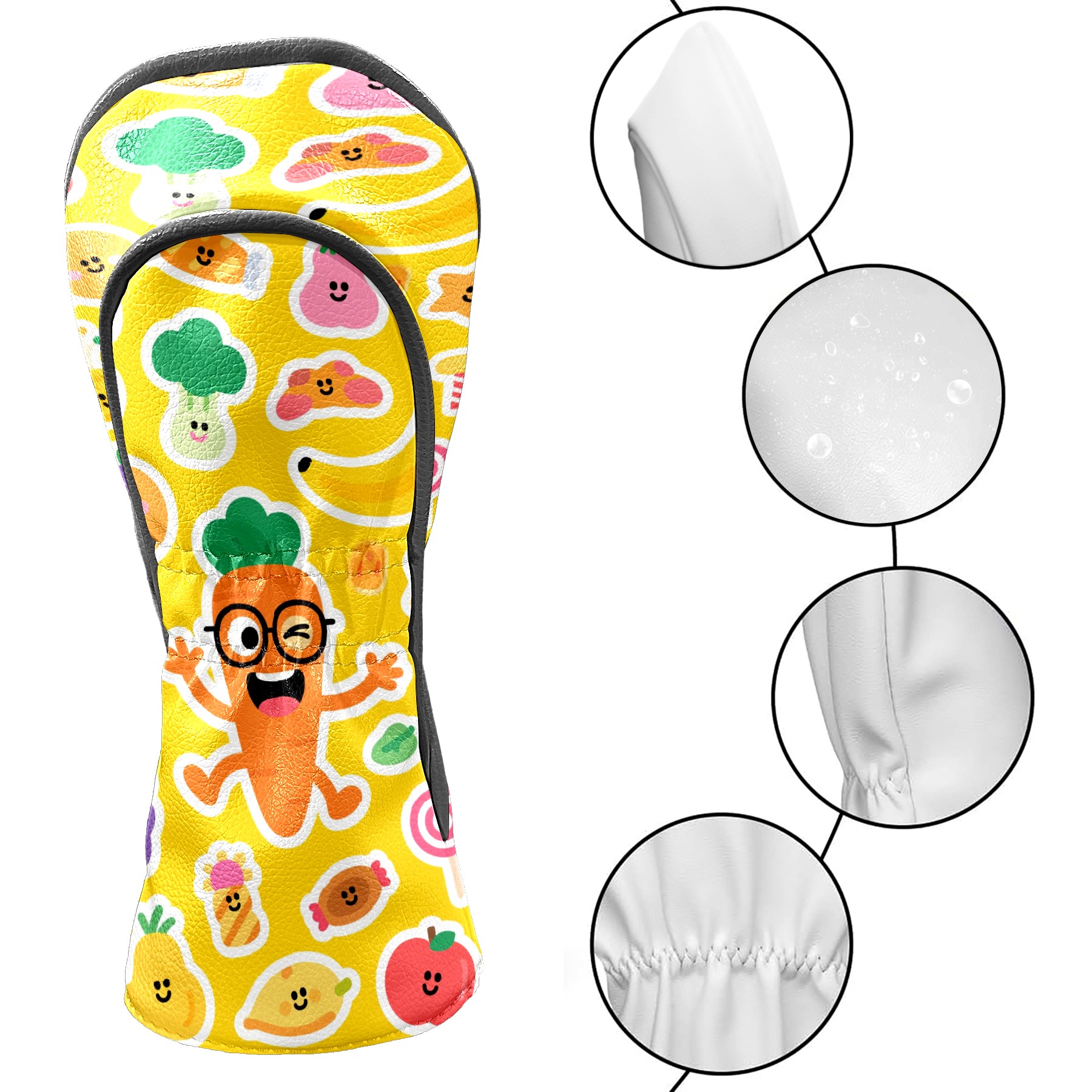 Golf Head Covers Driver Club Head Cover for Drivers Fairway Woods and Hybrid Clubs, PU Leather Golf Club Head Covers for Men and Women Food