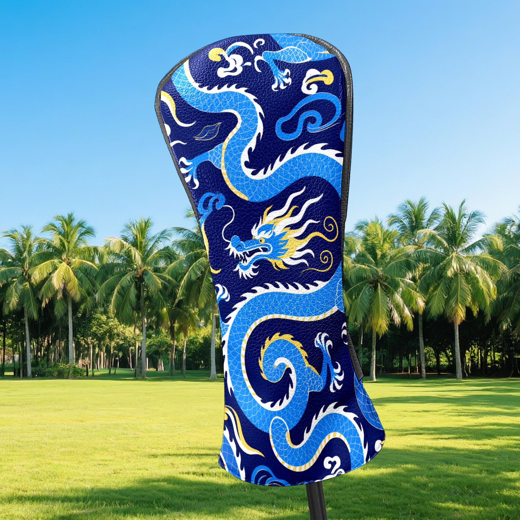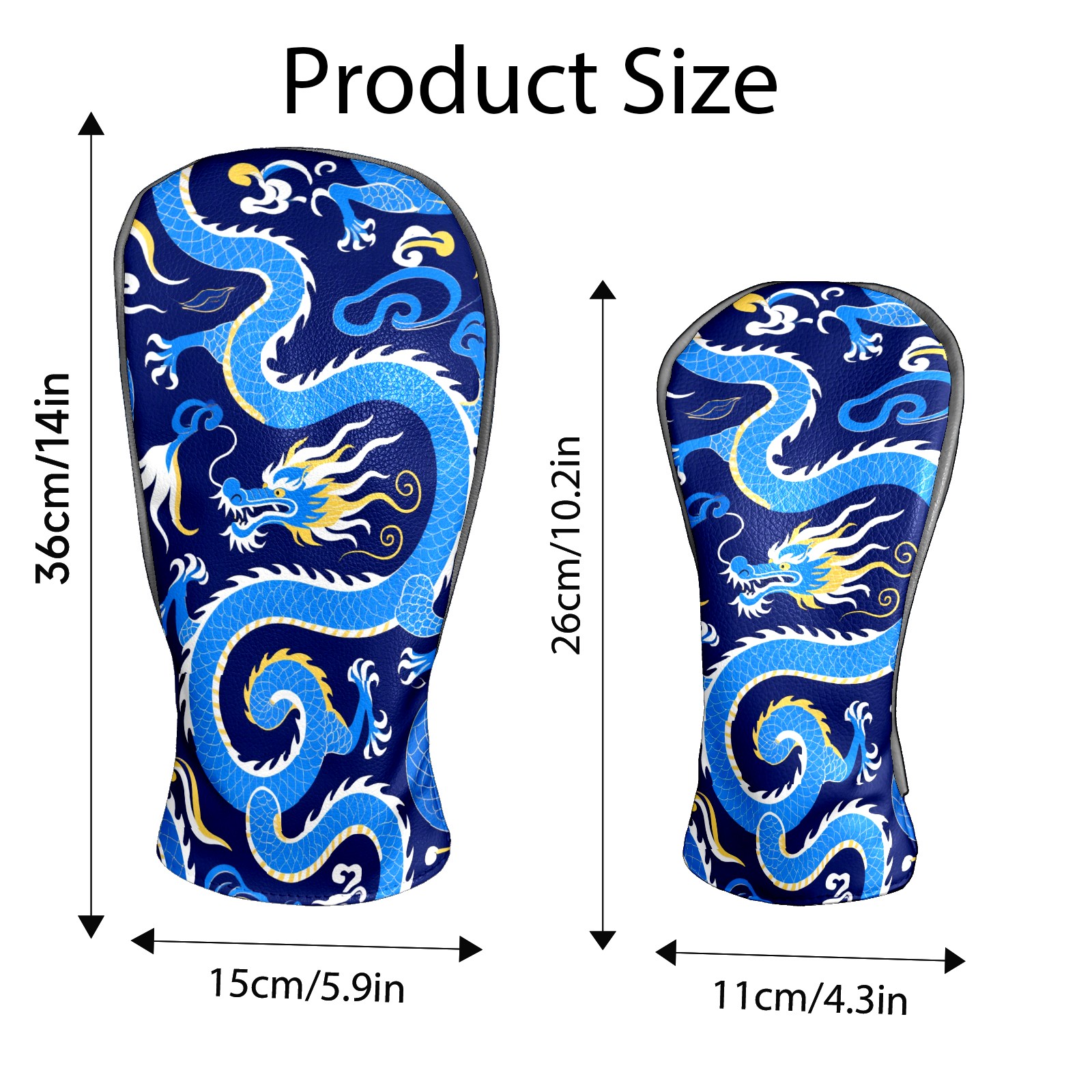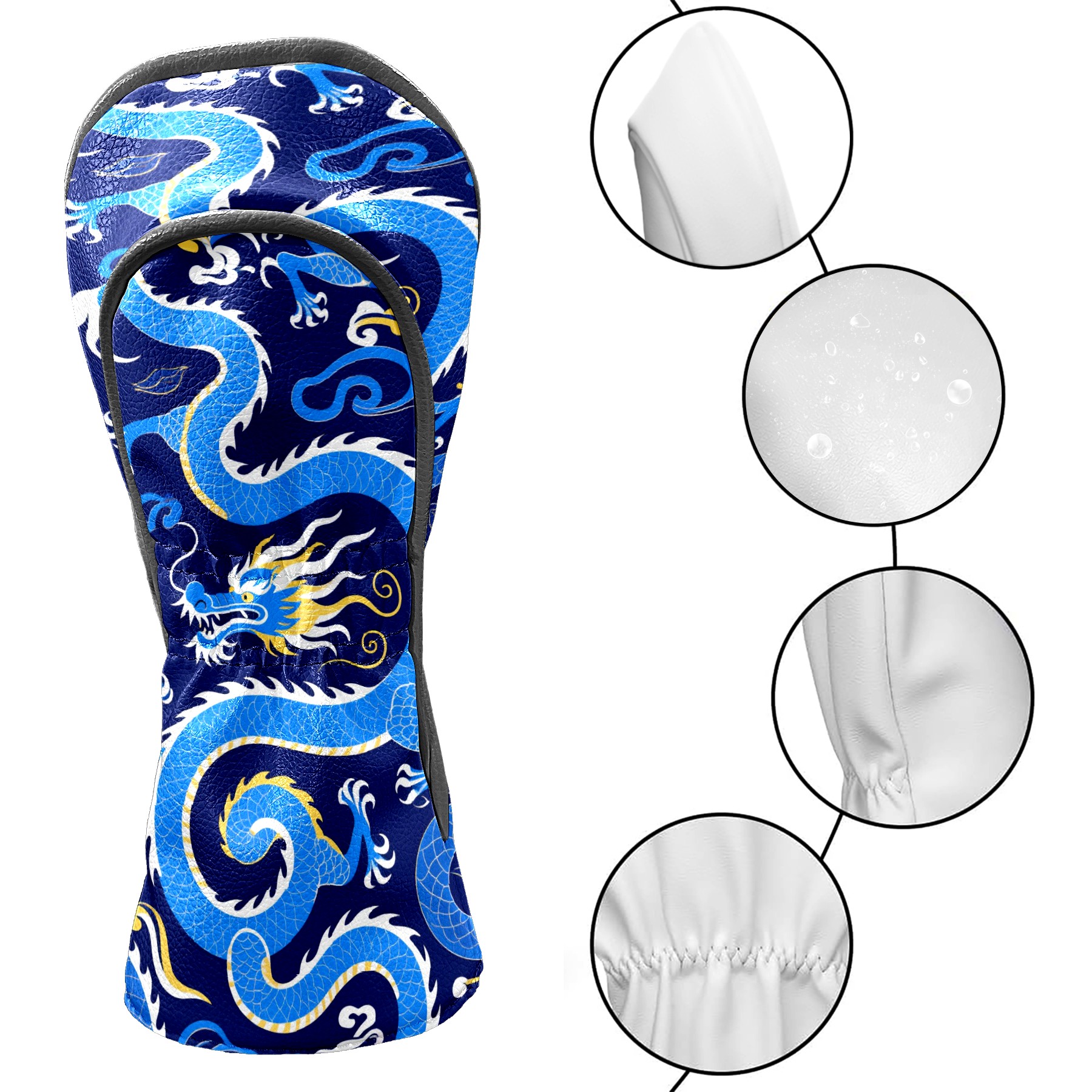 Golf Head Covers Driver Club Head Cover for Drivers Fairway Woods and Hybrid Clubs, PU Leather Golf Club Head Covers for Men and Women Dragon