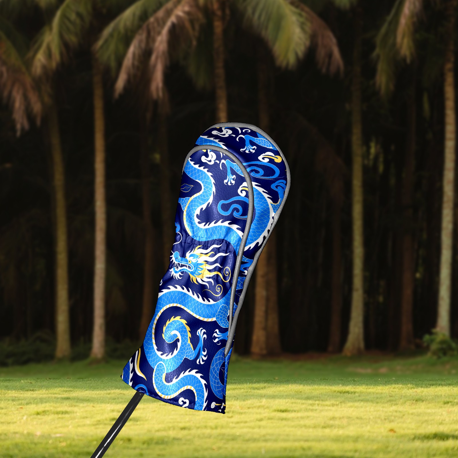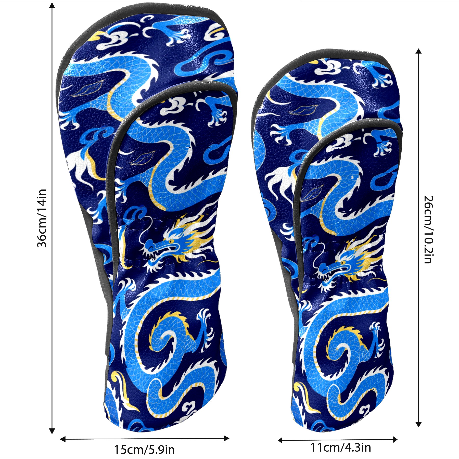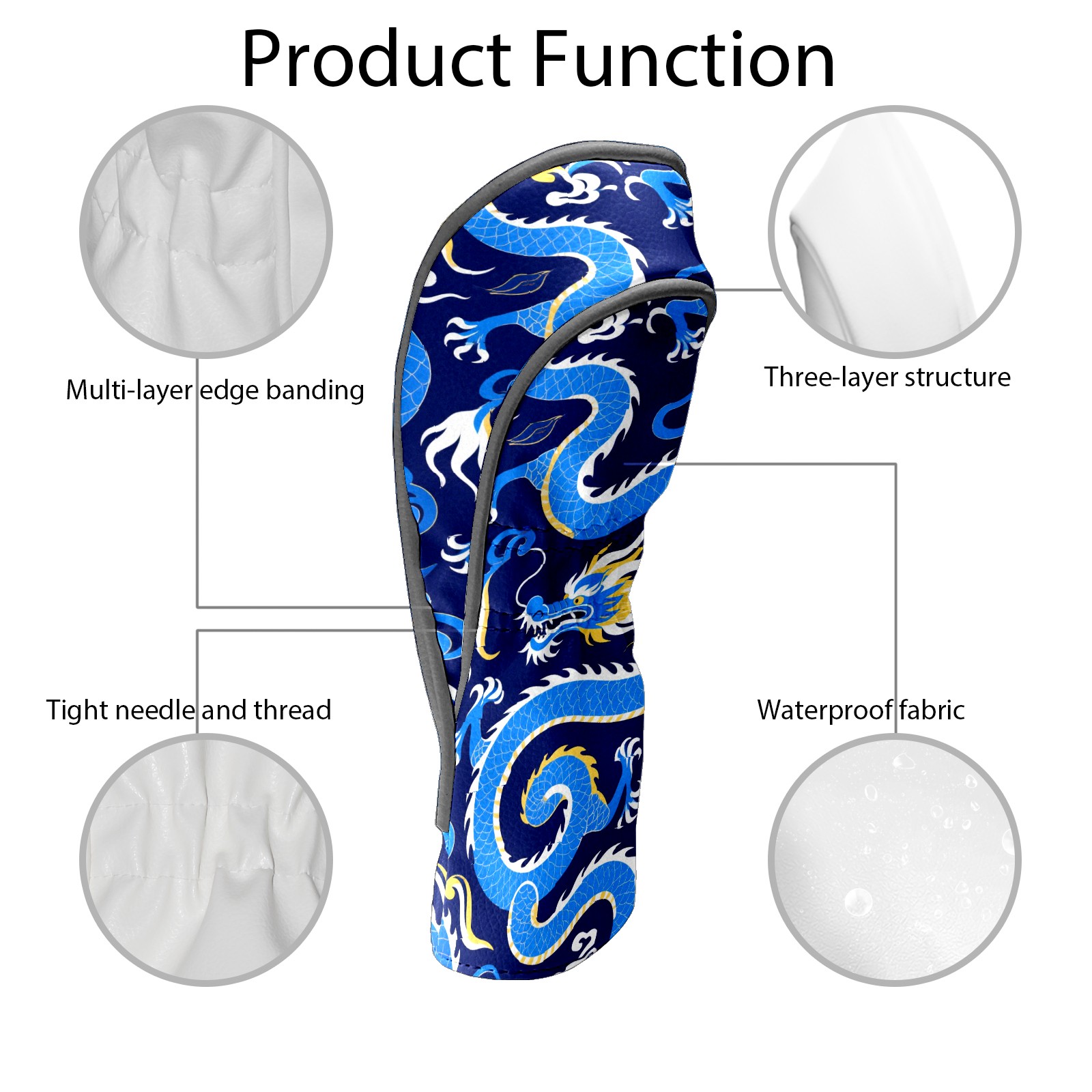 Golf Head Covers Driver Club Head Cover for Drivers Fairway Woods and Hybrid Clubs, PU Leather Golf Club Head Covers for Men and Women Dragon