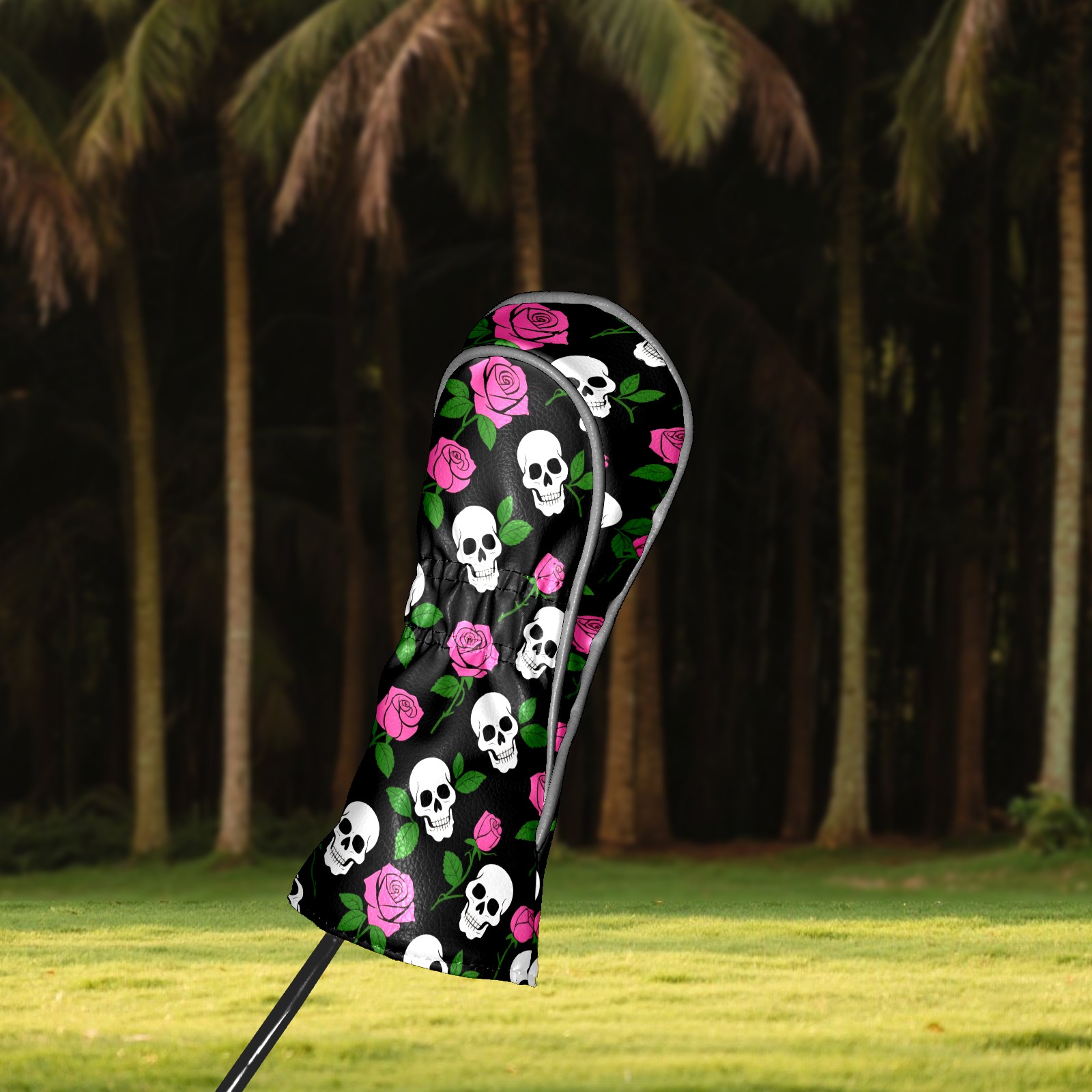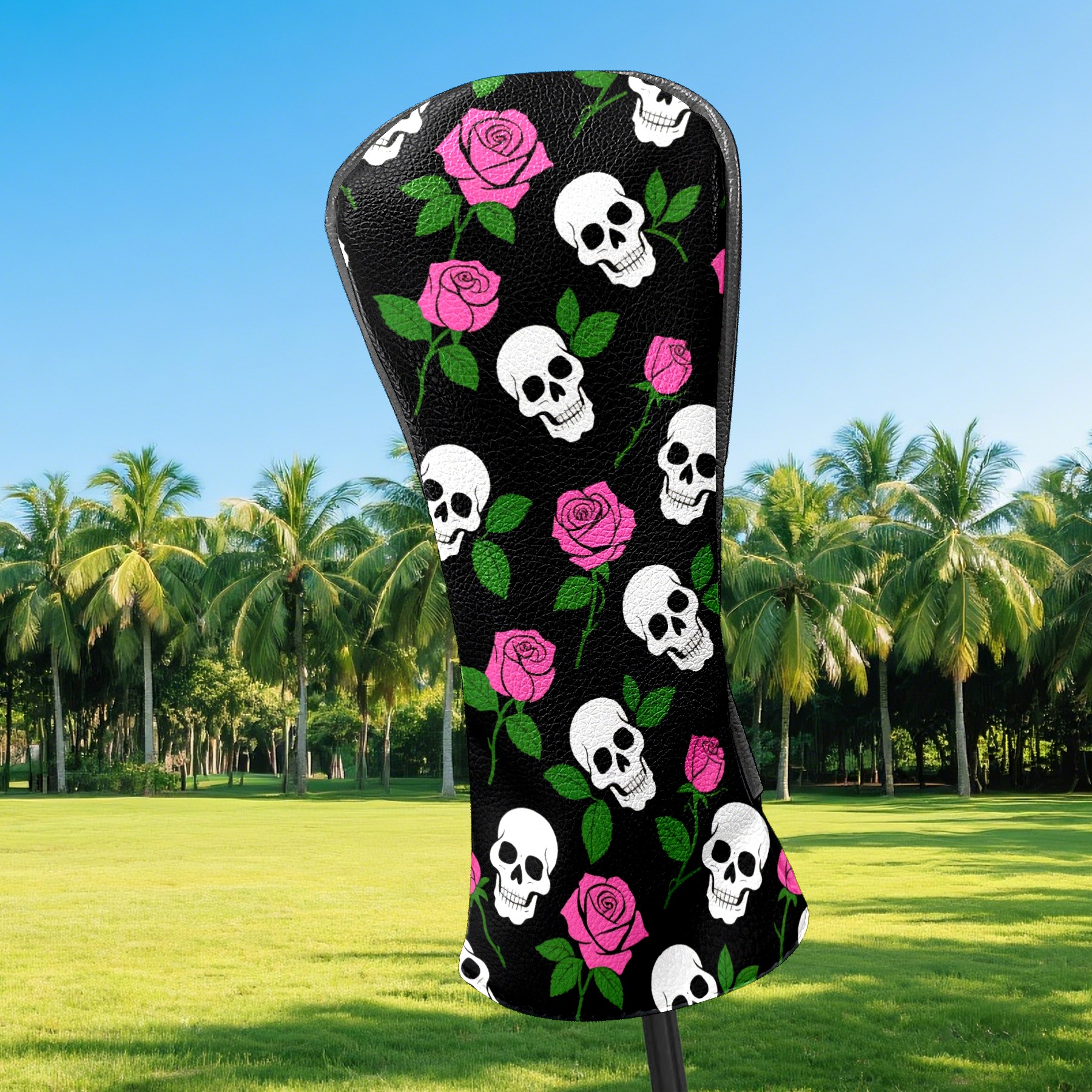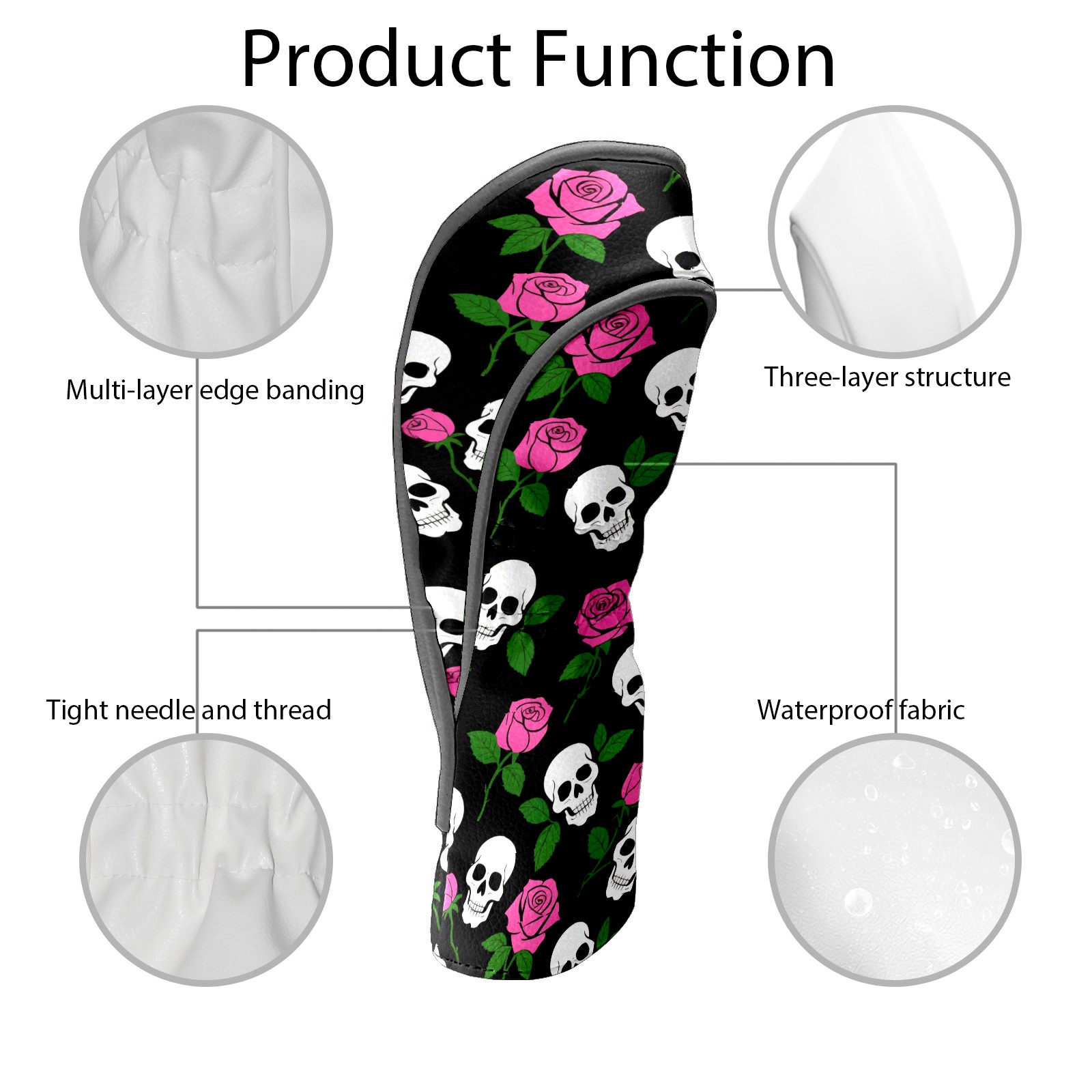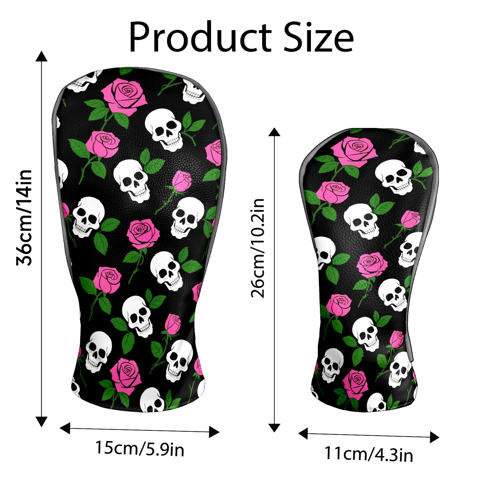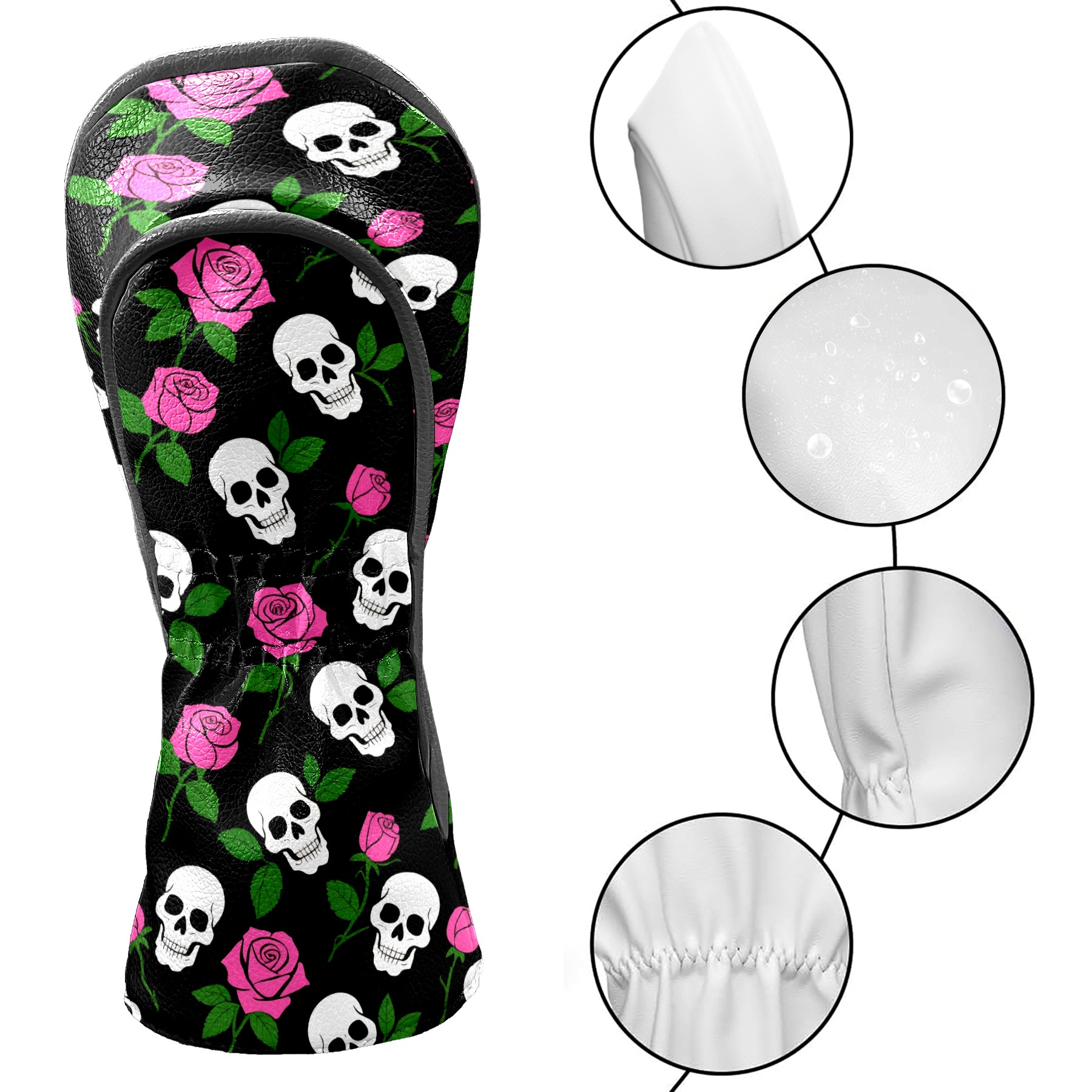 Golf Head Covers Driver Club Head Cover for Drivers Fairway Woods and Hybrid Clubs, PU Leather Golf Club Head Covers for Men and Women Skull