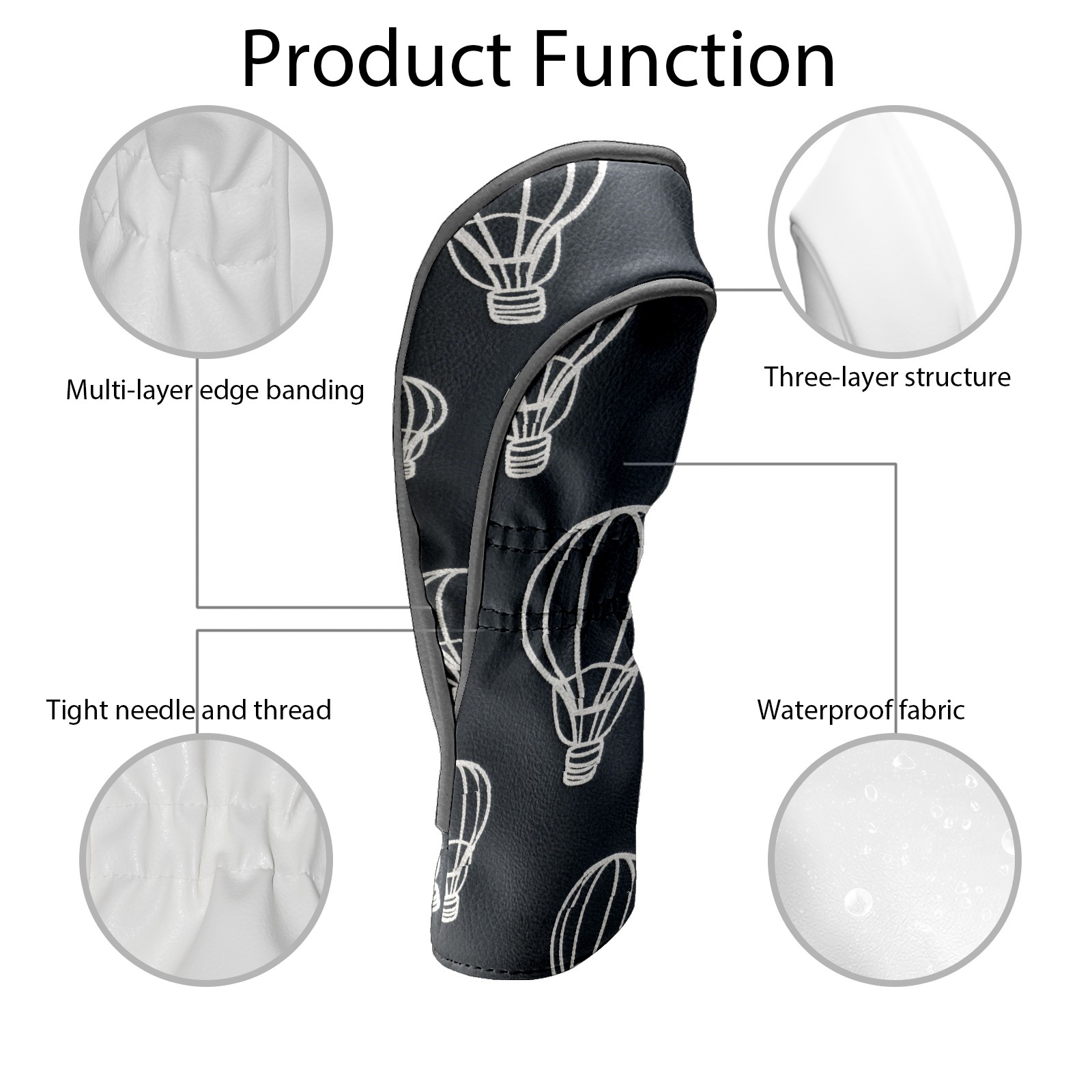 Golf Head Covers Driver Club Head Cover for Drivers Fairway Woods and Hybrid Clubs, PU Leather Golf Club Head Covers for Men and Women Light Bulb