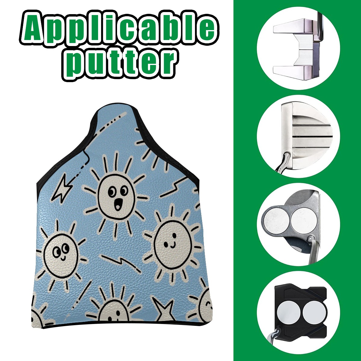 Small Mallet Putter Cover, PU Leather and Waterproof Mallet Putter Cover, Golf Club Protective Case Fits for All Brand Putter Golf Clubs for Men Women Blue Sun