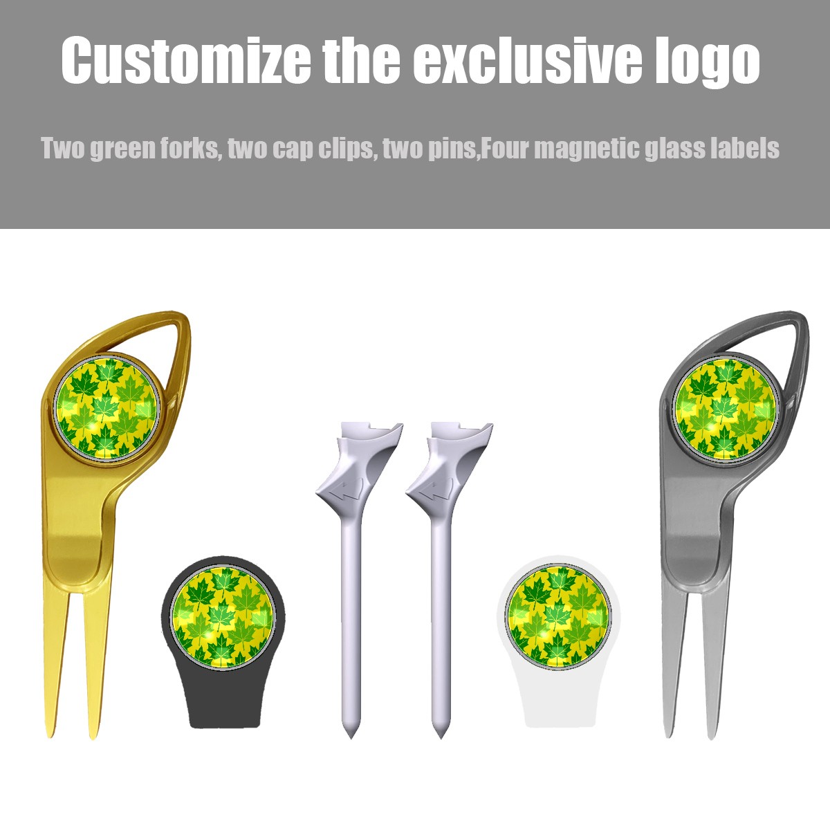 <p>Golf Men's Gift Set of 6, specially designed for golf enthusiasts. Contains 2 green forks, 2 cap clips, 2 ball studs, and 4 magnetic glass markers to meet practical needs on the field; Glass label supports personalized customization<br></p>