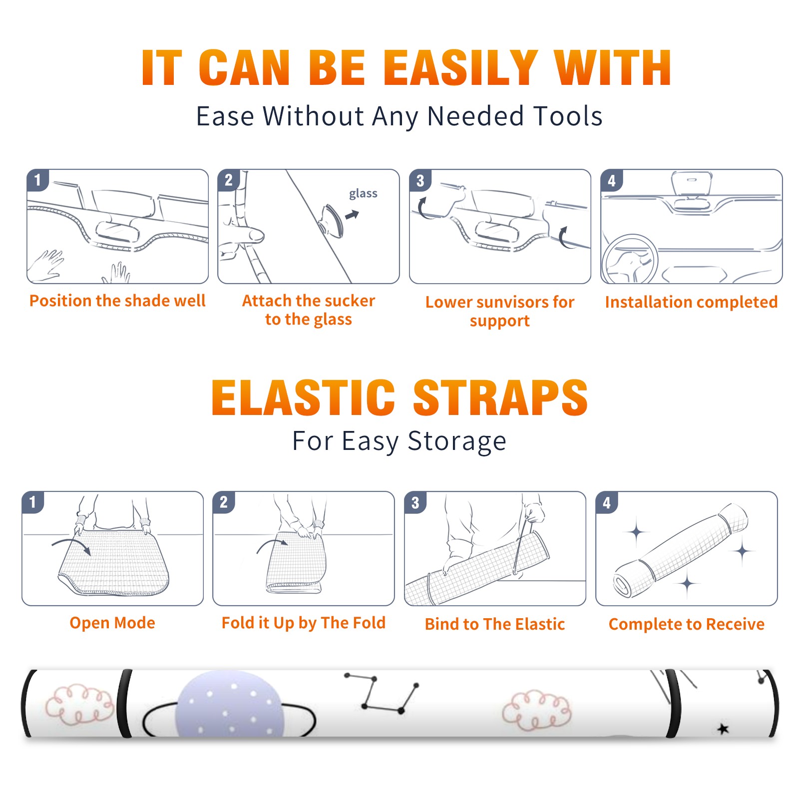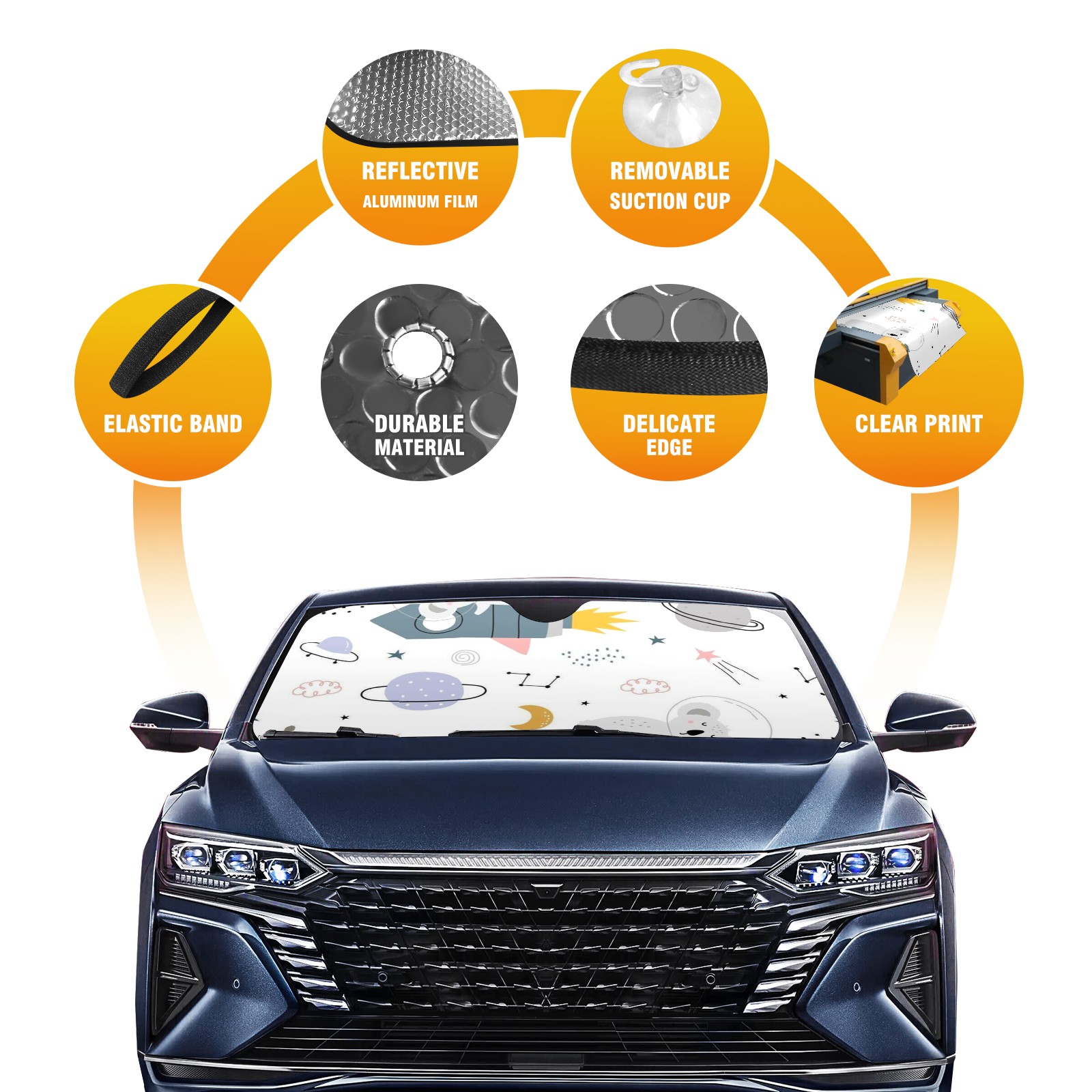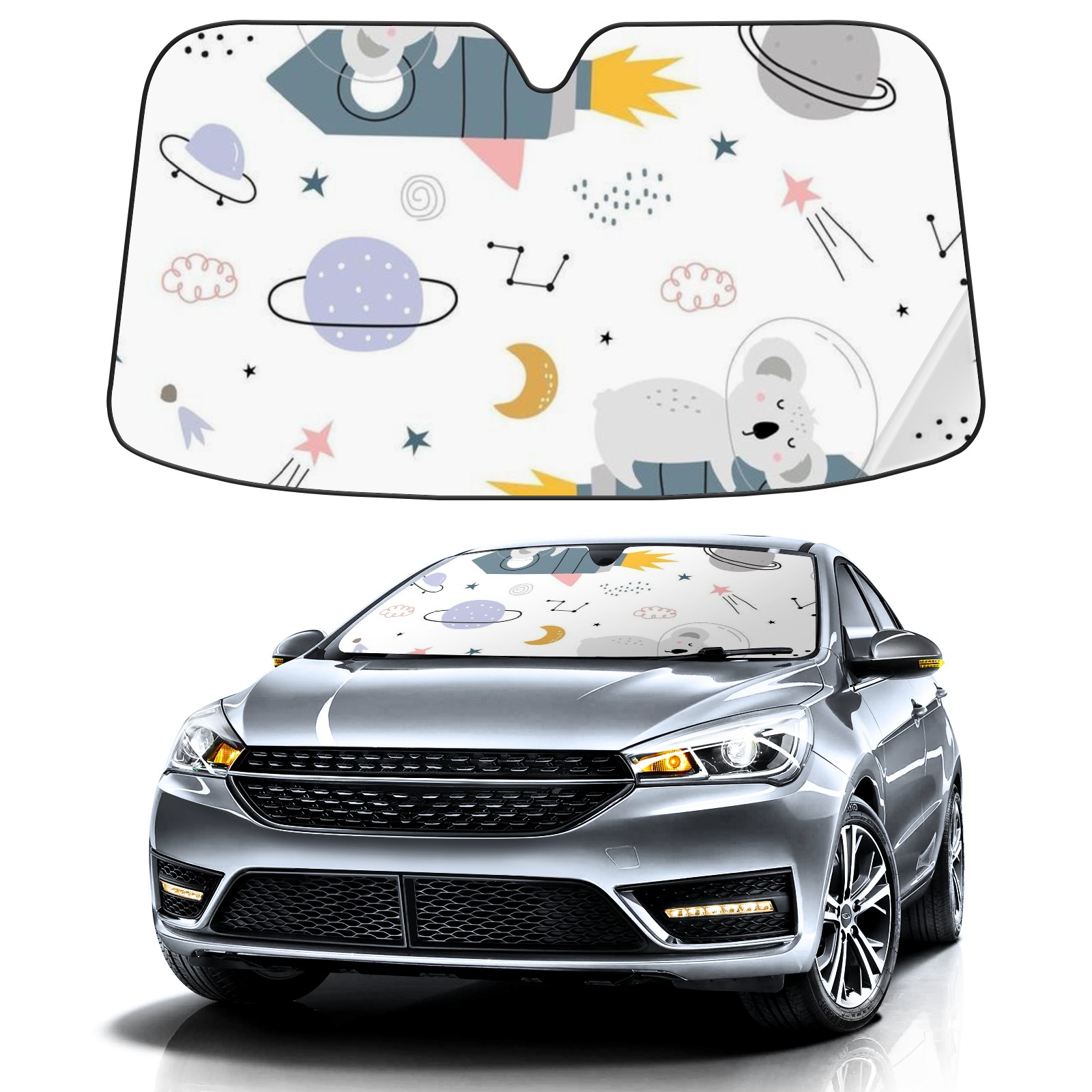 Car Windshield Sun Shade Polyester Car Sunshade Pad, Heat Insulation And Sun Protection Cute