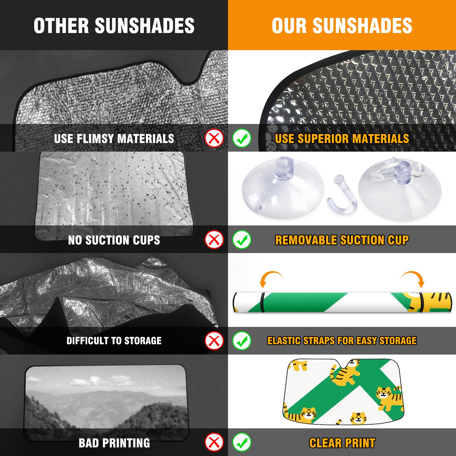 • <p>This car sunshade pad is made of a high-quality combination of aluminum foil and polyester, reinforced with transparent adhesive. It measures 140x76cm (55inx30in) and is a practical choice for protecting your car. Its powerful UV protection function can effectively block harmful light, prevent the car interior from aging due to exposure to sunlight, and maintain the dashboard, steering wheel, and seats in a brand new state.<br></p>