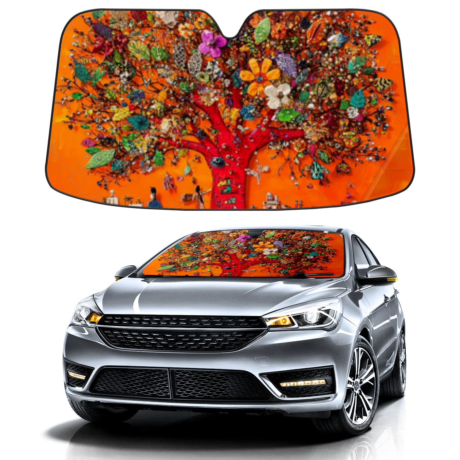 Car Windshield Sun Shade Polyester Car Sunshade Pad, Heat Insulation And Sun Protection Tree_of_life