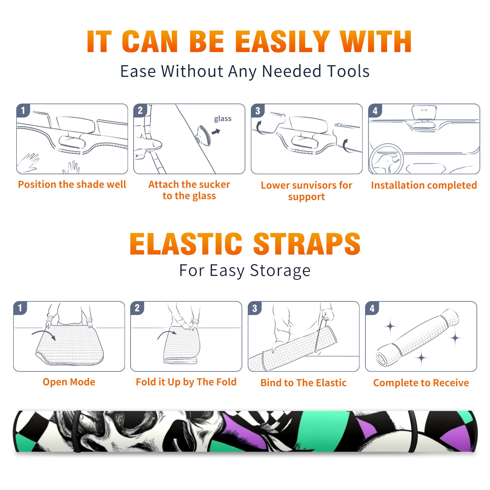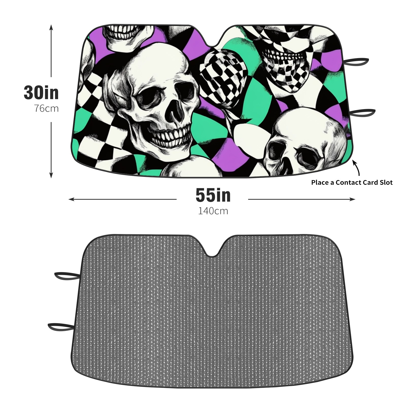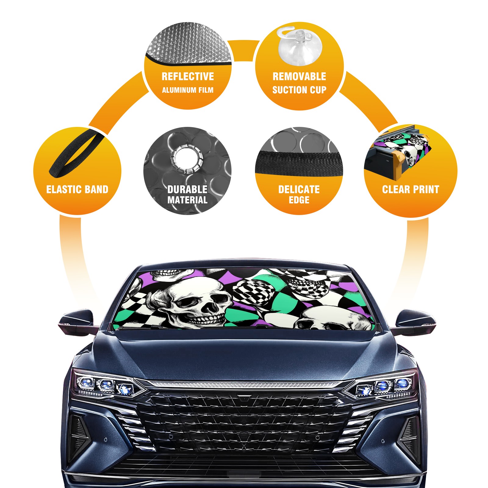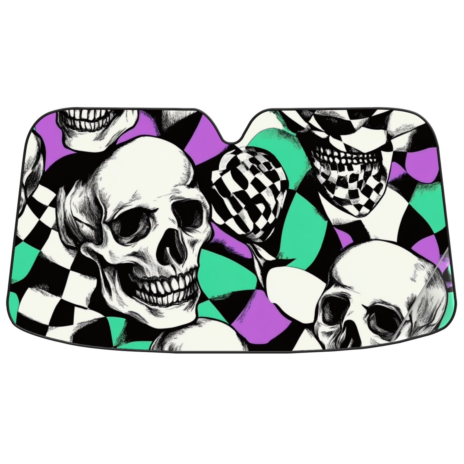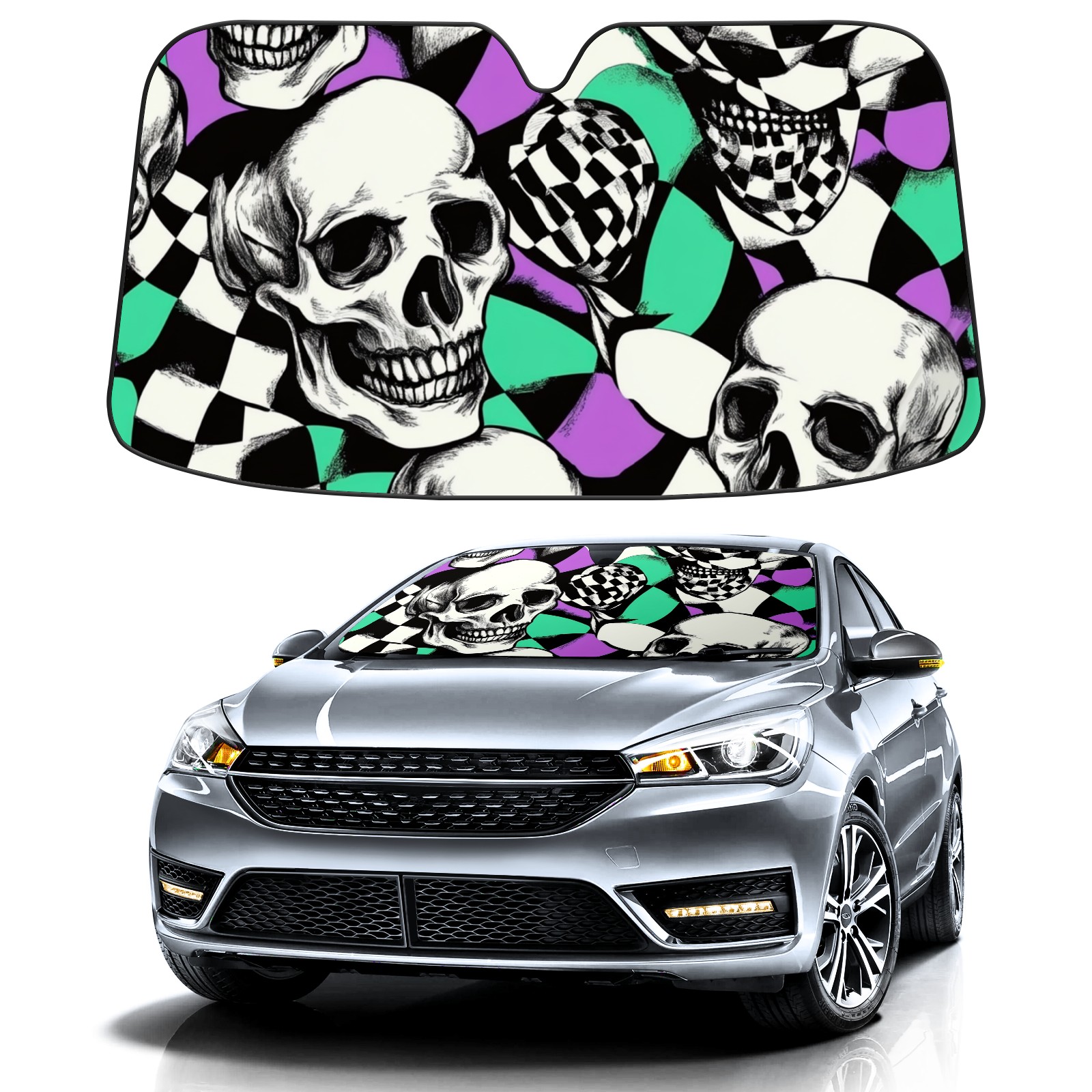Car Windshield Sun Shade Polyester Car Sunshade Pad, Heat Insulation And Sun Protection Skulls And Checkered Flag