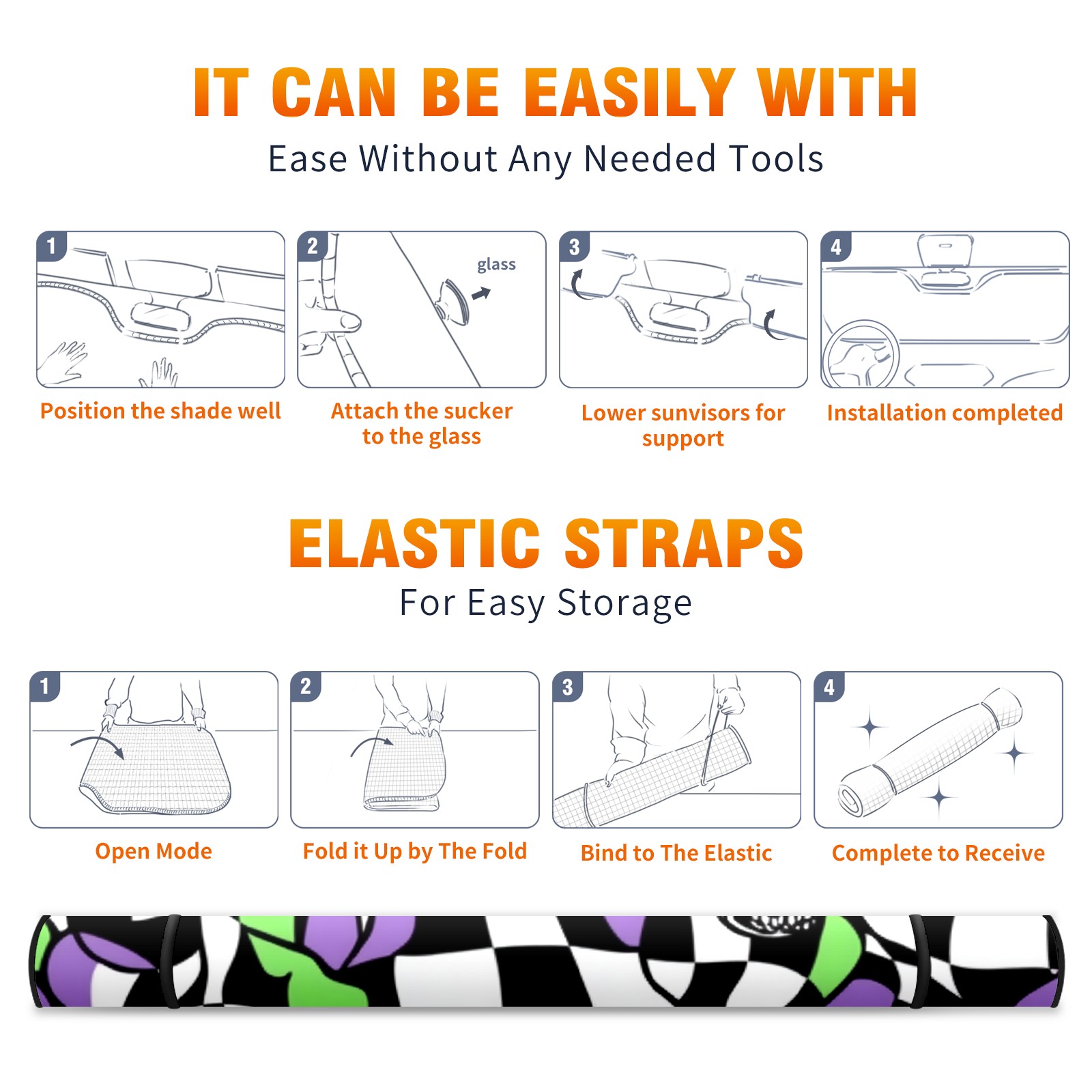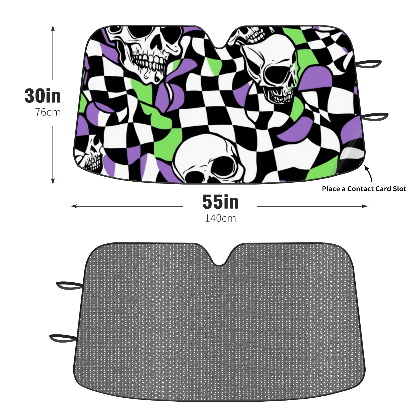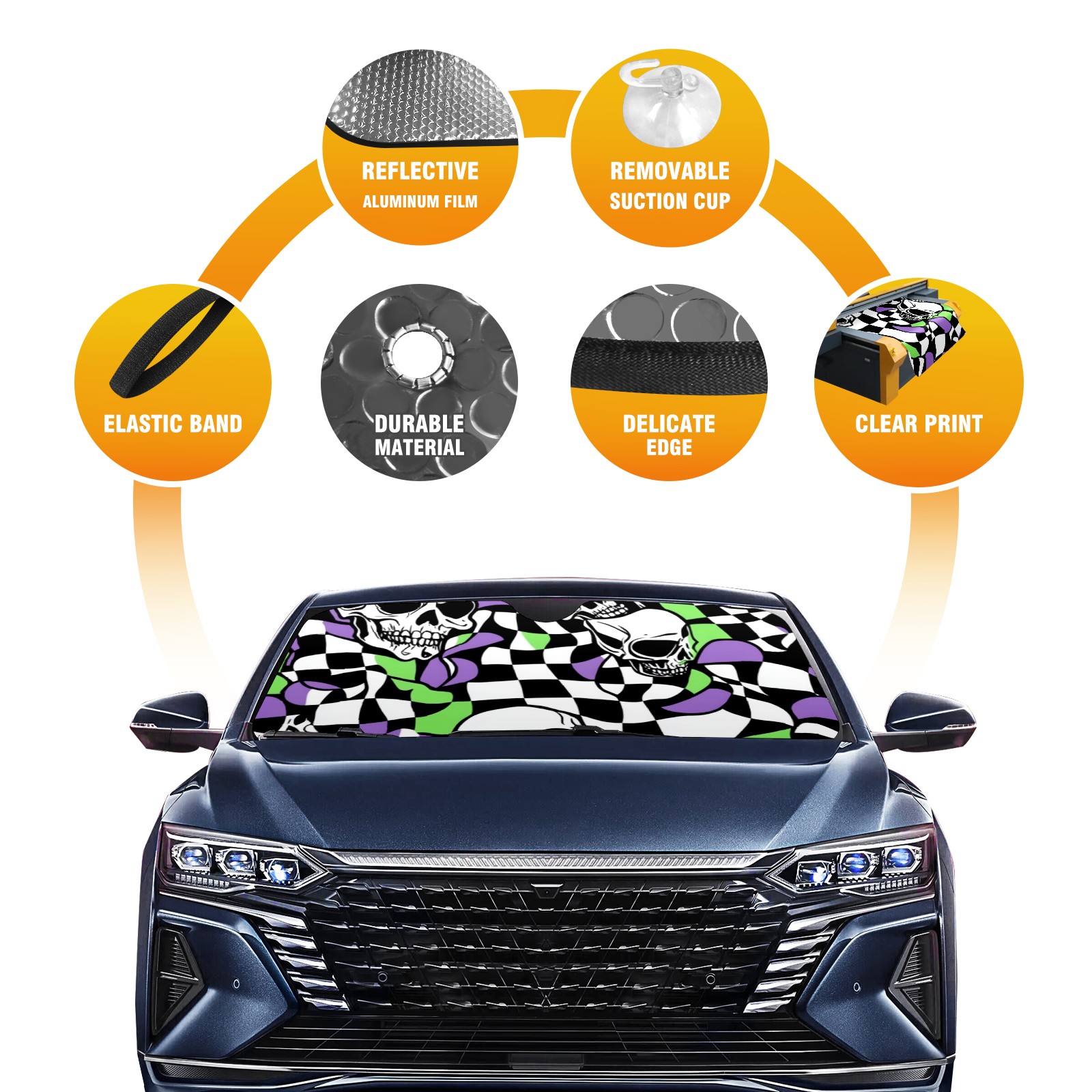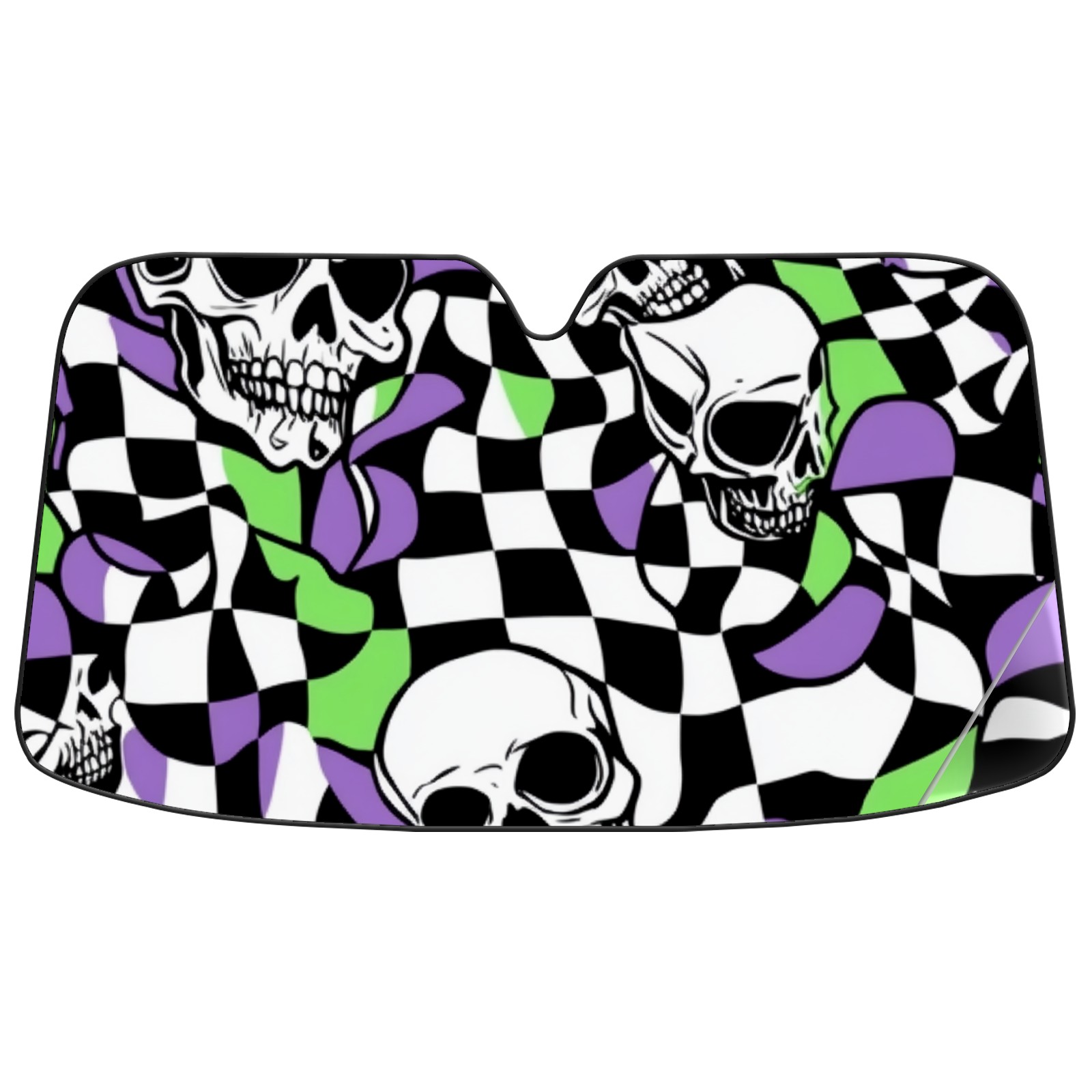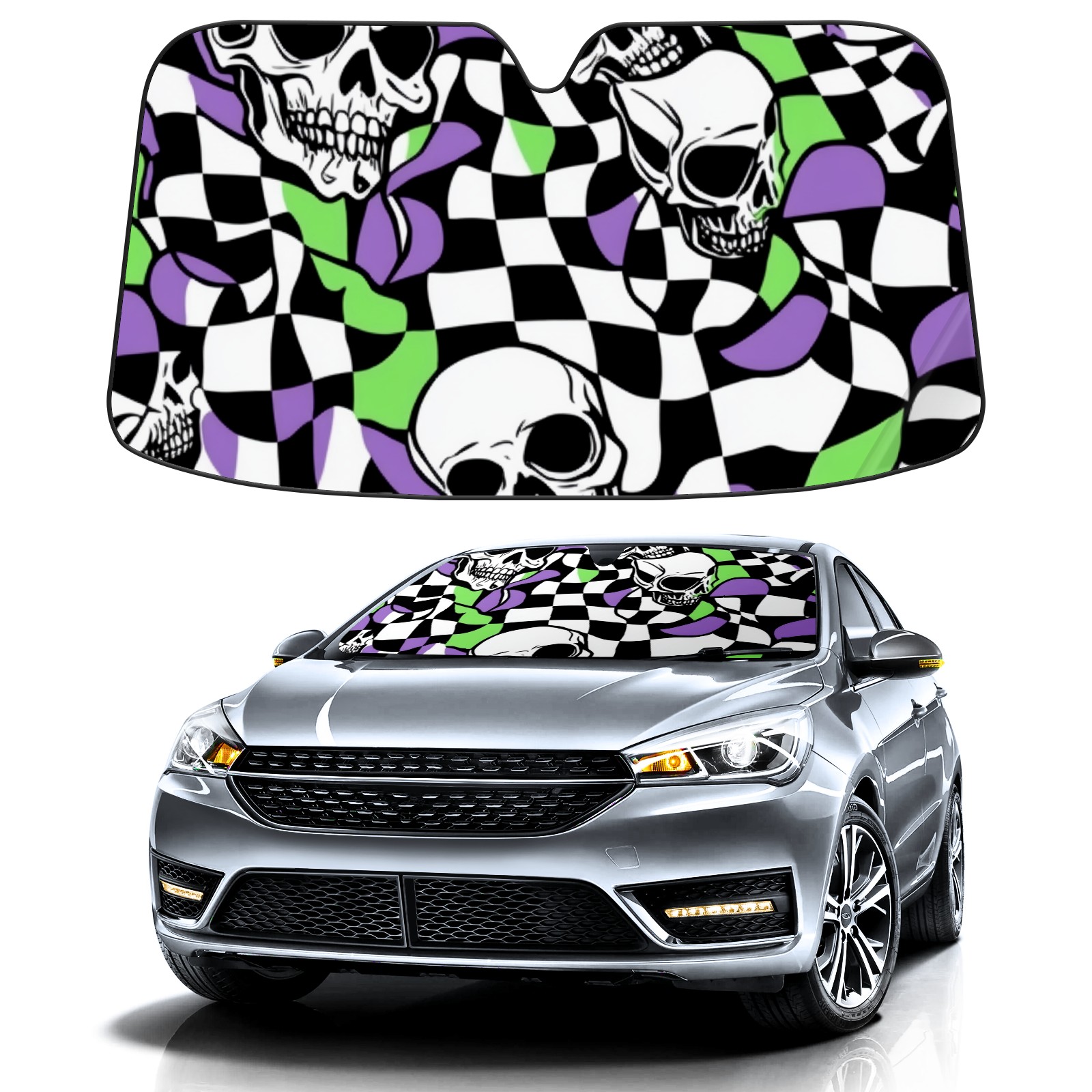 Car Windshield Sun Shade Polyester Car Sunshade Pad, Heat Insulation And Sun Protection Skulls And Checkered Flags