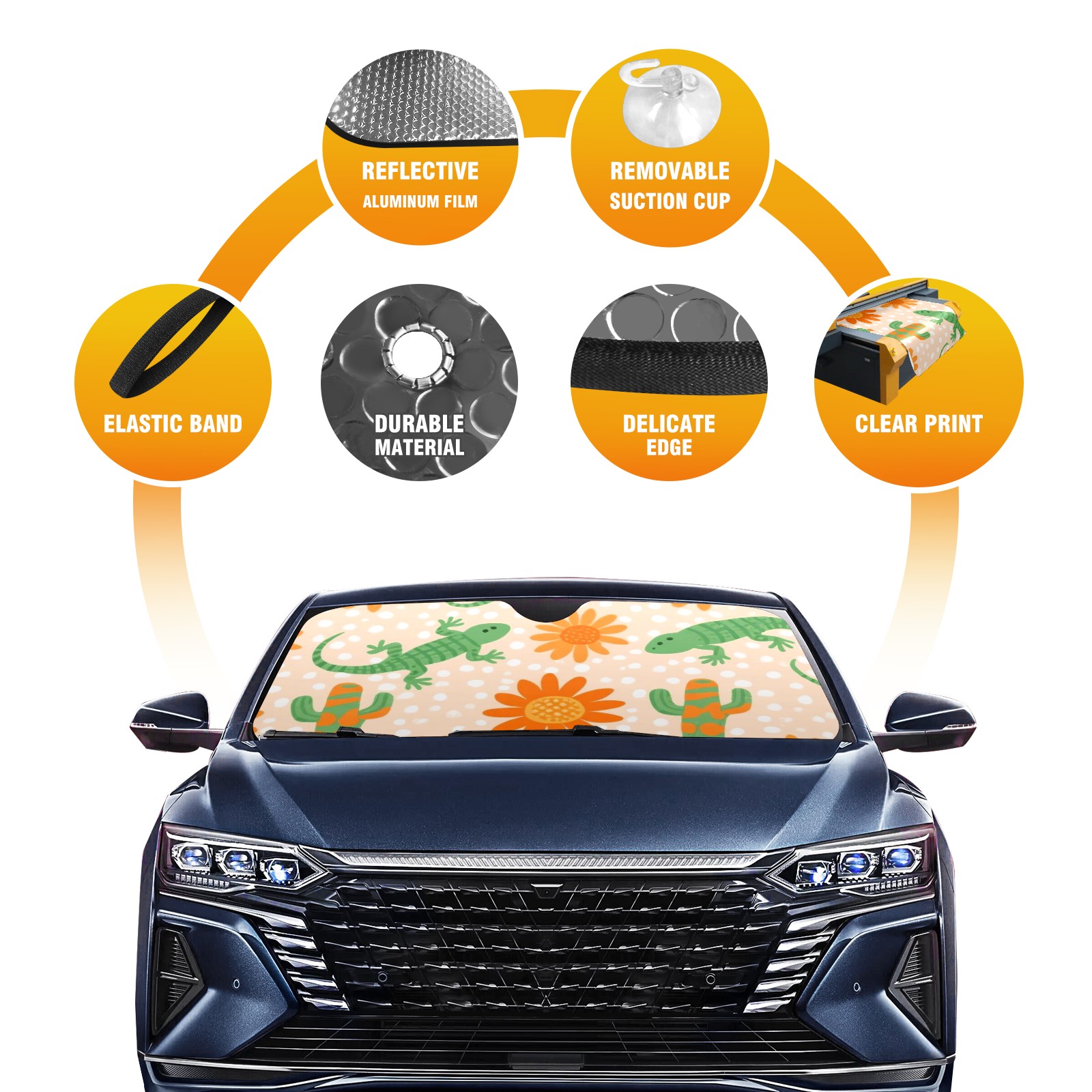 <p>This car sunshade pad is made of a high-quality combination of aluminum foil and polyester, reinforced with transparent adhesive. It measures 140x76cm (55inx30in) and is a practical choice for protecting your car. Its powerful UV protection function can effectively block harmful light, prevent the car interior from aging due to exposure to sunlight, and maintain the dashboard, steering wheel, and seats in a brand new state.<br></p>