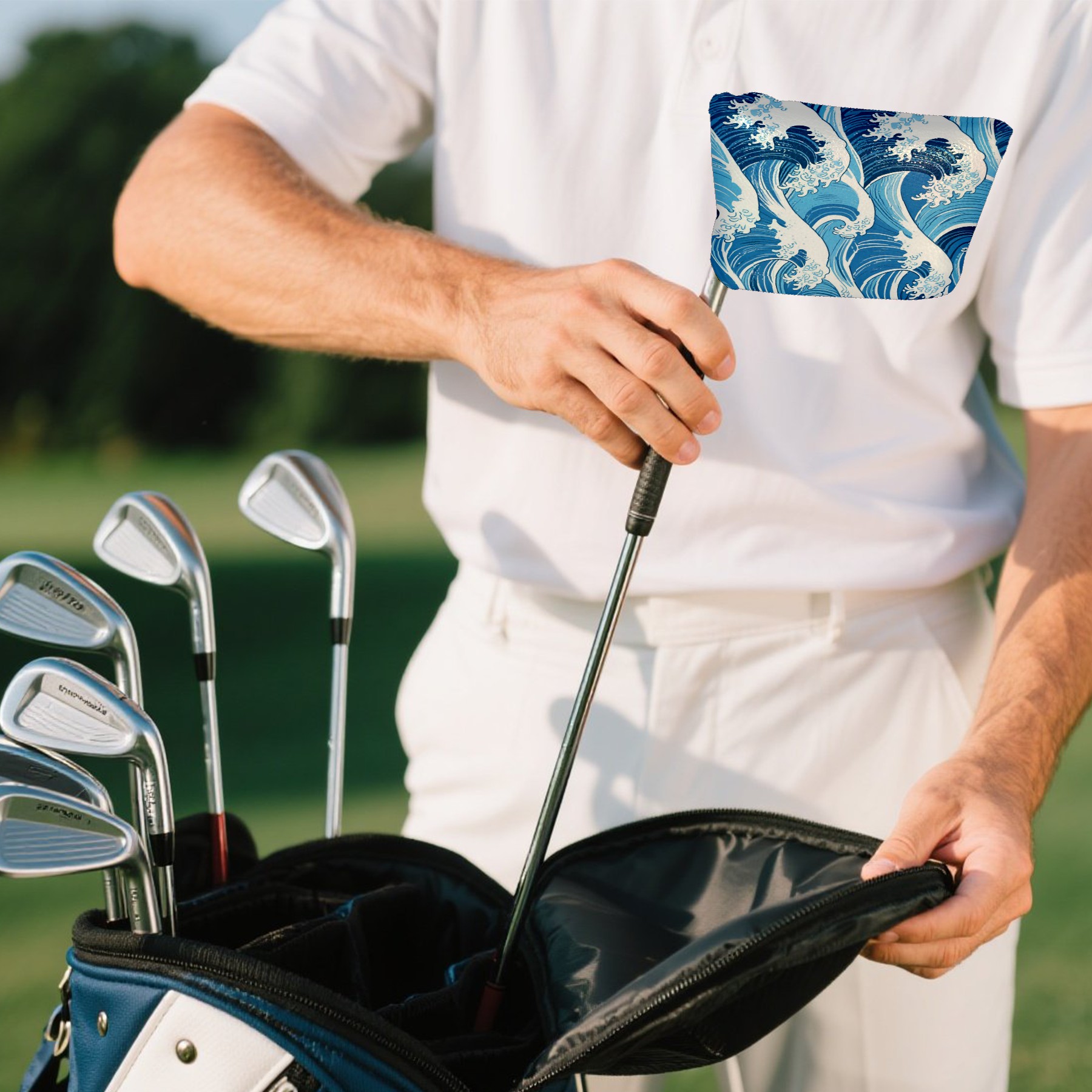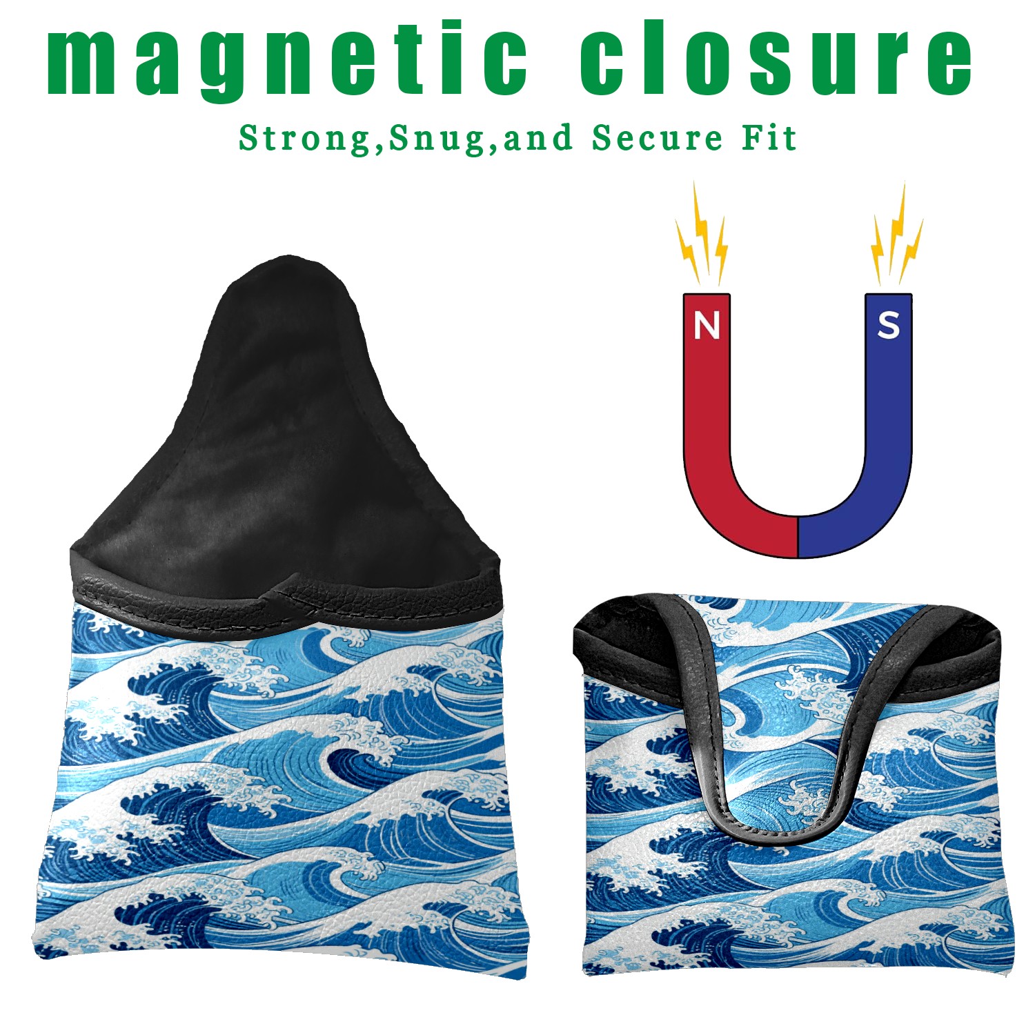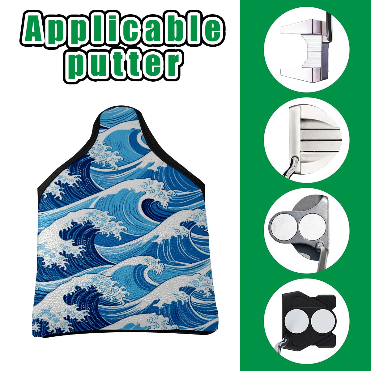 Small Mallet Putter Cover, PU Leather and Waterproof Mallet Putter Cover, Golf Club Protective Case Fits for All Brand Putter Golf Clubs for Men Women Blue Wave